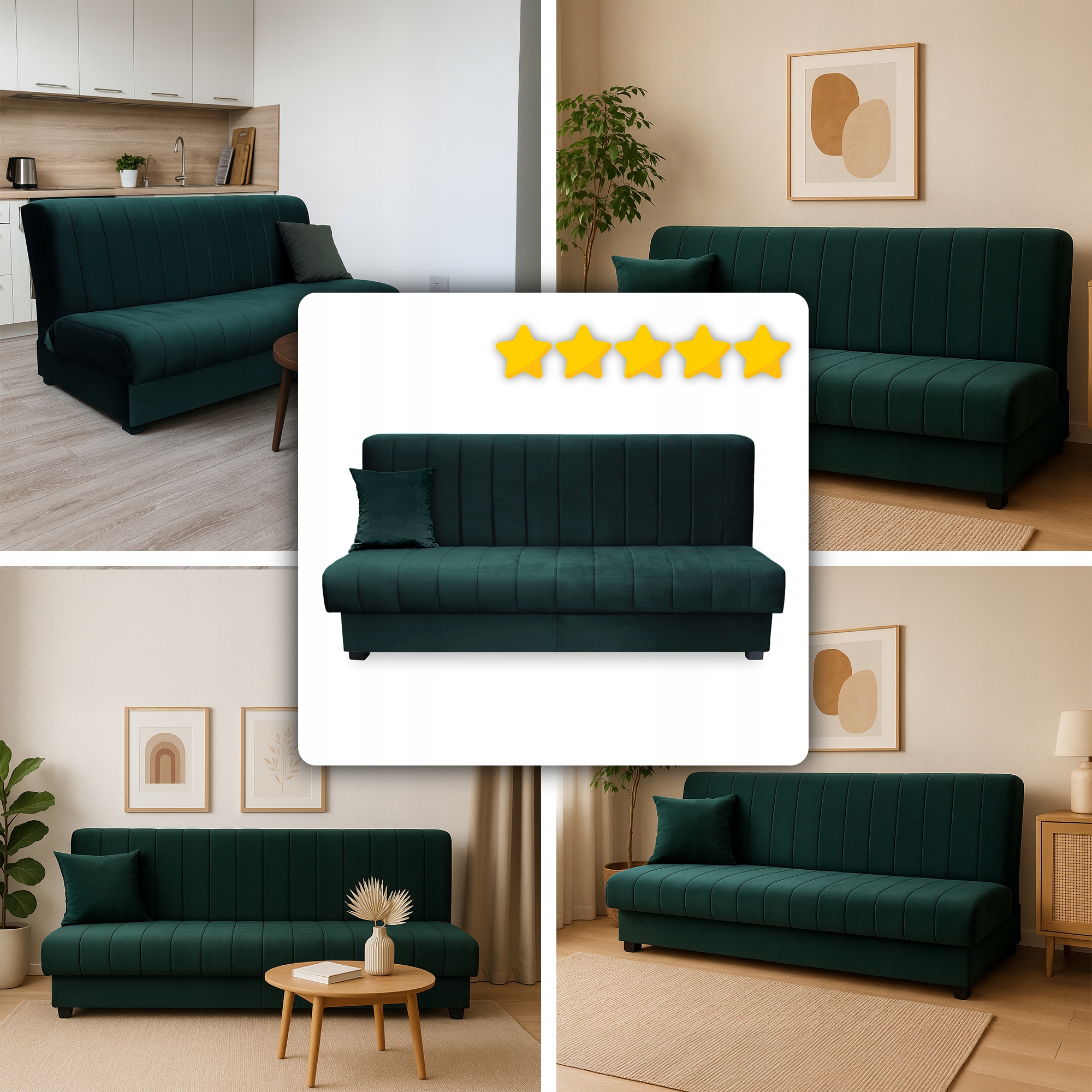 Wersalka Rozkładana Do Spania Kanapa Sofa Dwuosobowa Zielona SIGMA ⭐⭐⭐⭐⭐