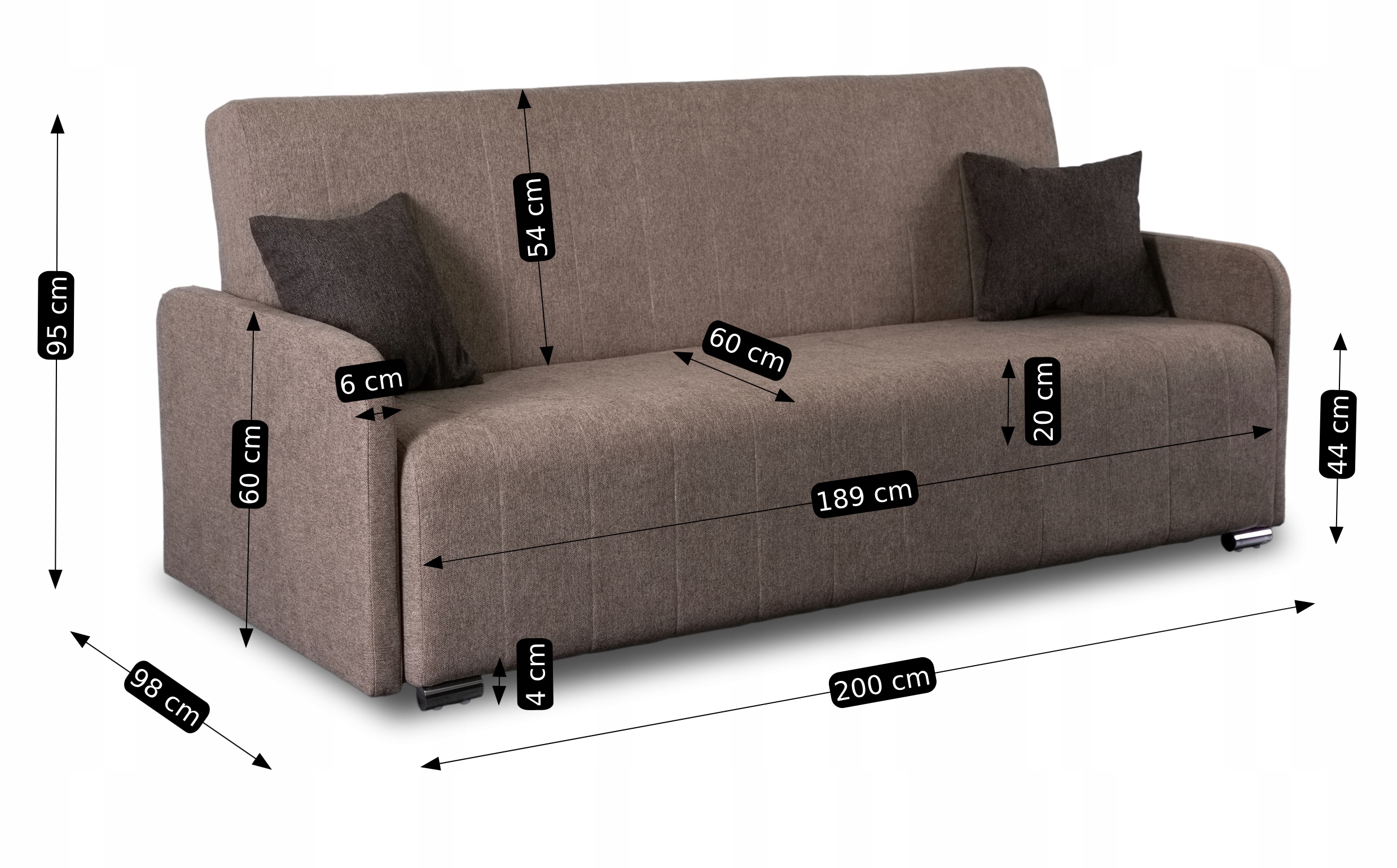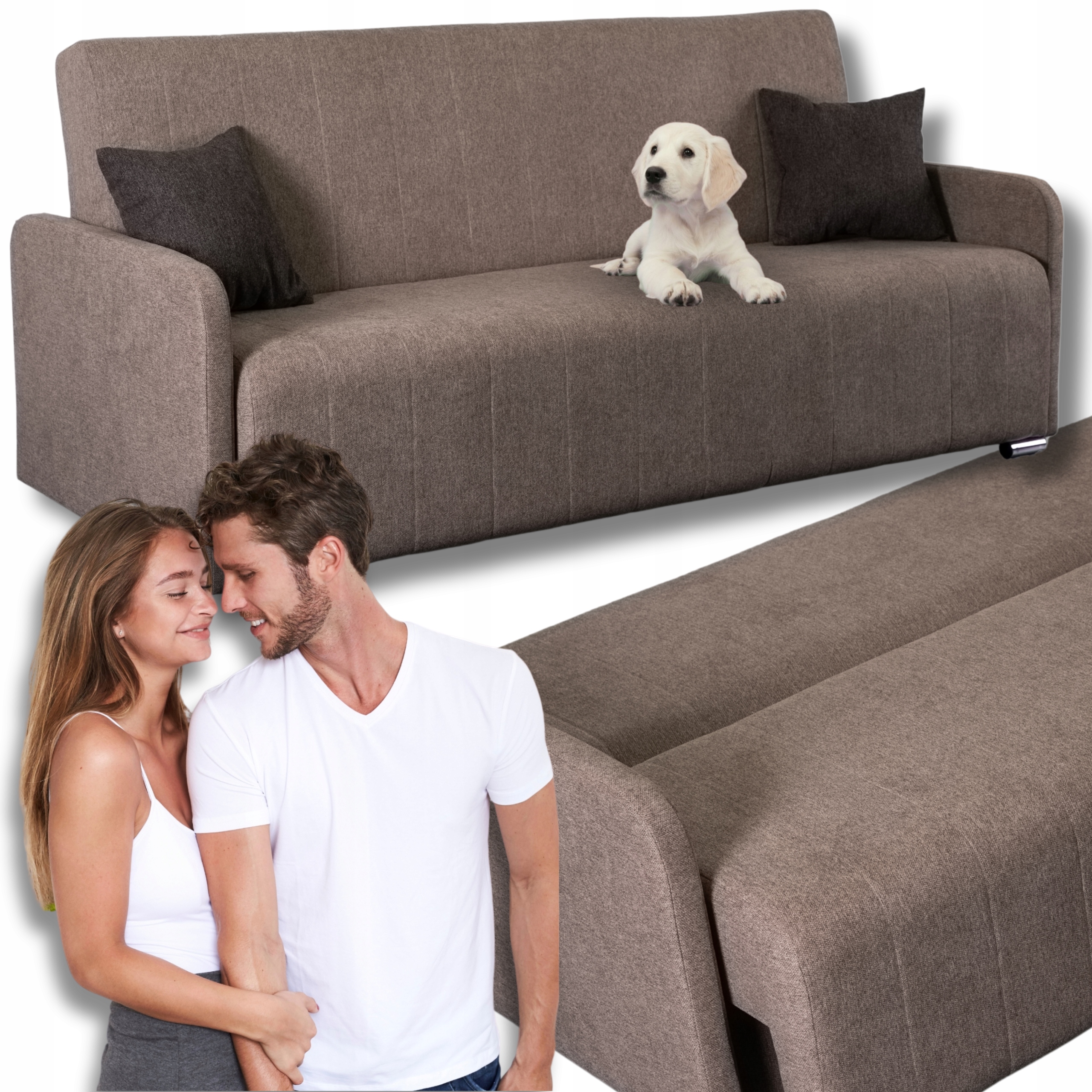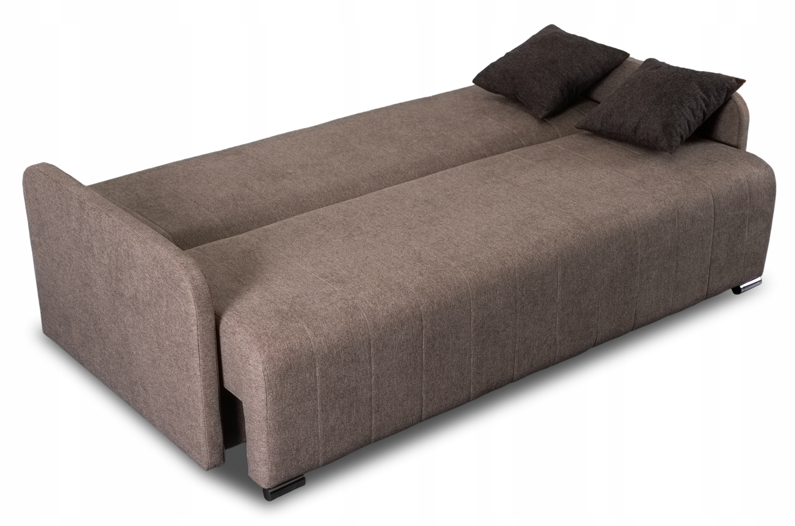 Jedną z głównych zalet kanapy jest funkcja spania, która pozwala na szybkie przekształcenie jej w przestronne łóżko o wymiarach 189x126 cm.
