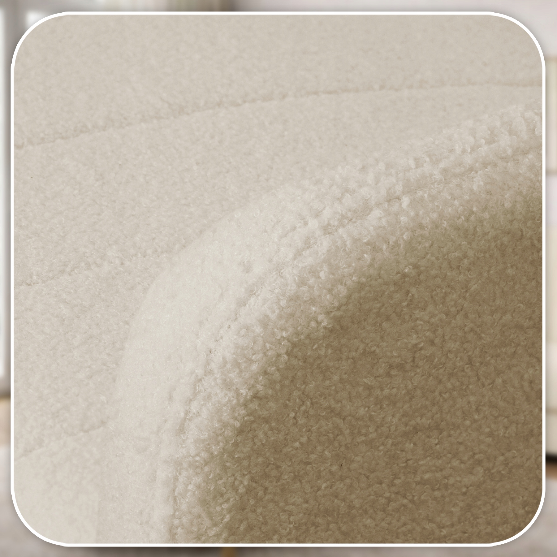 - Miękka tkanina boucle – przyjemna w dotyku, pętelkowa struktura dodaje elegancji i komfortu.