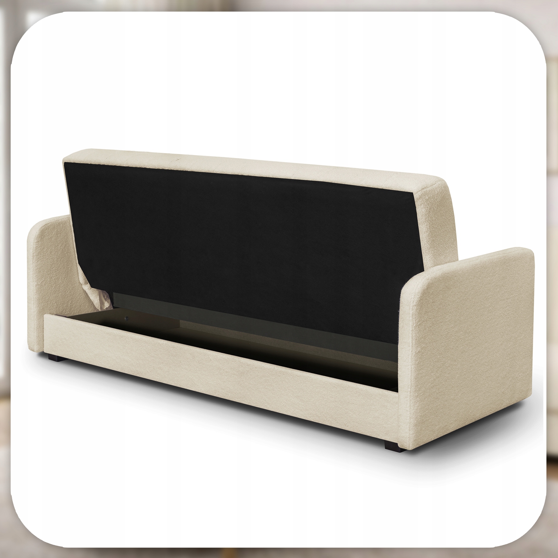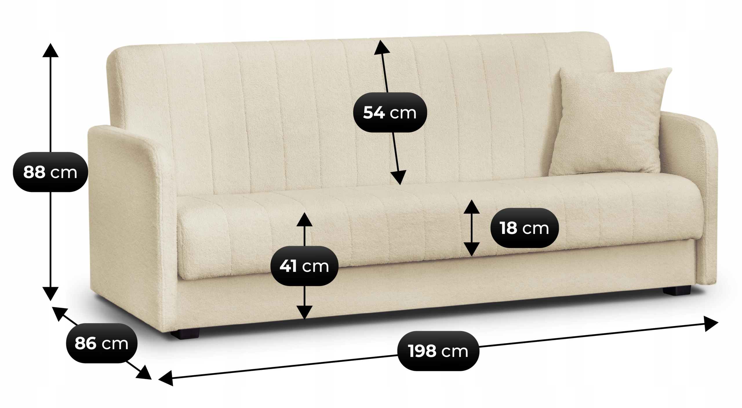 Model wyposażony jest w funkcję spania – po rozłożeniu oferuje wygodną powierzchnię 114 x 186 cm, idealną dla jednej lub dwóch osób. Dodatkowo posiada praktyczny pojemnik na pościel, dzięki czemu zyskujesz więcej miejsca do przechowywania.