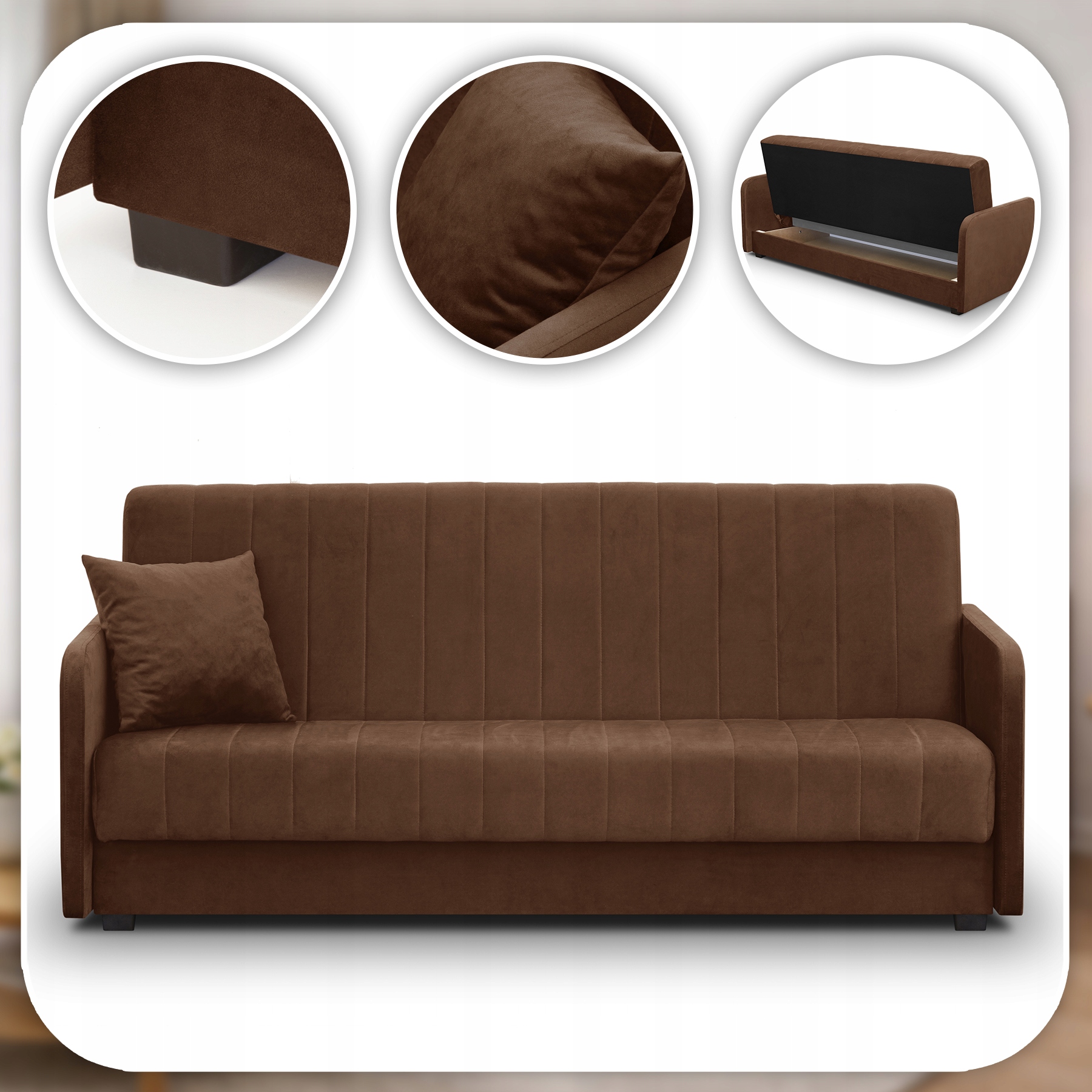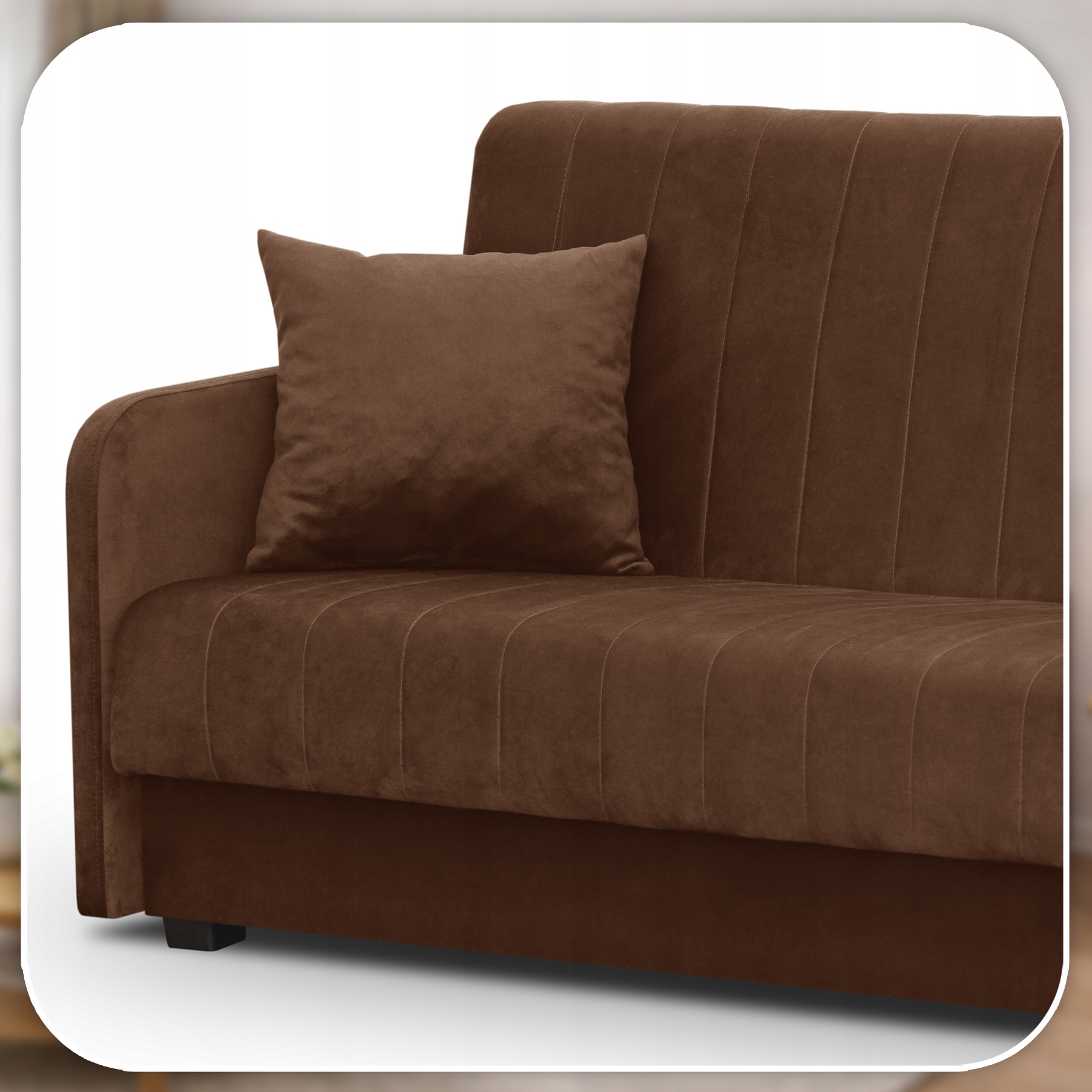 W komplecie z wersalką PORTO otrzymujesz dodatkową poduszkę w kolorze brązowym, idealnie dopasowaną do tapicerki.