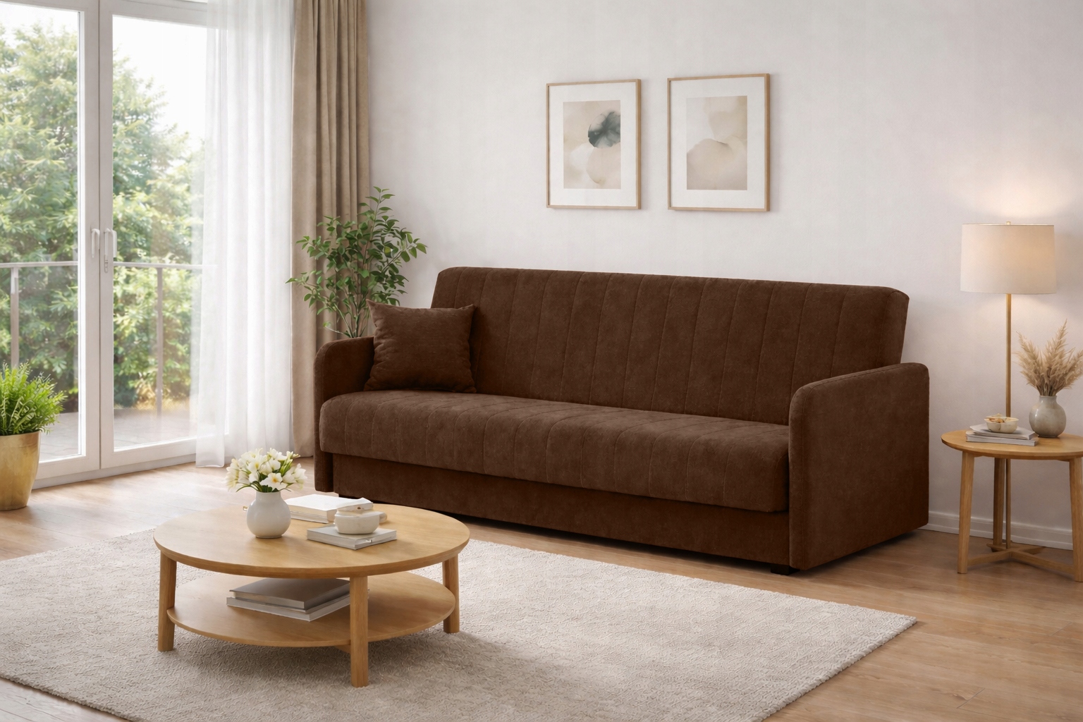 Wersalka Rozkładana Sofa Kanapa z Funkcją Spania Dwuosobowa Brązowa PORTO