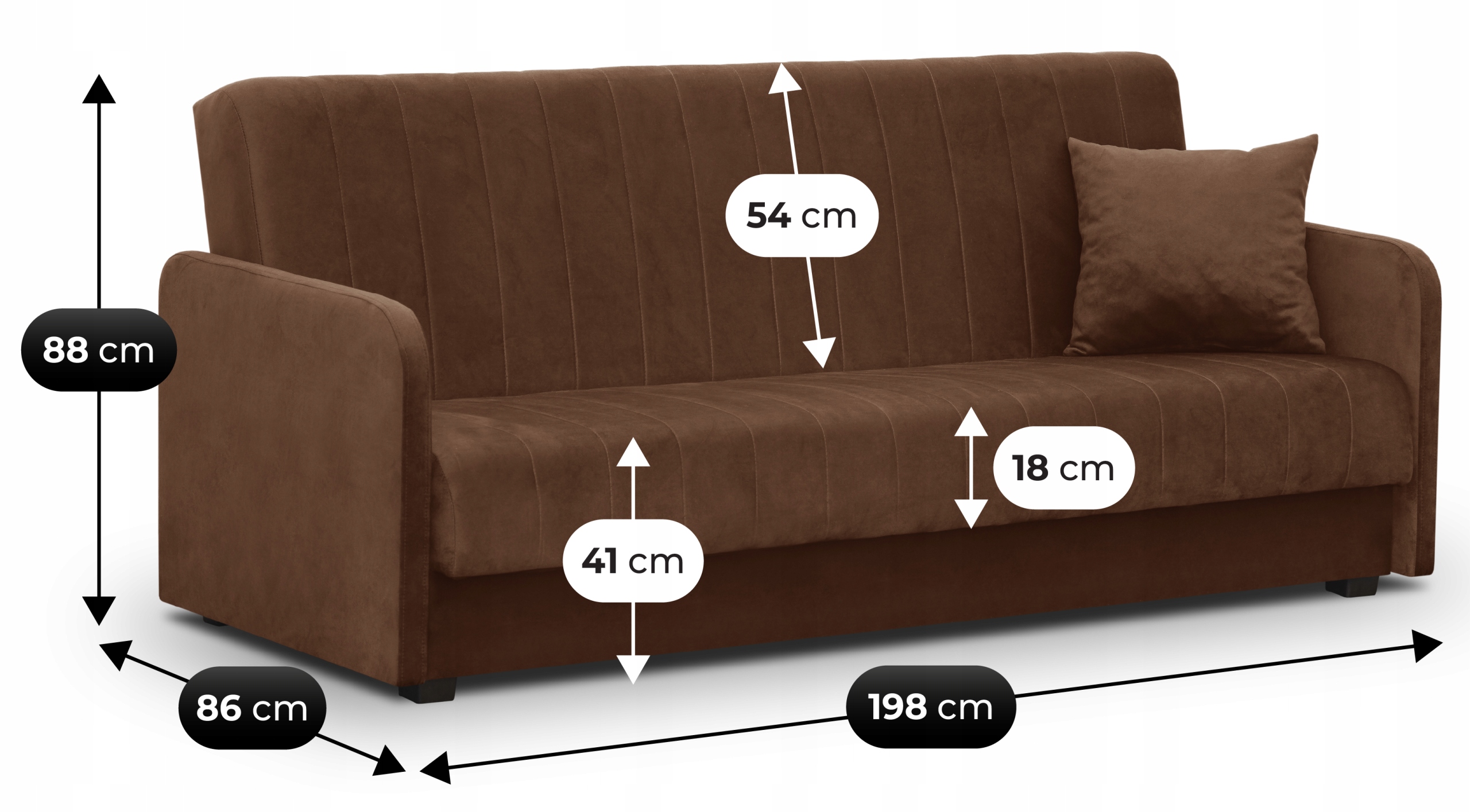 Model wyposażony jest w funkcję spania – po rozłożeniu oferuje wygodną powierzchnię 114 x 186 cm, idealną dla jednej lub dwóch osób. Dodatkowo posiada praktyczny pojemnik na pościel, dzięki czemu zyskujesz więcej miejsca do przechowywania.