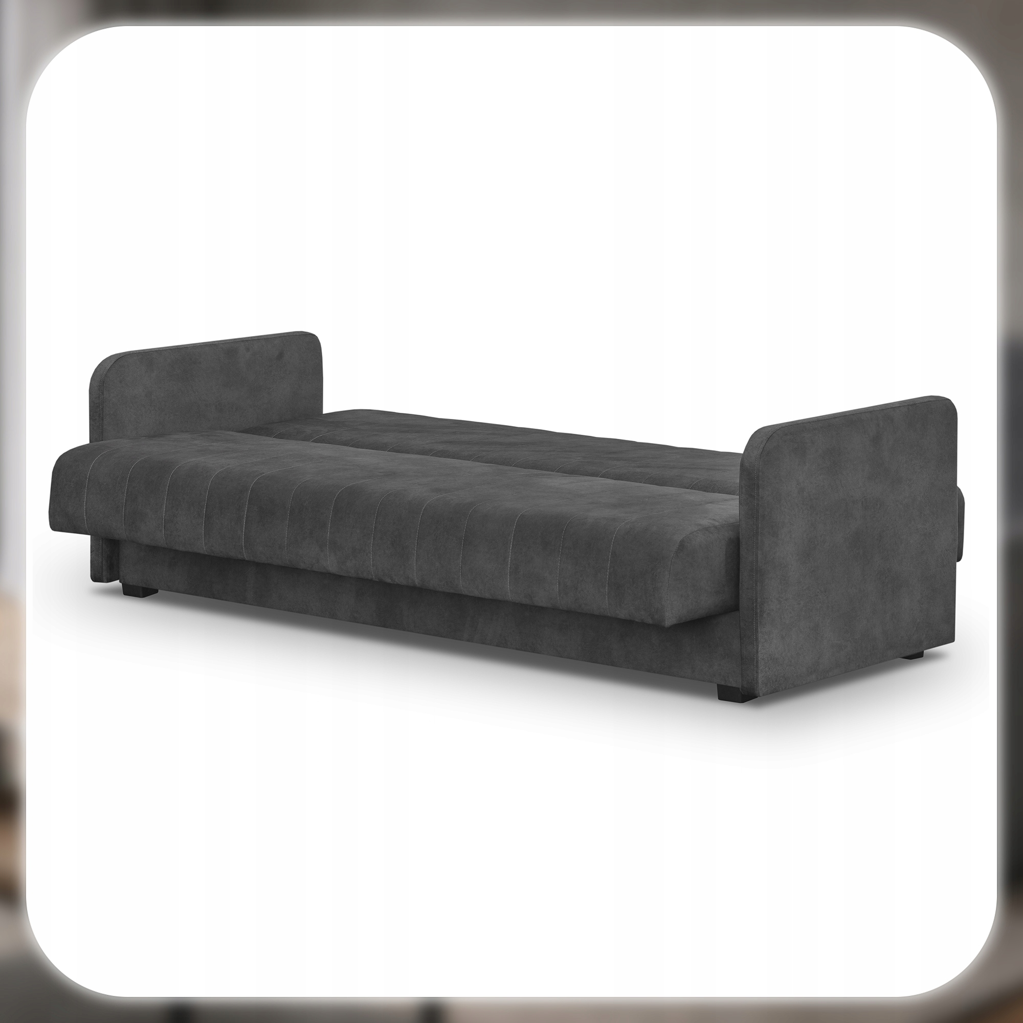Model wyposażony jest w funkcję spania – po rozłożeniu oferuje wygodną powierzchnię 114 x 186 cm, idealną dla jednej lub dwóch osób. Dodatkowo posiada praktyczny pojemnik na pościel, dzięki czemu zyskujesz więcej miejsca do przechowywania.