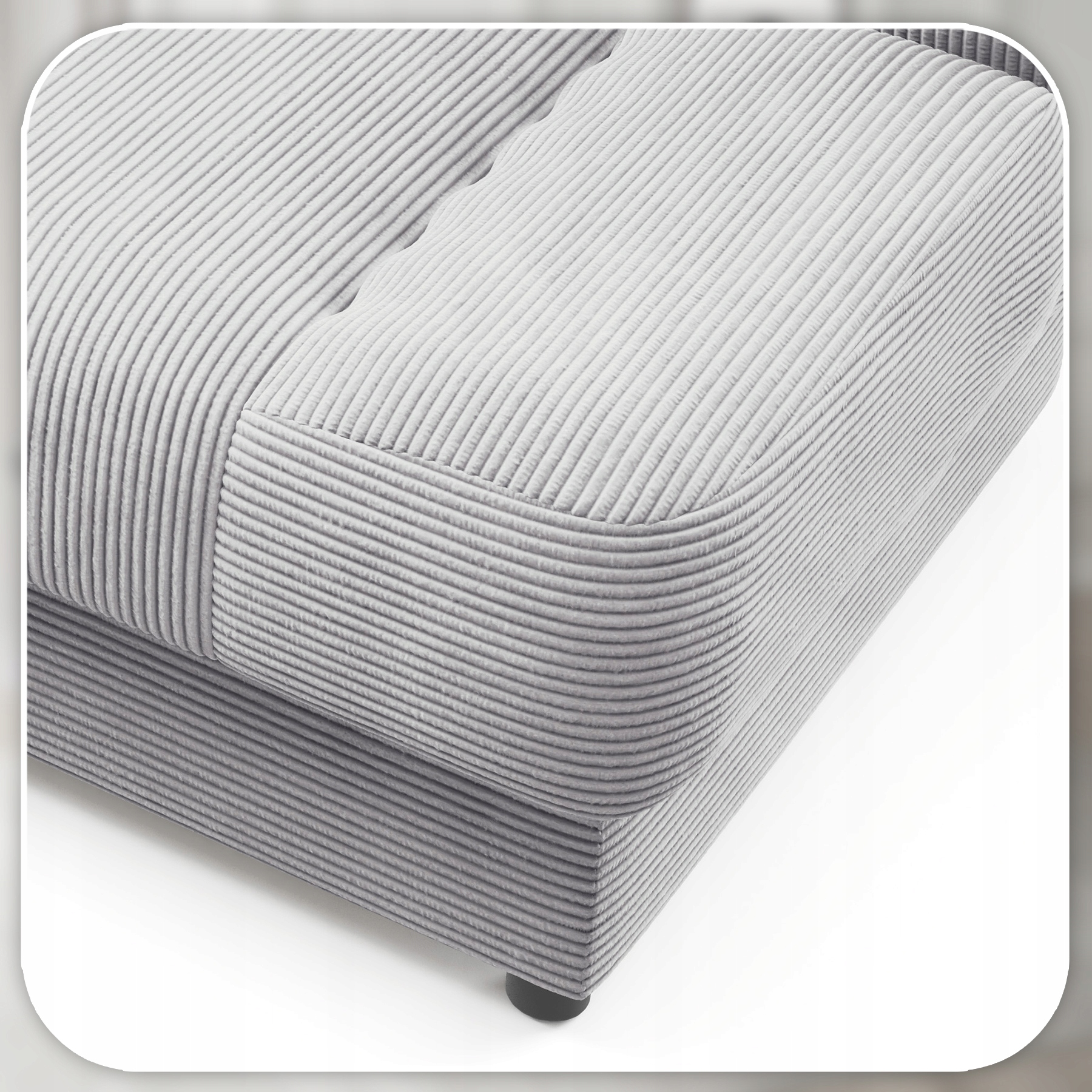 Obicie wykonano z wysokiej jakości tkaniny sztruksowej, która łączy niezwykłą miękkość z modnym, wyrazistym wyglądem. Charakterystyczny prążkowany wzór nadaje meblowi stylowy i przytulny charakter, a jednocześnie zwiększa jego trwałość.