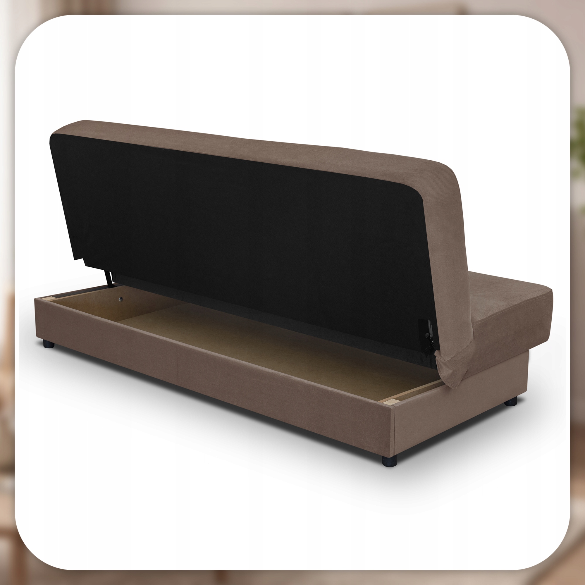 Dodatkowym atutem jest pojemny schowek na pościel, do którego masz łatwy dostęp po podniesieniu siedziska. Bez problemu przechowasz w nim kołdrę, poduszki, koc czy inne tekstylia, zyskując więcej miejsca i porządek w pomieszczeniu.