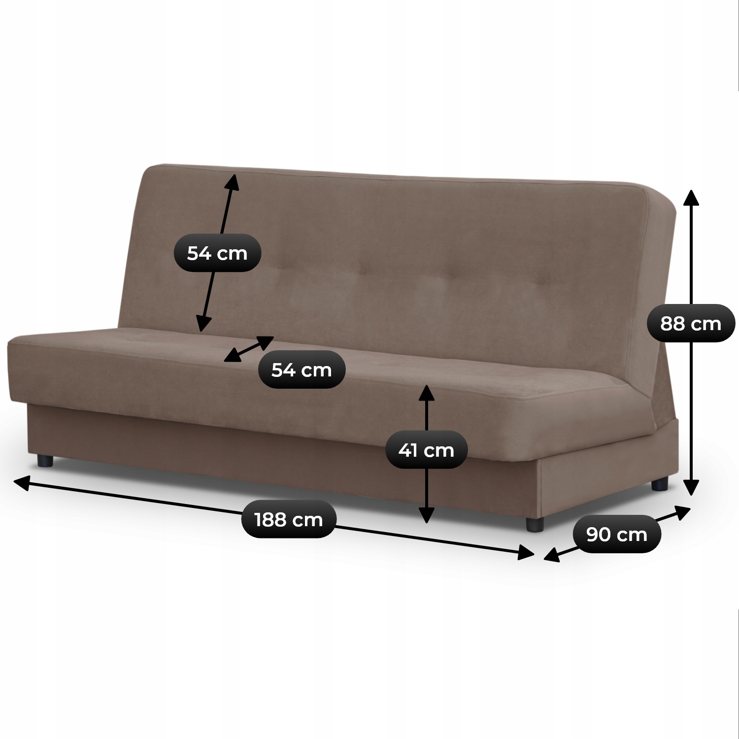 - Funkcja spania – po rozłożeniu zapewnia wygodną powierzchnię 118 x 188 cm.