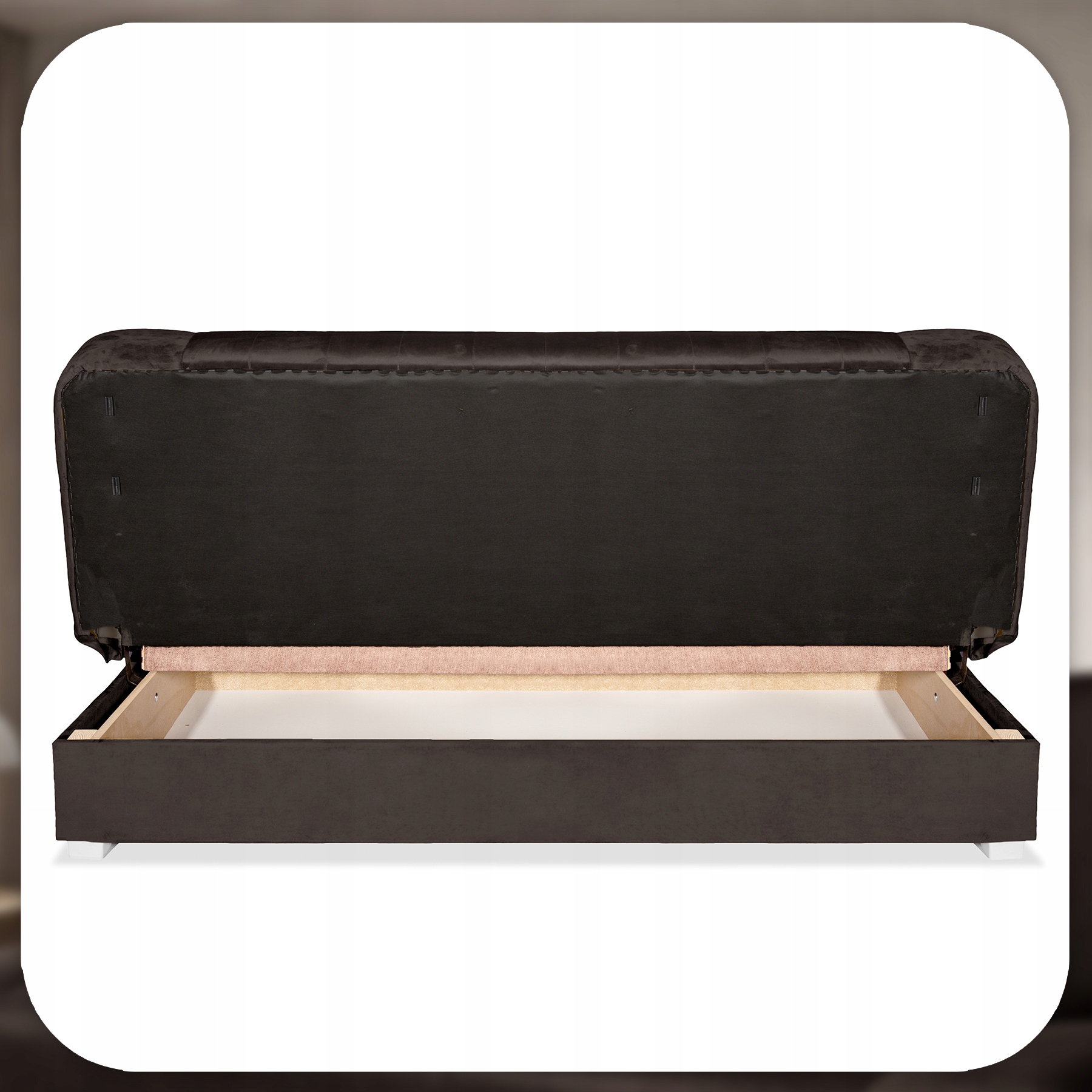- Pojemnik na pościel – schowany pod siedziskiem, idealny na kołdry, poduszki lub koce.