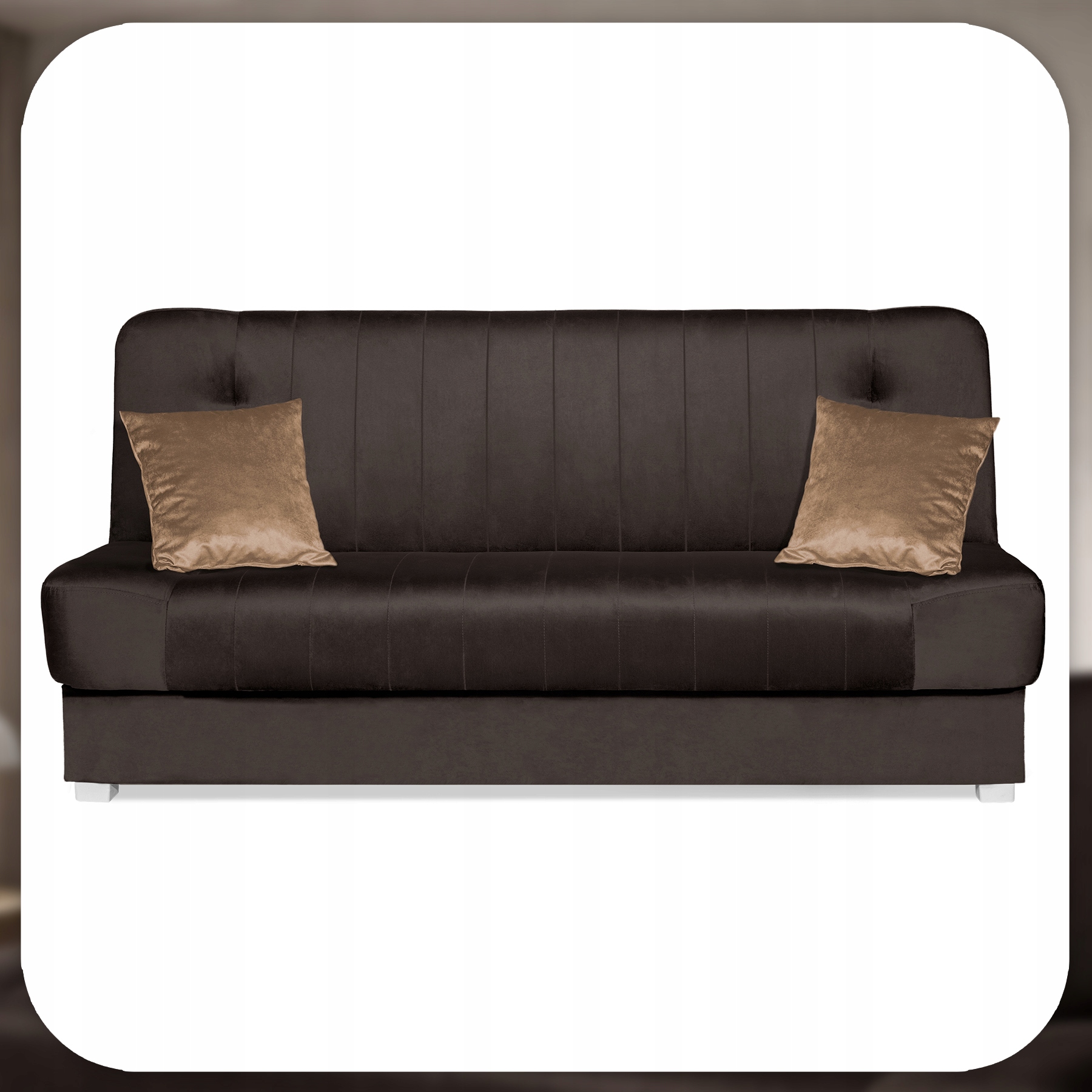 Wersalka Rozkładana Sofa Z Funkcją Spania Dwuosobowa Welurowa Brąz PIANO 2