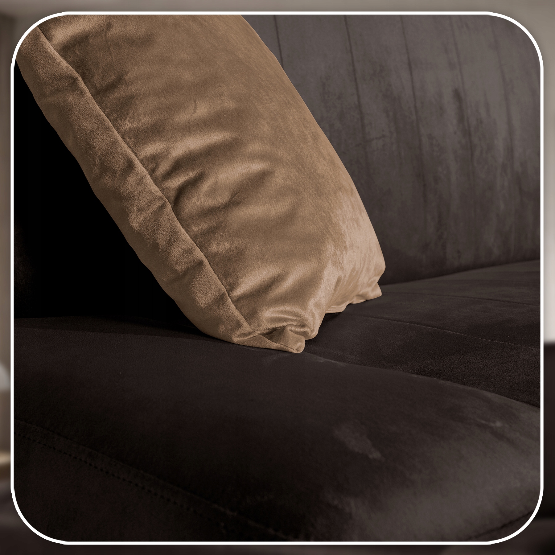 W komplecie z wersalką PIANO 2 otrzymujesz dodatkowe dwie poduszki dopasowane do tapicerki. Poduszki zostały obszyte tkaniną welurową VELURO 24.