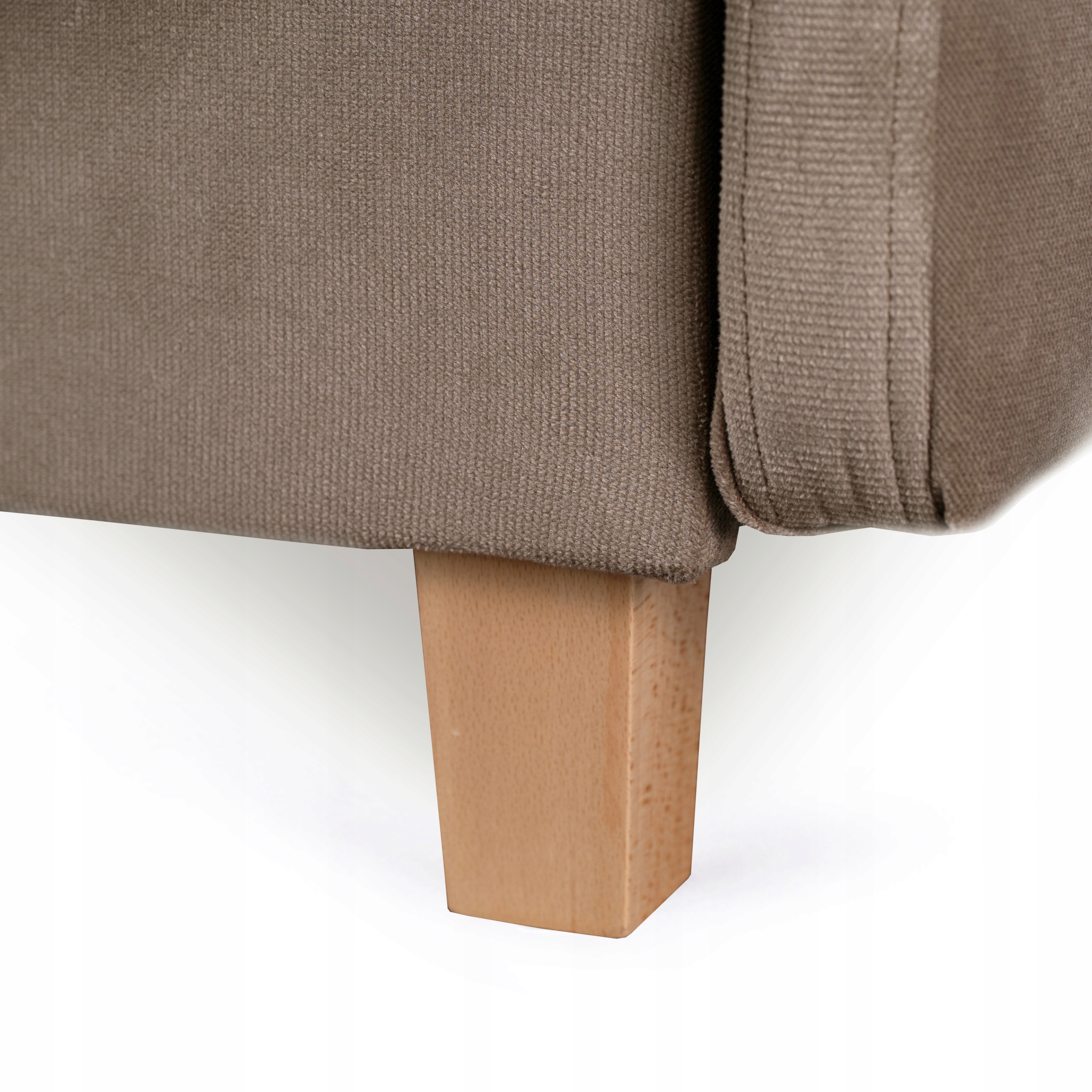 Nóżki kanapy w kolorze dębu dodają jej przytulnego charakteru. Zapewniają stabilność i trwałość jednocześnie nadając meblowi wyjątkowego, eleganckiego wyglądu.