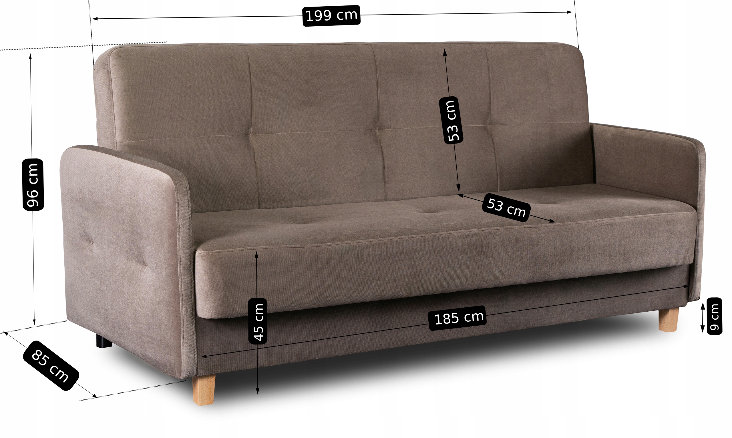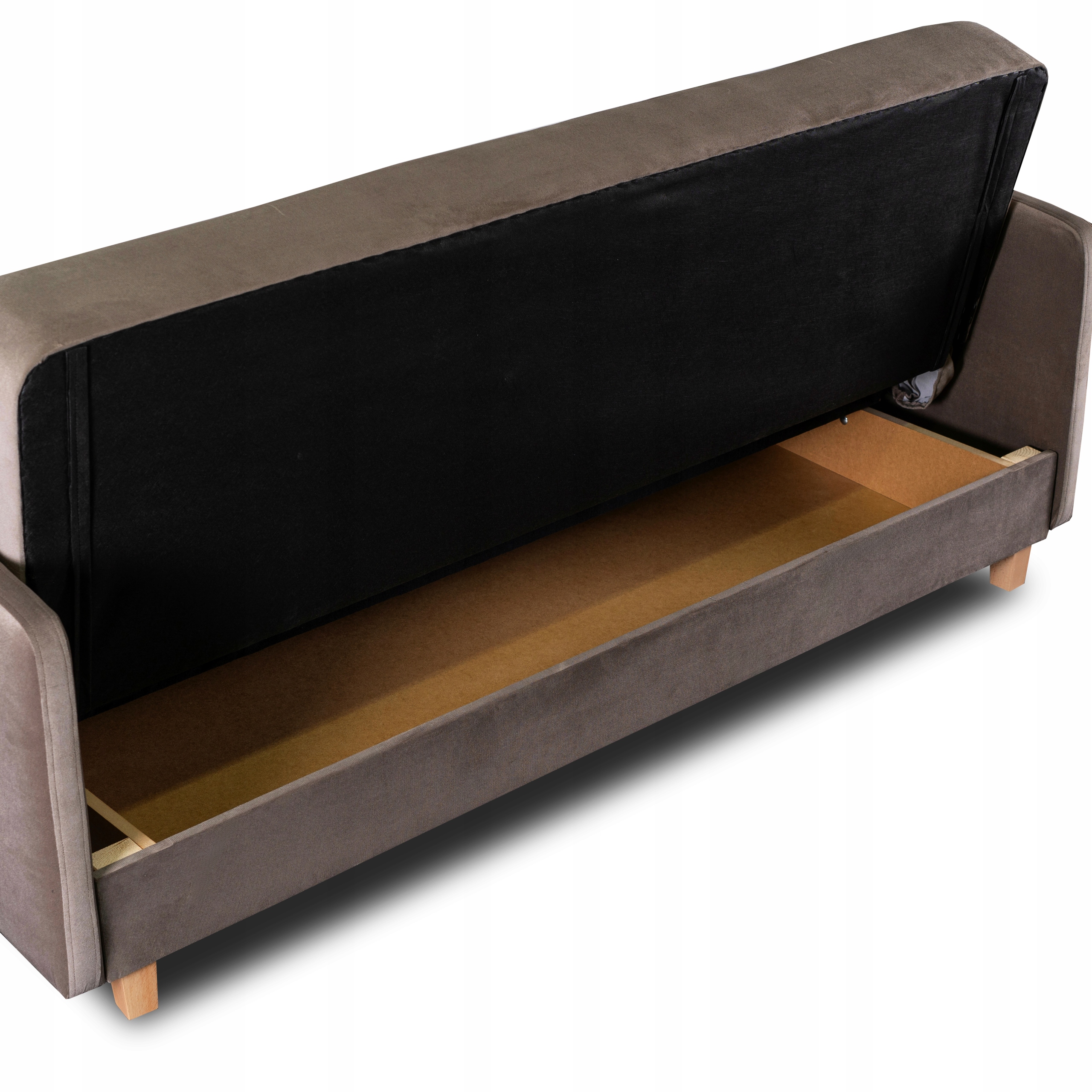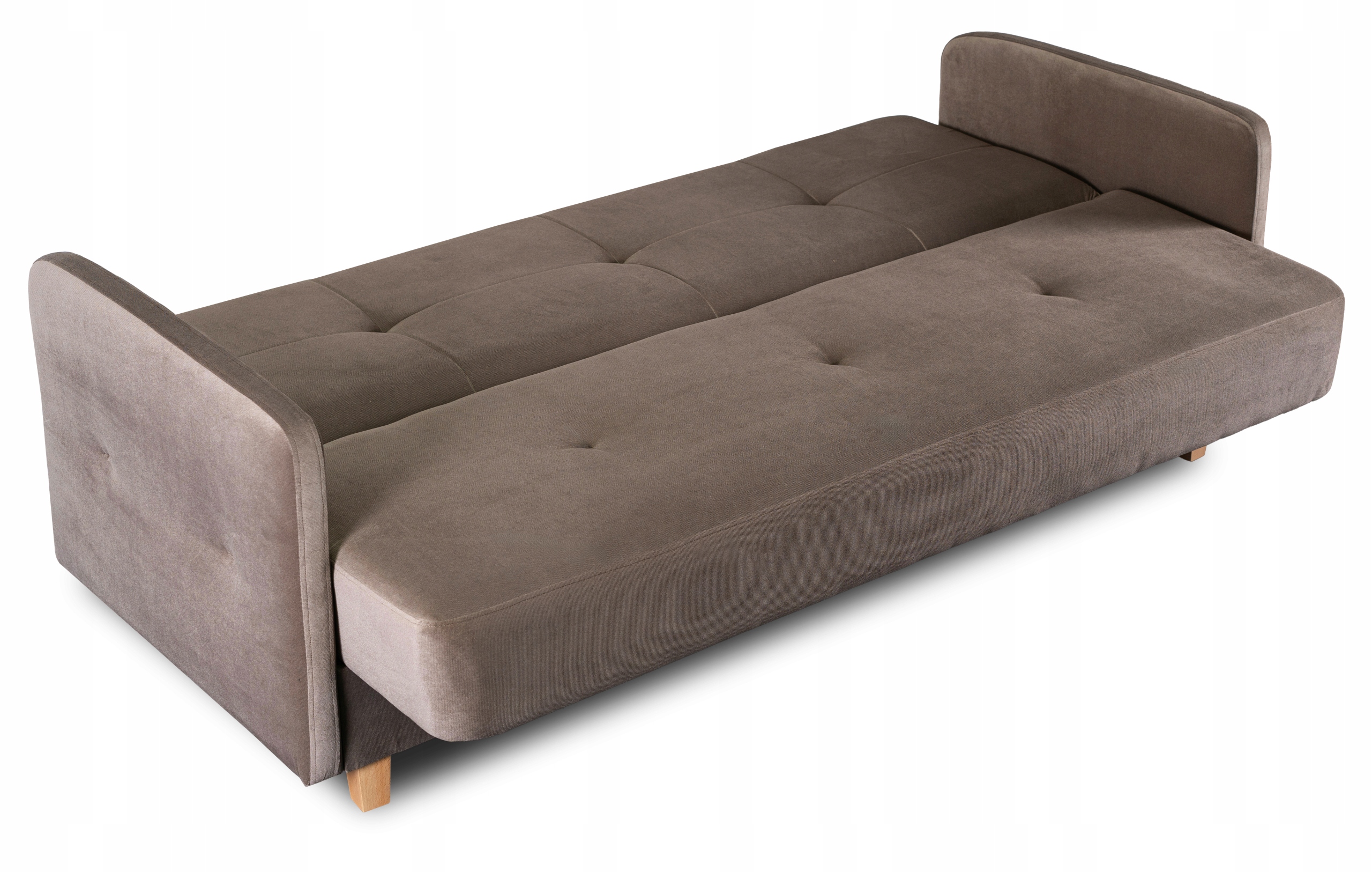 Jedną z głównych zalet kanapy jest funkcja spania, która pozwala na szybkie przekształcenie jej w przestronne łóżko o wymiarach 186x115 cm.