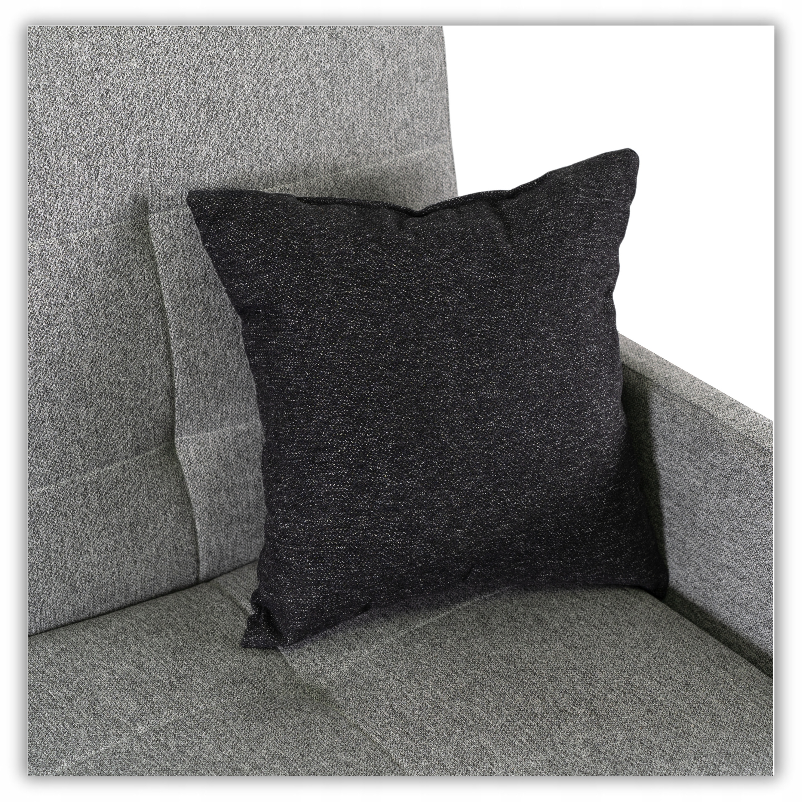 Dwie czarne poduszki dodają elegancji i jednocześnie zwiększają komfort. Mogą służyć jako wsparcie dla pleców lub element dekoracyjny.