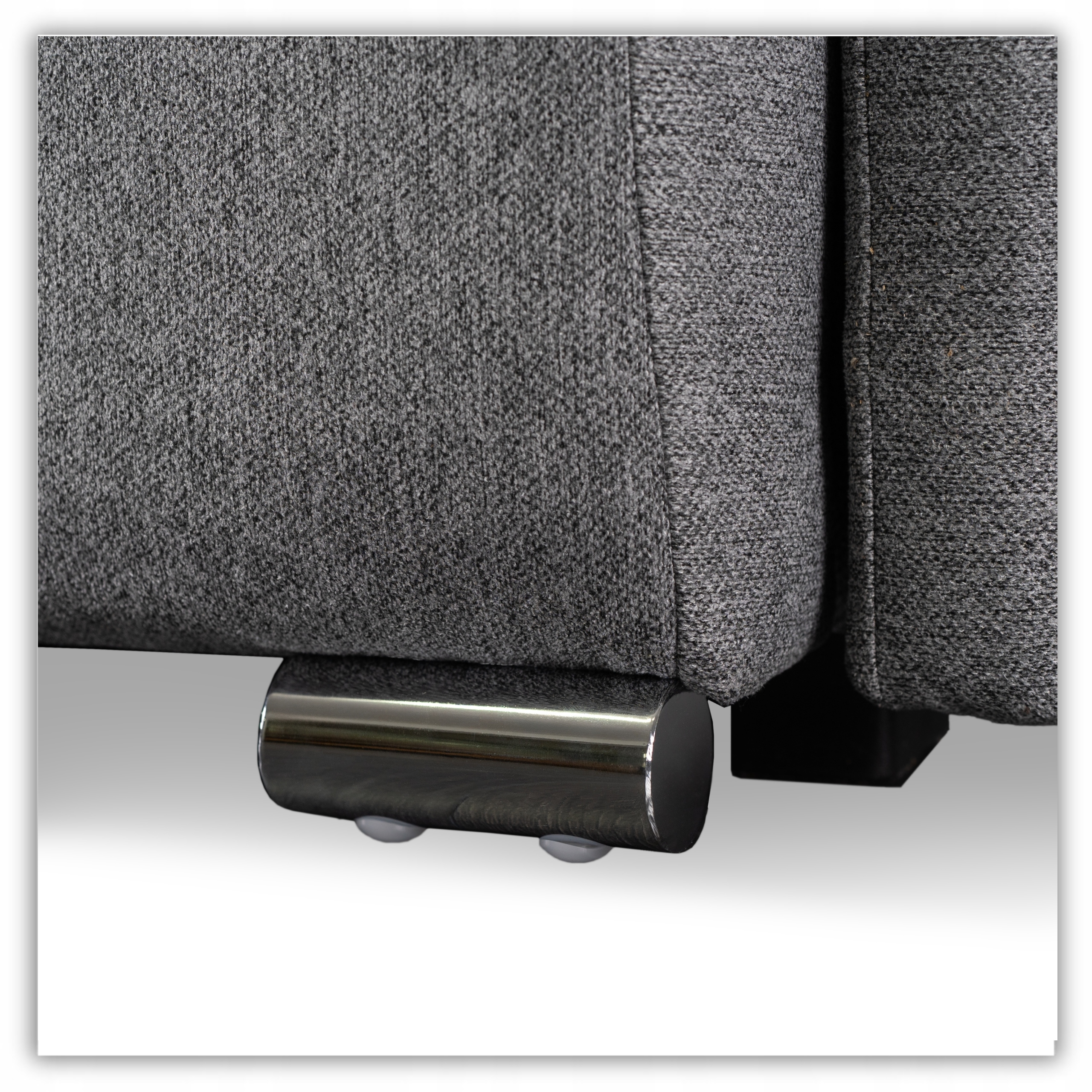 Srebrne nóżki kanapy to stylowy element, który dodaje jej nowoczesnego charakteru. Wykonane z wytrzymałego metalu, zapewniają stabilność i trwałość jednocześnie nadając meblowi lekkiego, eleganckiego wyglądu.