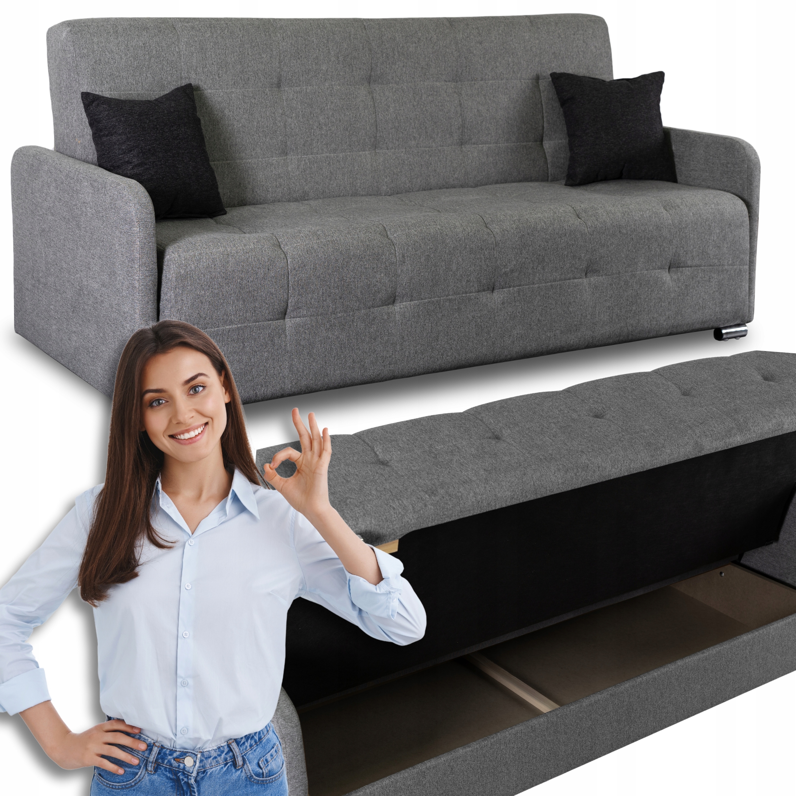 Wersalka Rozkładana Sofa Kanapa Funkcją Spania Dwuosobowa Szara ARIA ⭐⭐⭐⭐⭐