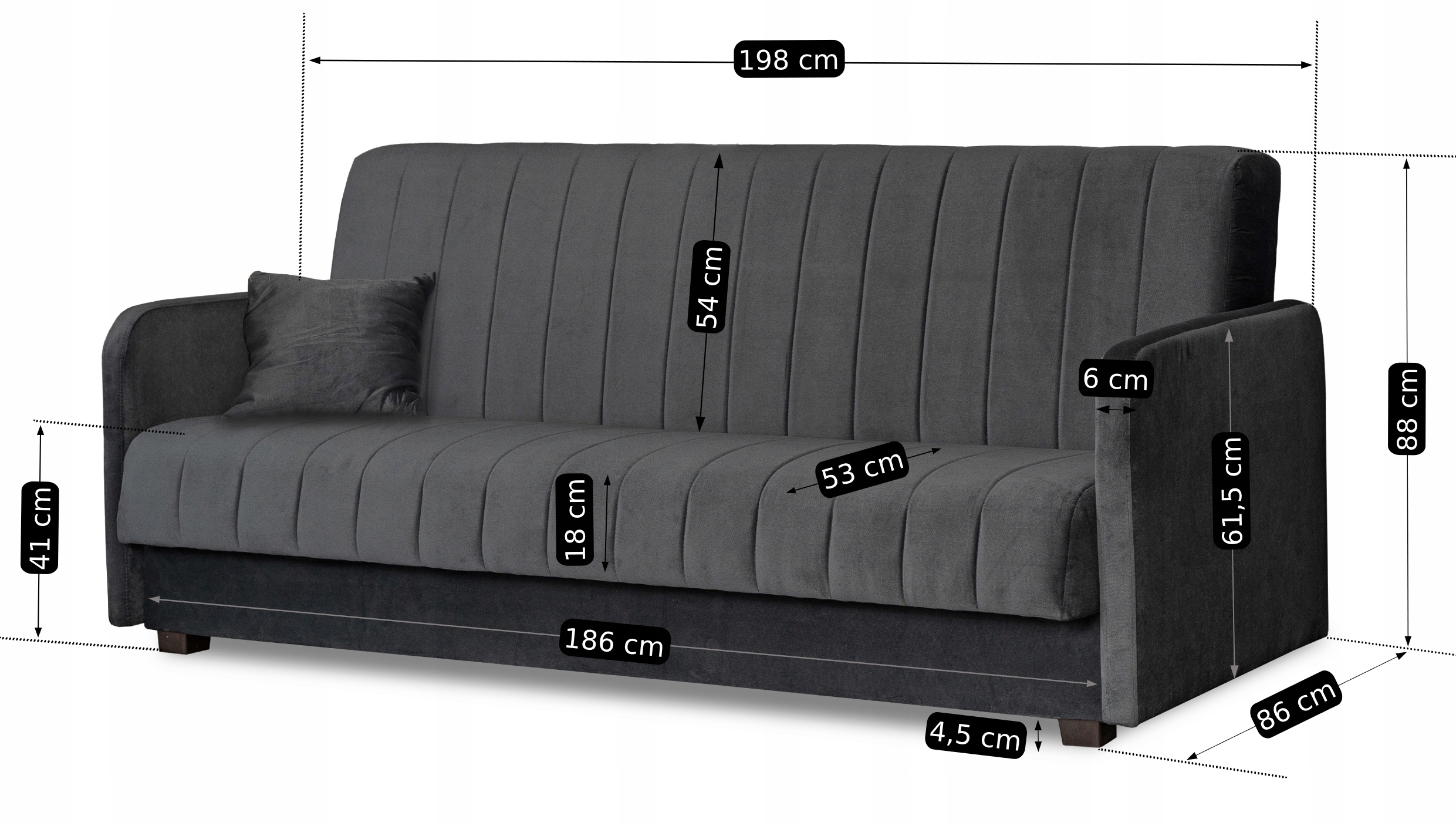 Podnosząc siedzisko uzyskasz dostęp do pojemnika. Bez problemu schowasz do niego pościel i poduszki.