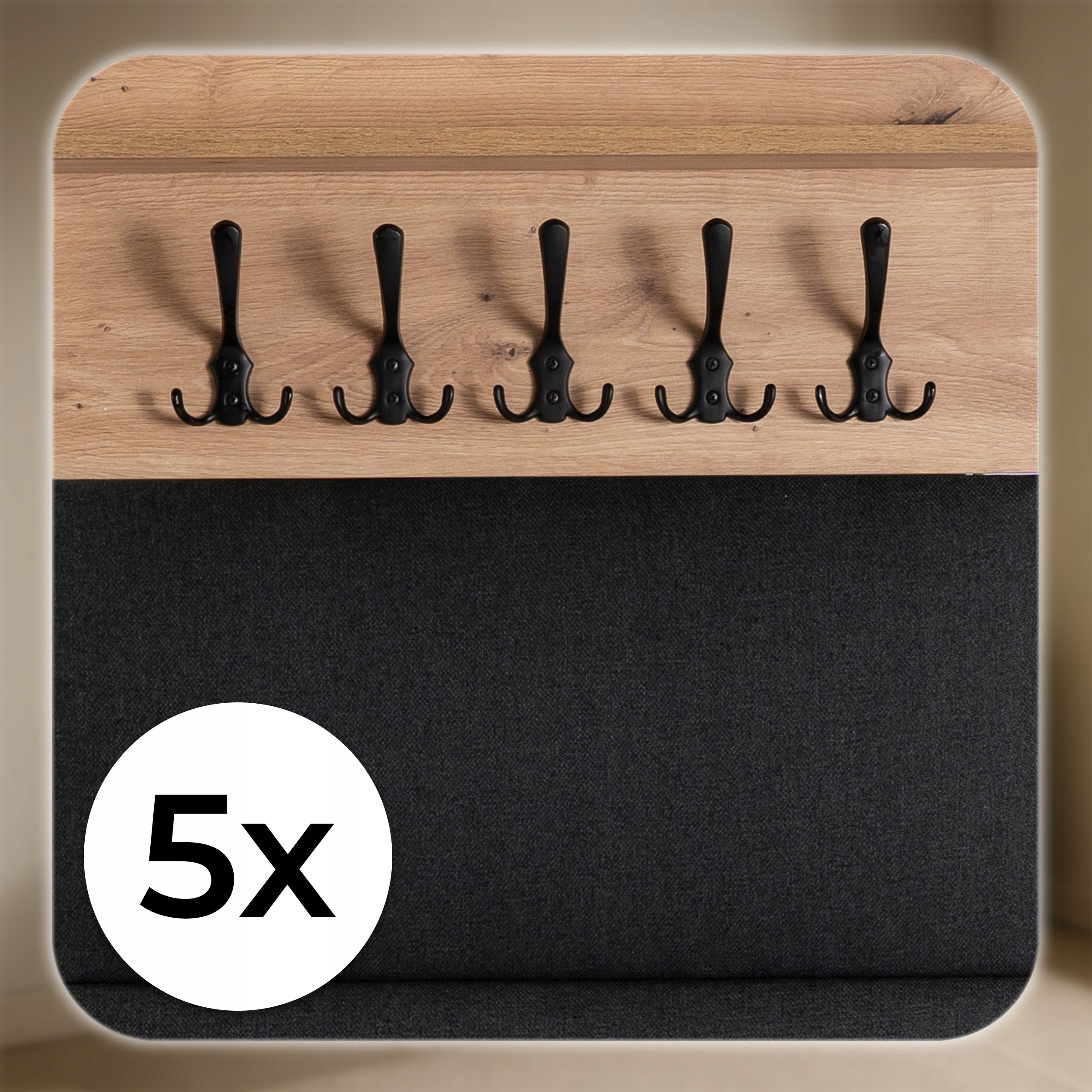 - 5 haczyków – idealne na kurtki, płaszcze, torebki czy szale.