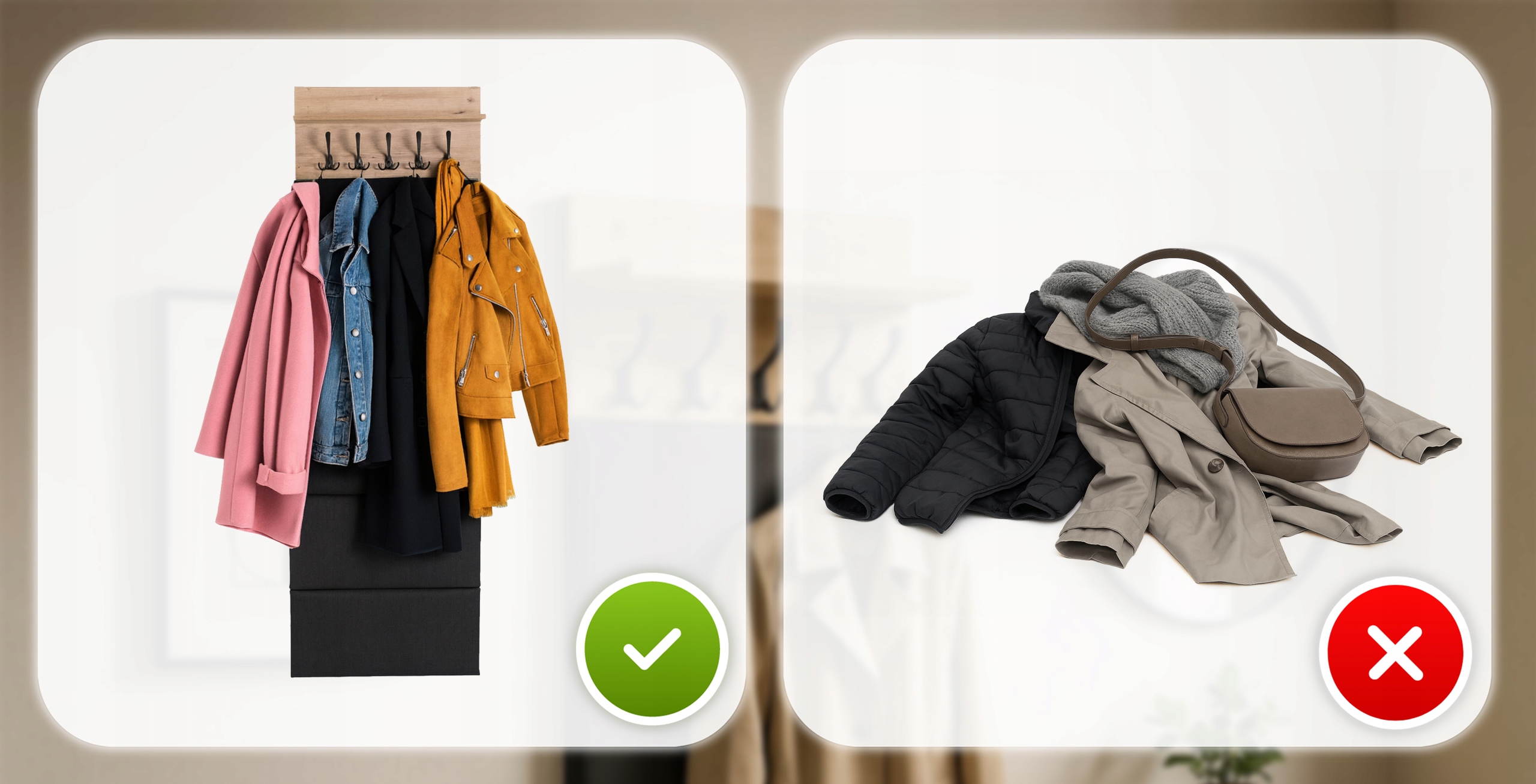 - Bezpieczne przechowywanie – haczyki utrzymują stabilnie nawet pełne plecaki czy torebki.