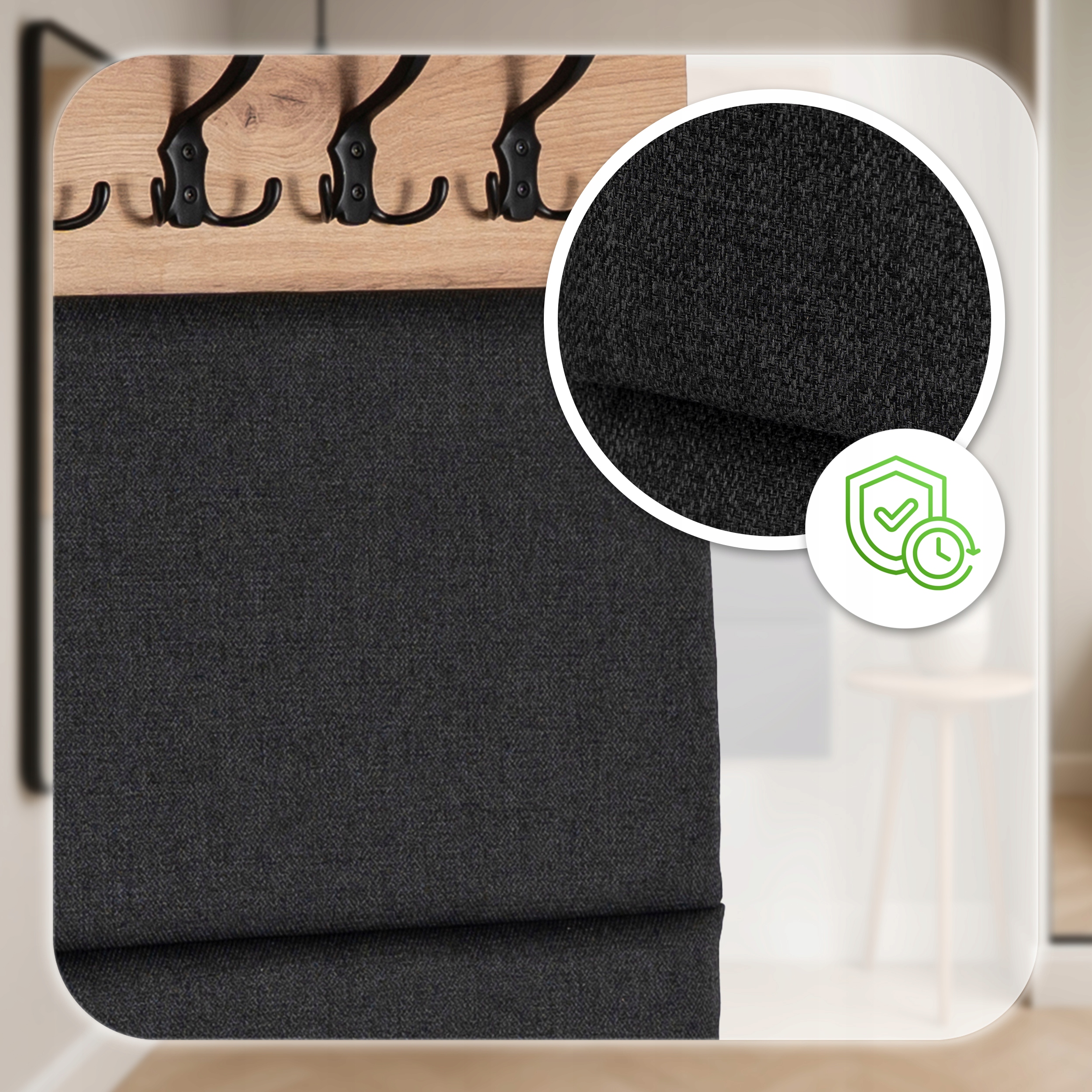 - Tapicerowany panel w kolorze czarnym – chroni ścianę, dodaje elegancji i wygodnie amortyzuje ubrania.