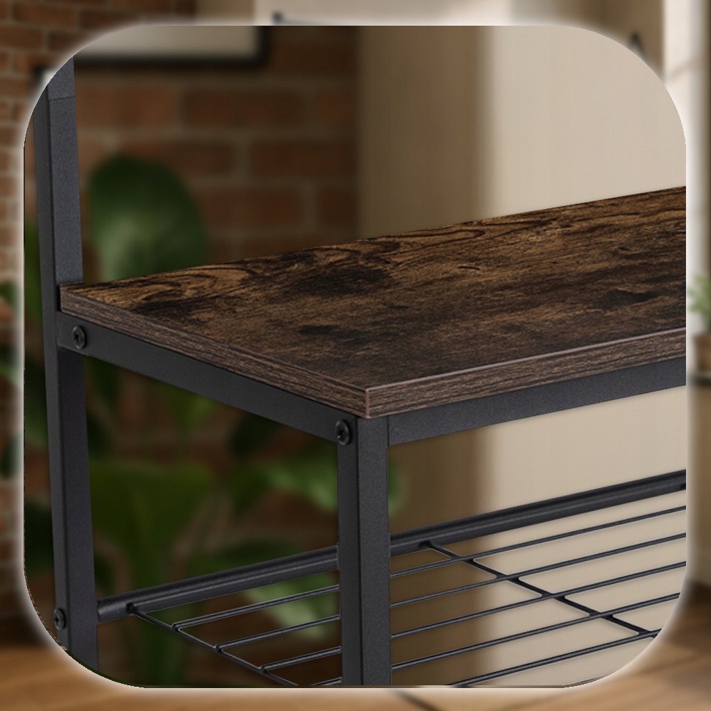 - Metalowa rama zapewnia stabilność i trwałość konstrukcji, dzięki czemu półki mogą bezpiecznie udźwignąć buty, kosze czy inne akcesoria.