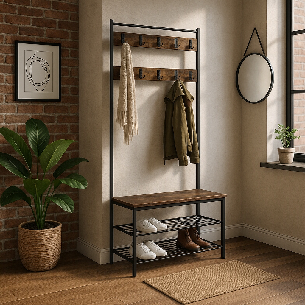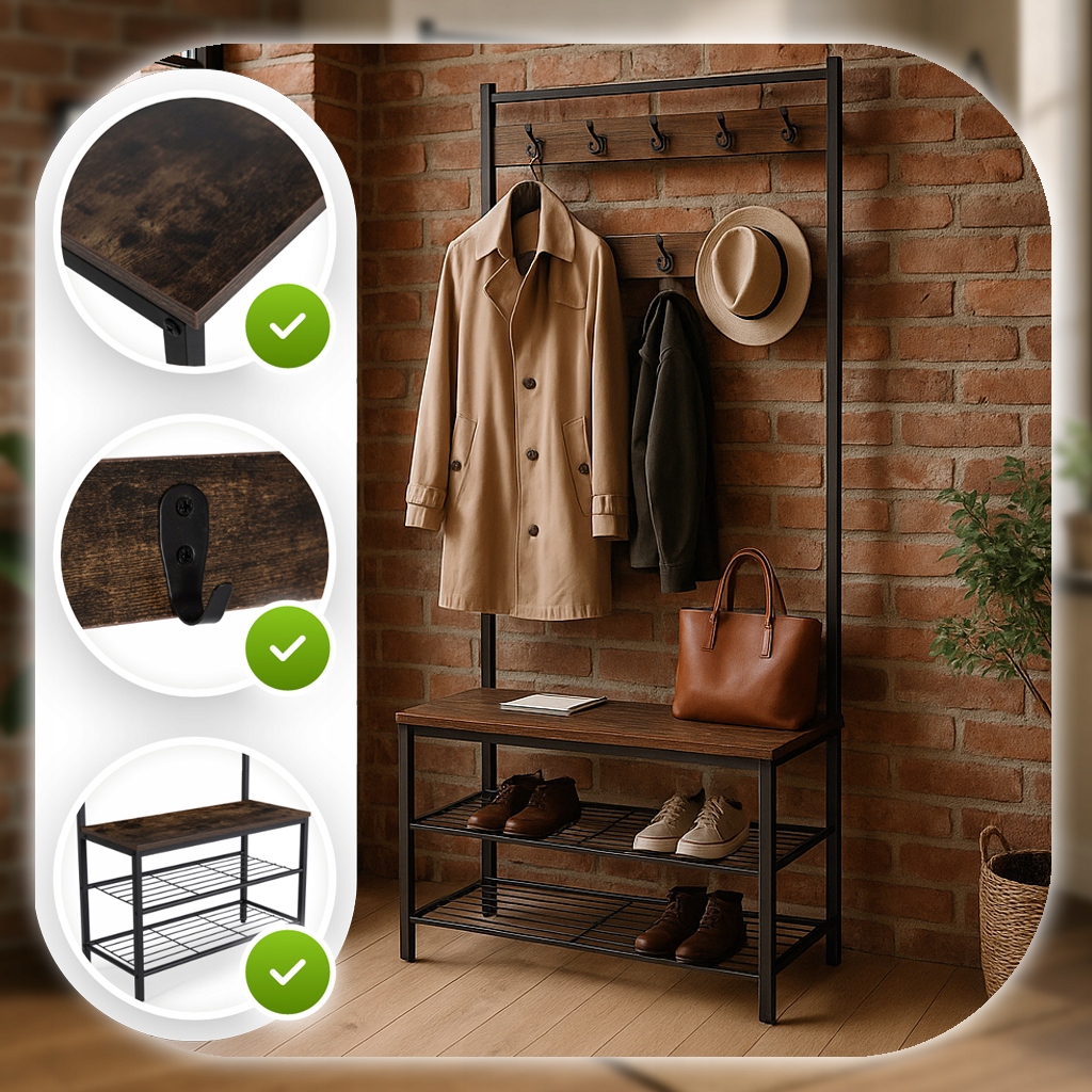 ✨ Wieszak Stojący Na Ubrania Do Przedpokoju Garderoby Z Półką Rustykalny JETT