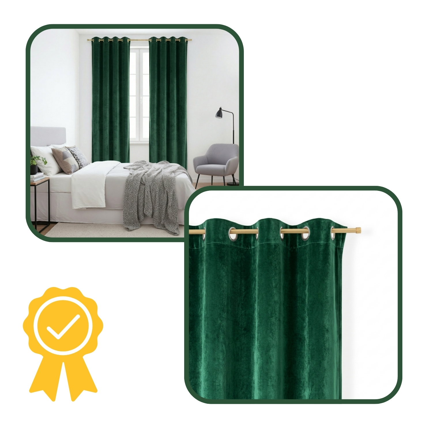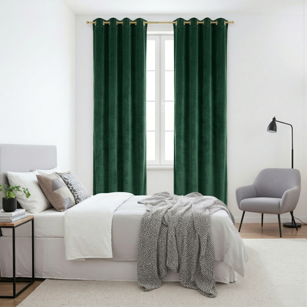 ✨ Butelkowozielona zasłona welurowa pięknie prezentuje się w salonie i sypialni, dodając wnętrzu elegancji i wyjątkowego klimatu.