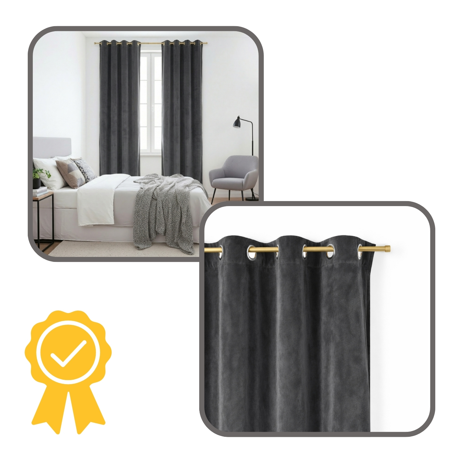⭐ GRAFITOWA zasłona welurowa 140x250 cm na przelotkach – Piękna i Funkcjonalna