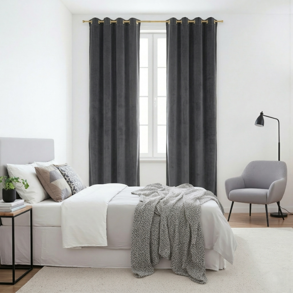 ✨ Grafitowa zasłona welurowa pięknie prezentuje się w salonie i sypialni, nadając wnętrzu wyjątkowego stylu i elegancji.