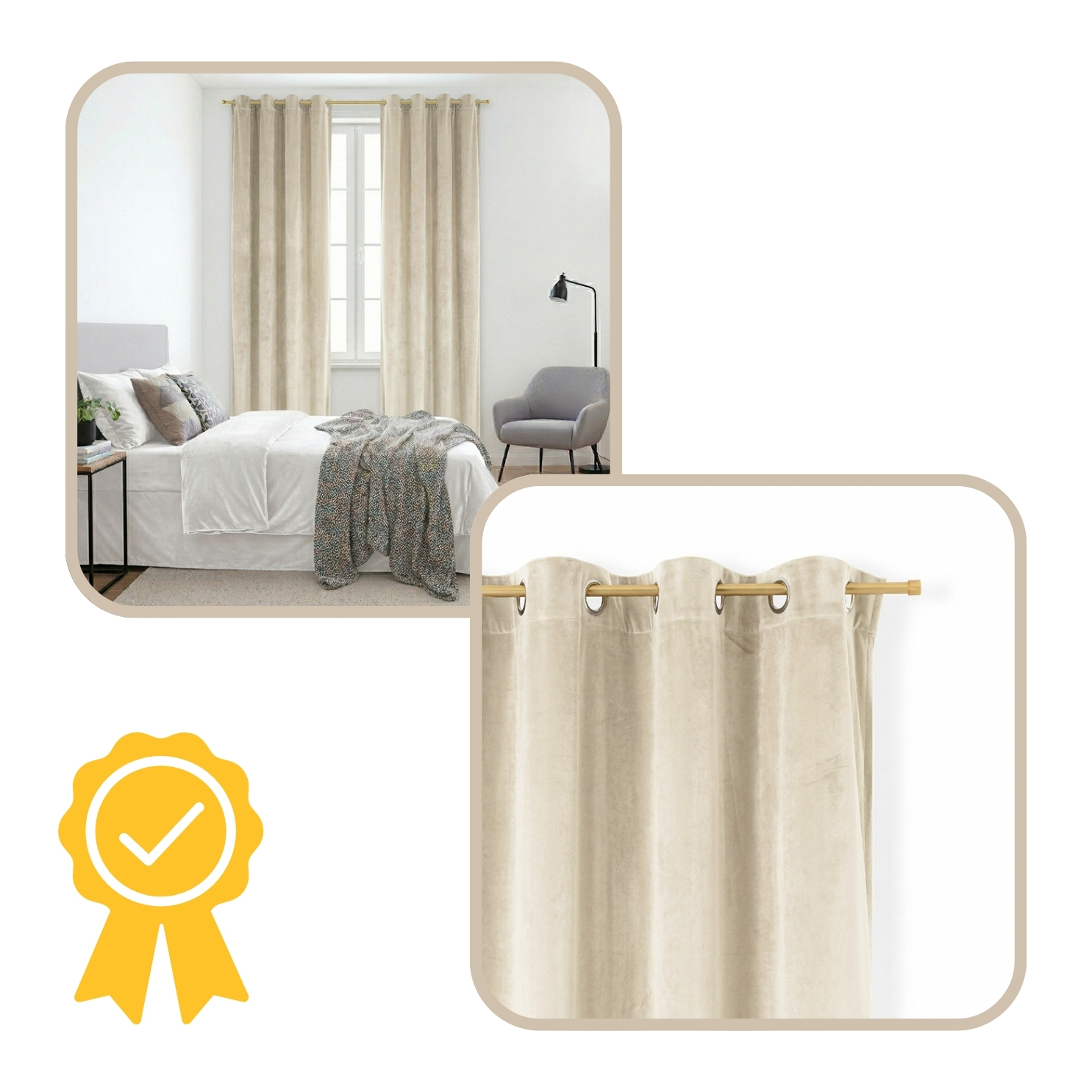 ⭐ JASNOBEŻOWA zasłona welurowa 140x250 cm na przelotkach – Piękna i Funkcjonalna
