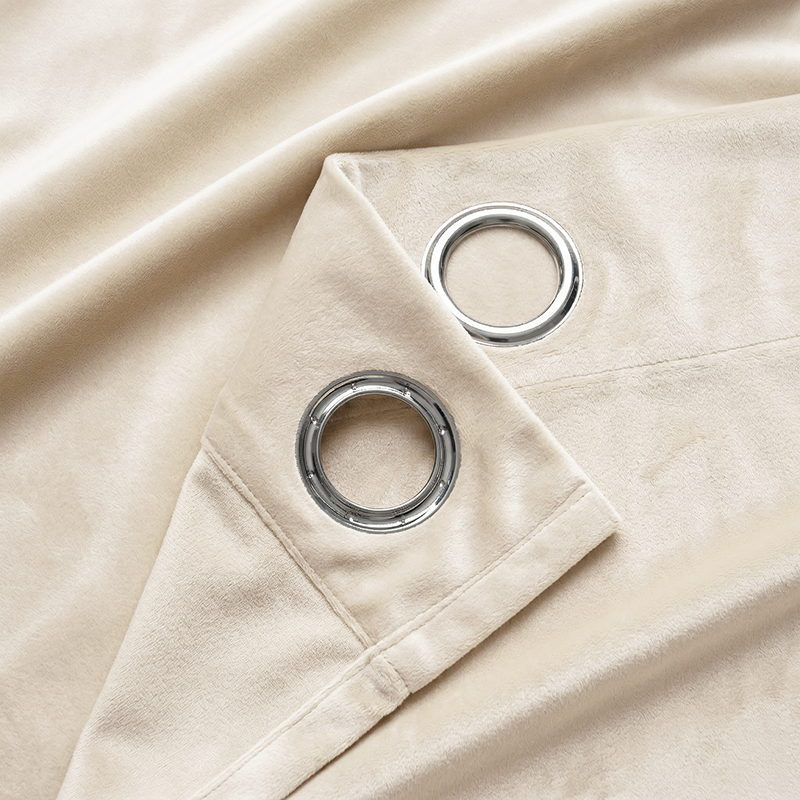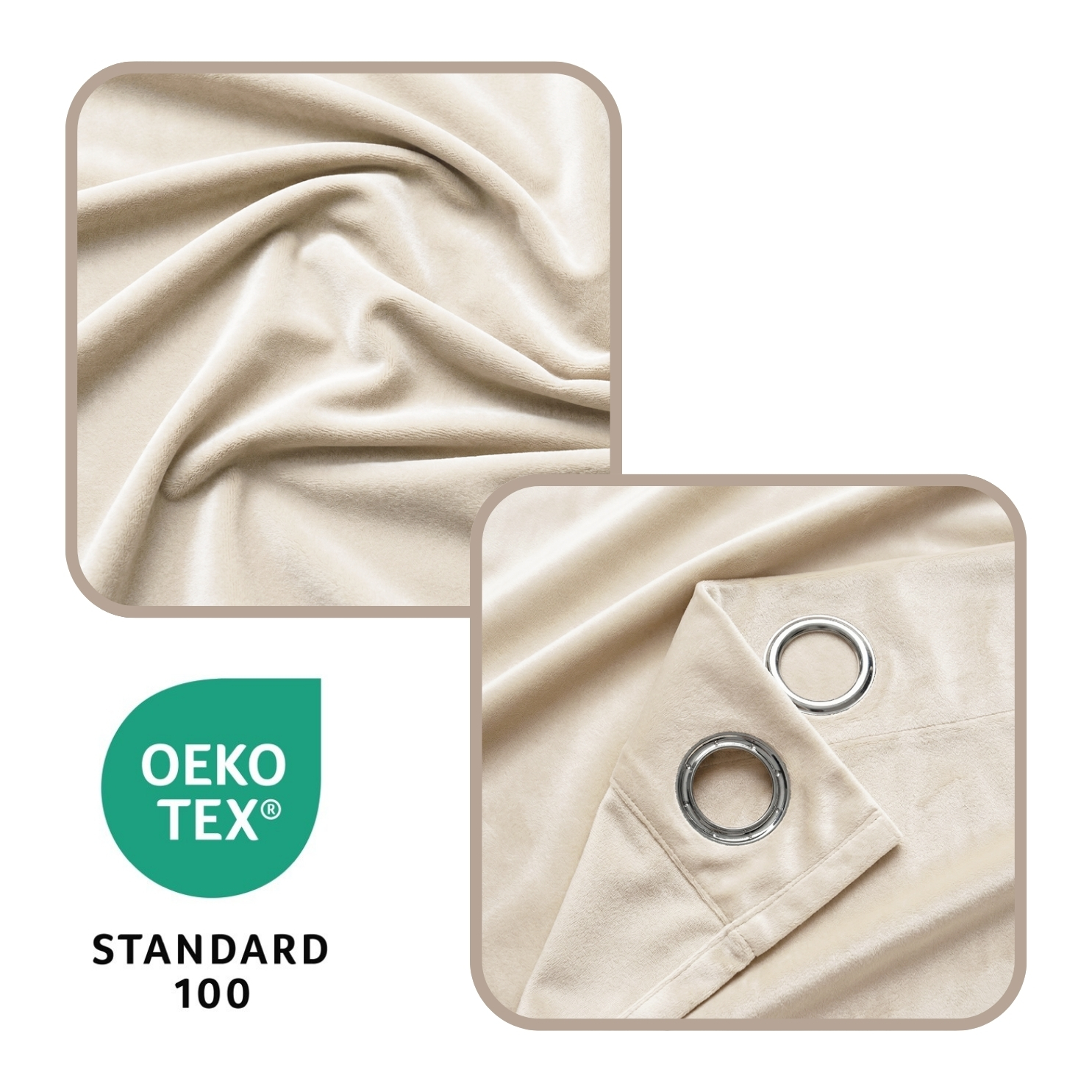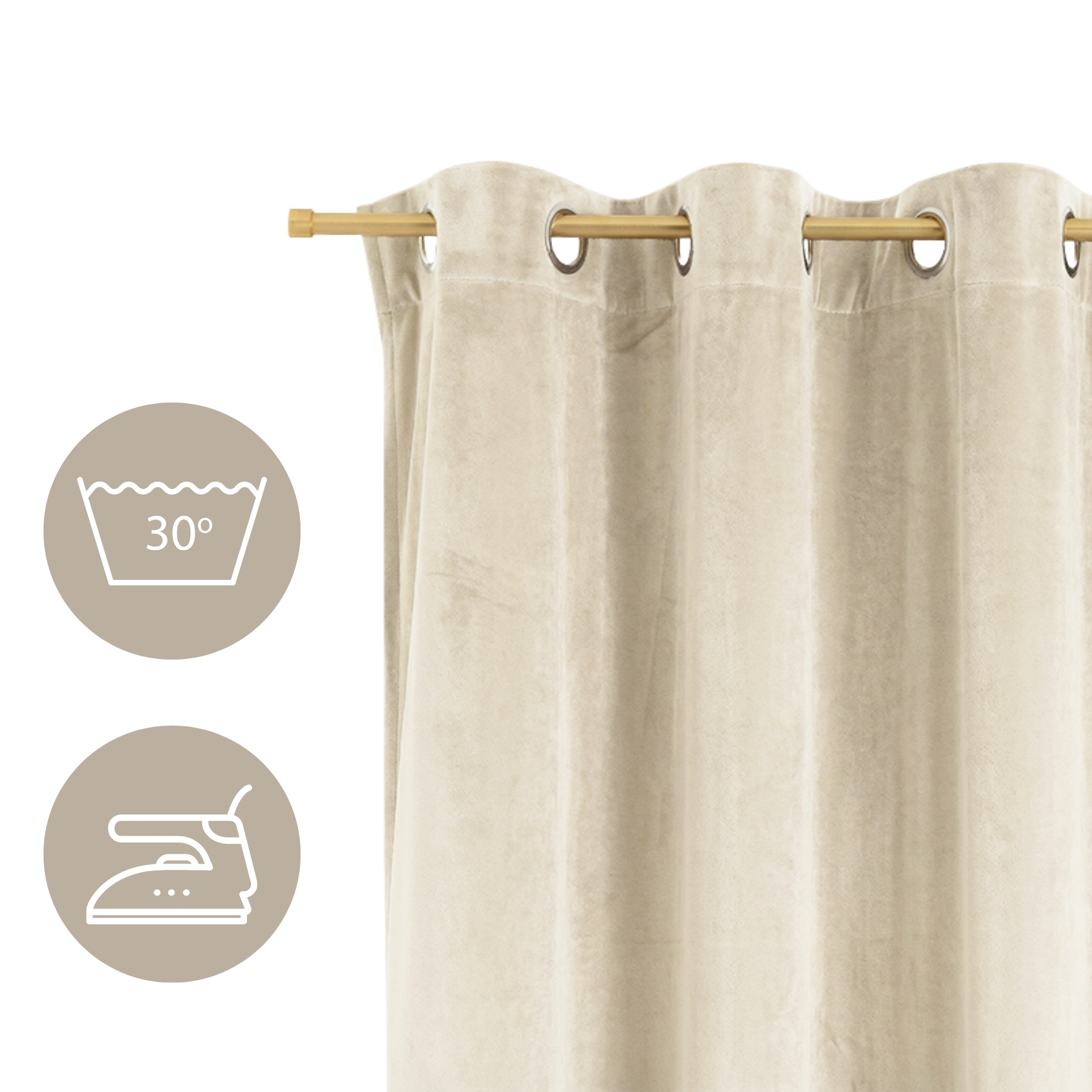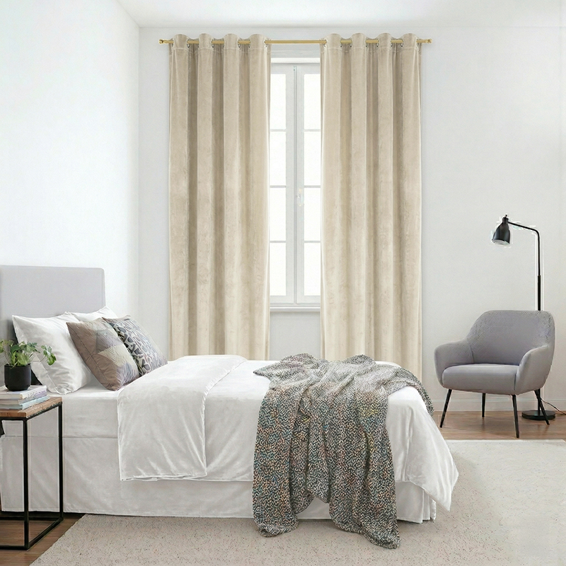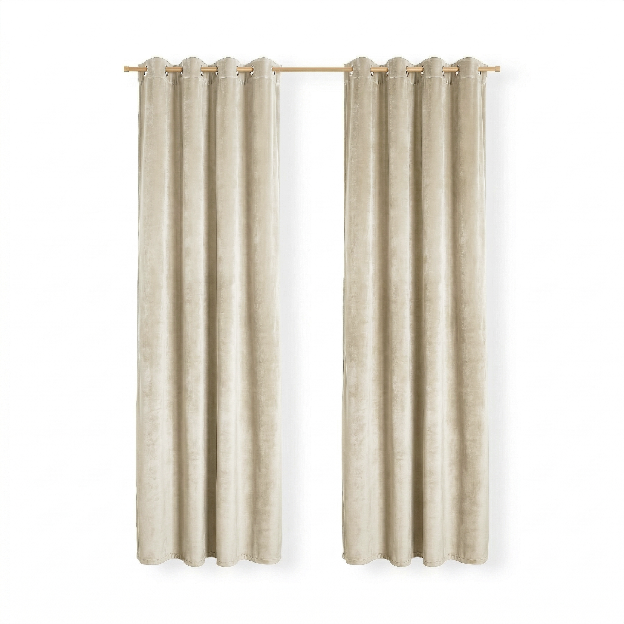 ✨ Jasnobeżowa zasłona welurowa pięknie prezentuje się w salonie i sypialni, nadając wnętrzu elegancji i świeżości.