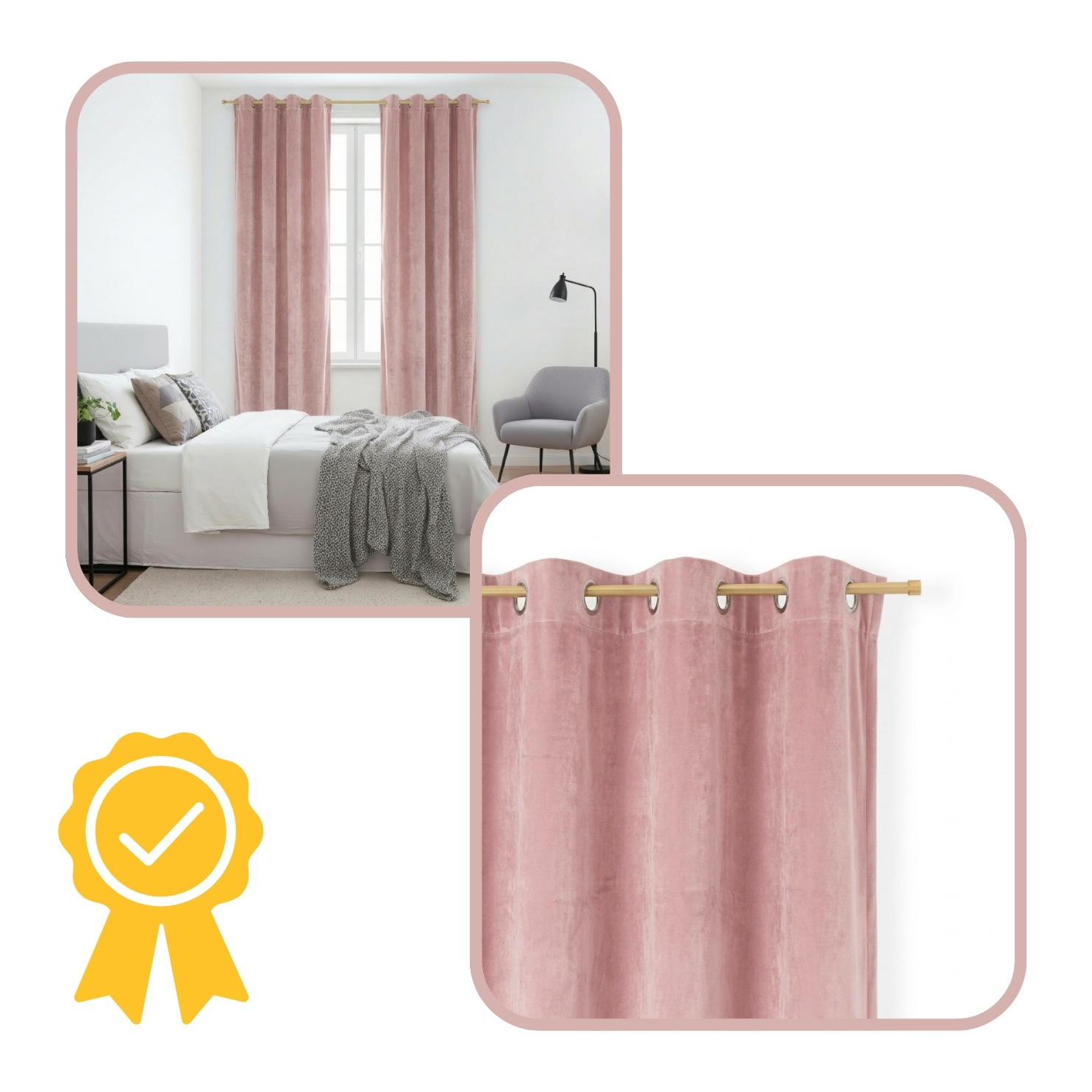 ⭐ PUDROWY RÓŻ - zasłona welurowa 140x250 cm na przelotkach – Piękna i Funkcjonalna