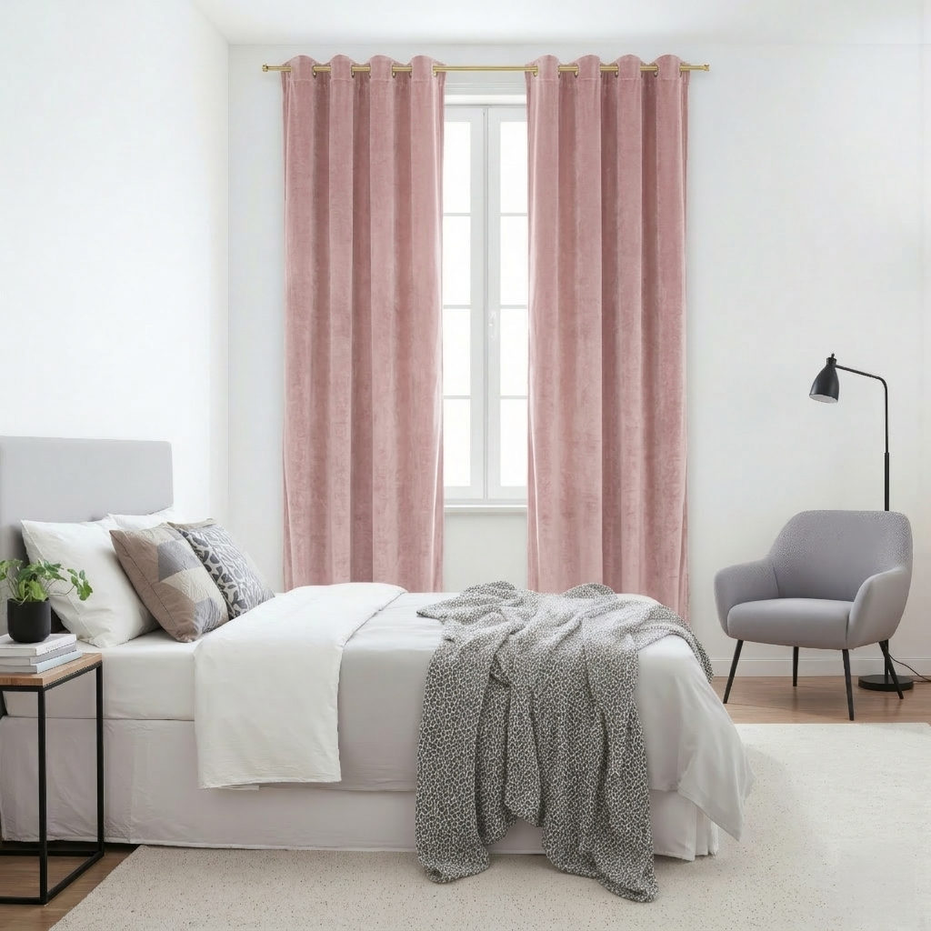 ✨ Pudroworóżowa zasłona welurowa pięknie prezentuje się w salonie i sypialni, dodając aranżacji delikatności i elegancji.