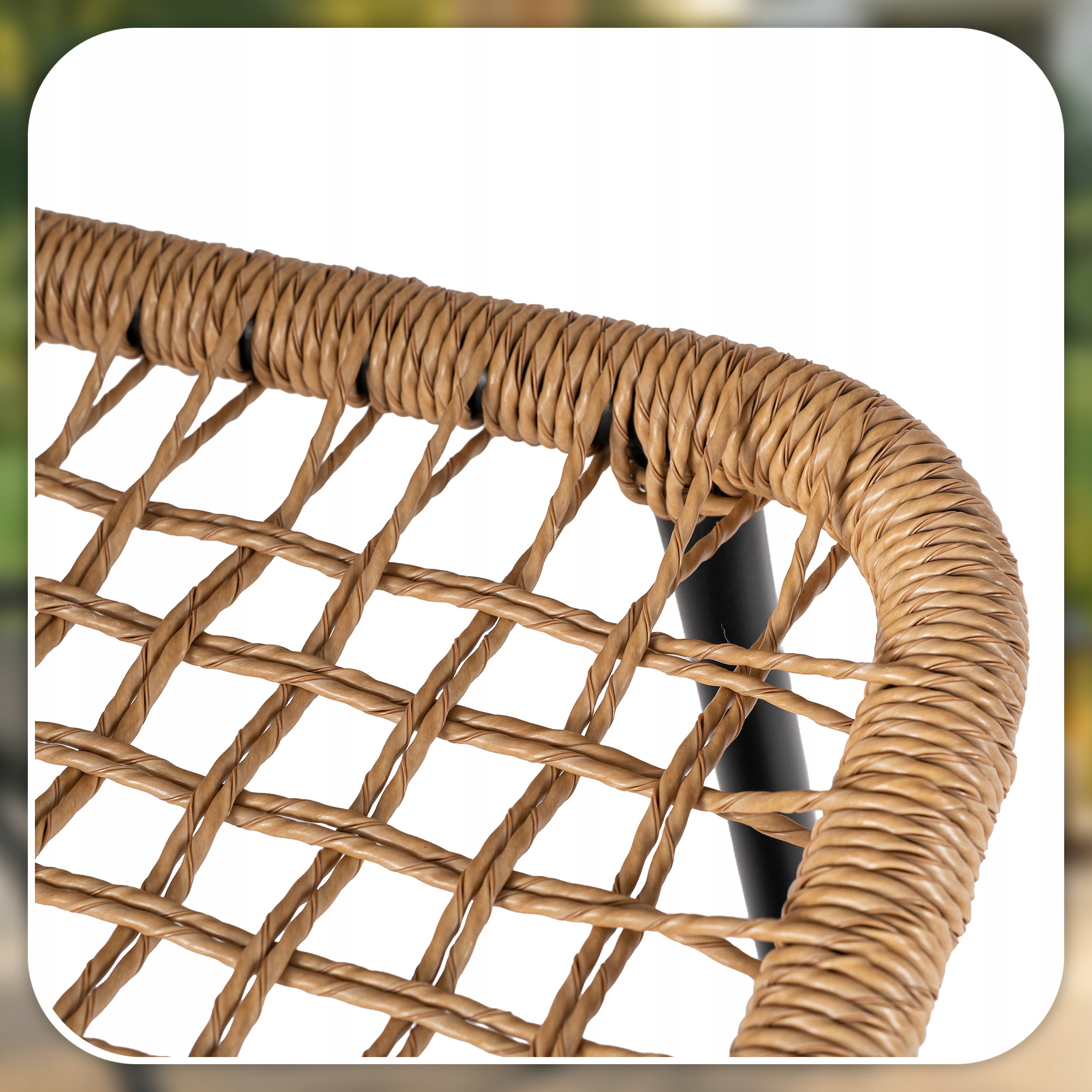 - Trwały rattan - estetyczna plecionka odporna na warunki atmosferyczne, promieniowanie UV oraz codzienne użytkowanie w ogrodzie lub na tarasie.
