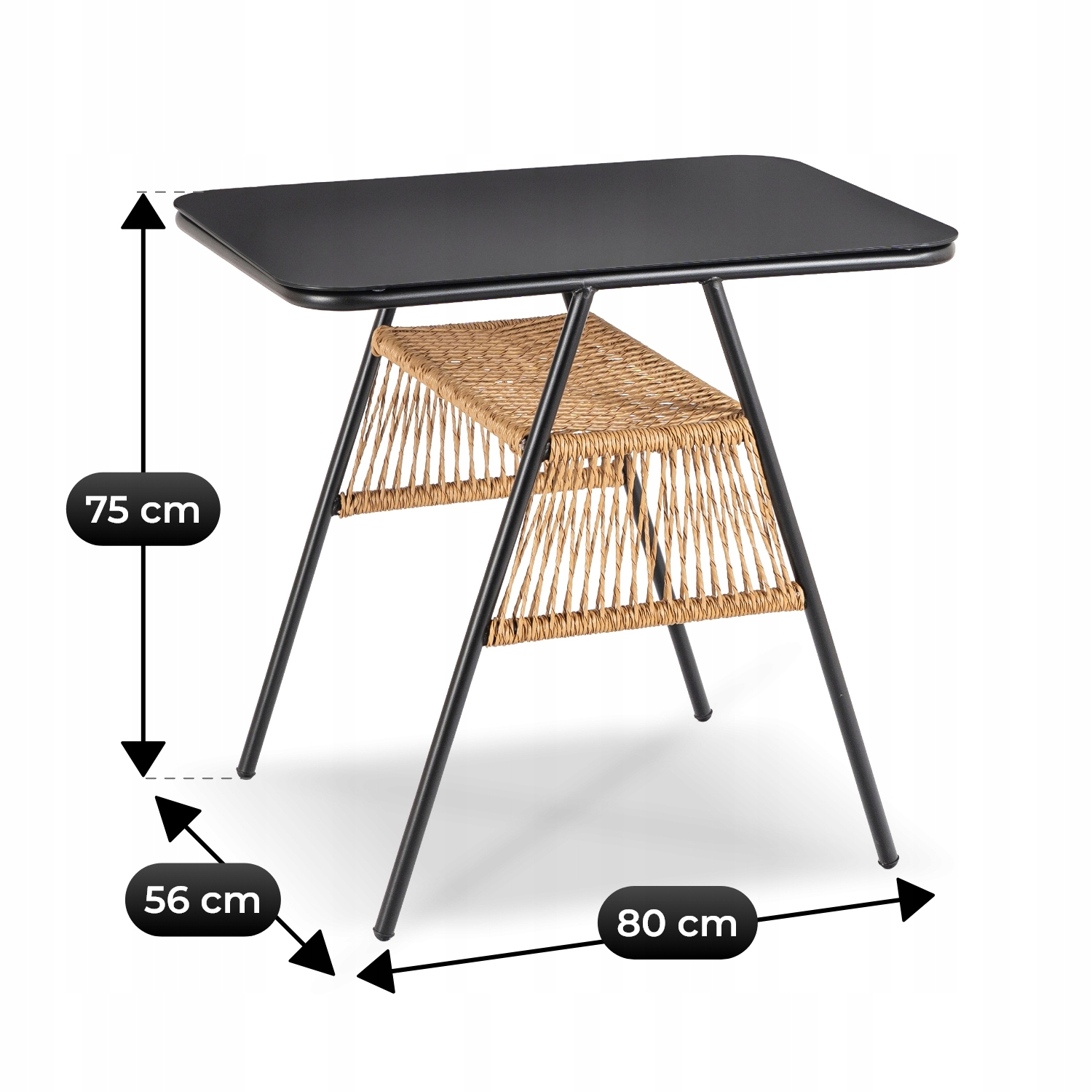 Wygodne miejsce na napoje, przekąski i dekoracje. Estetyczny blat jest trwały, stabilny i łatwy do utrzymania w czystości. Pod blatem znajduje się praktyczna półka z plecionki, idealna do przechowywania drobiazgów.