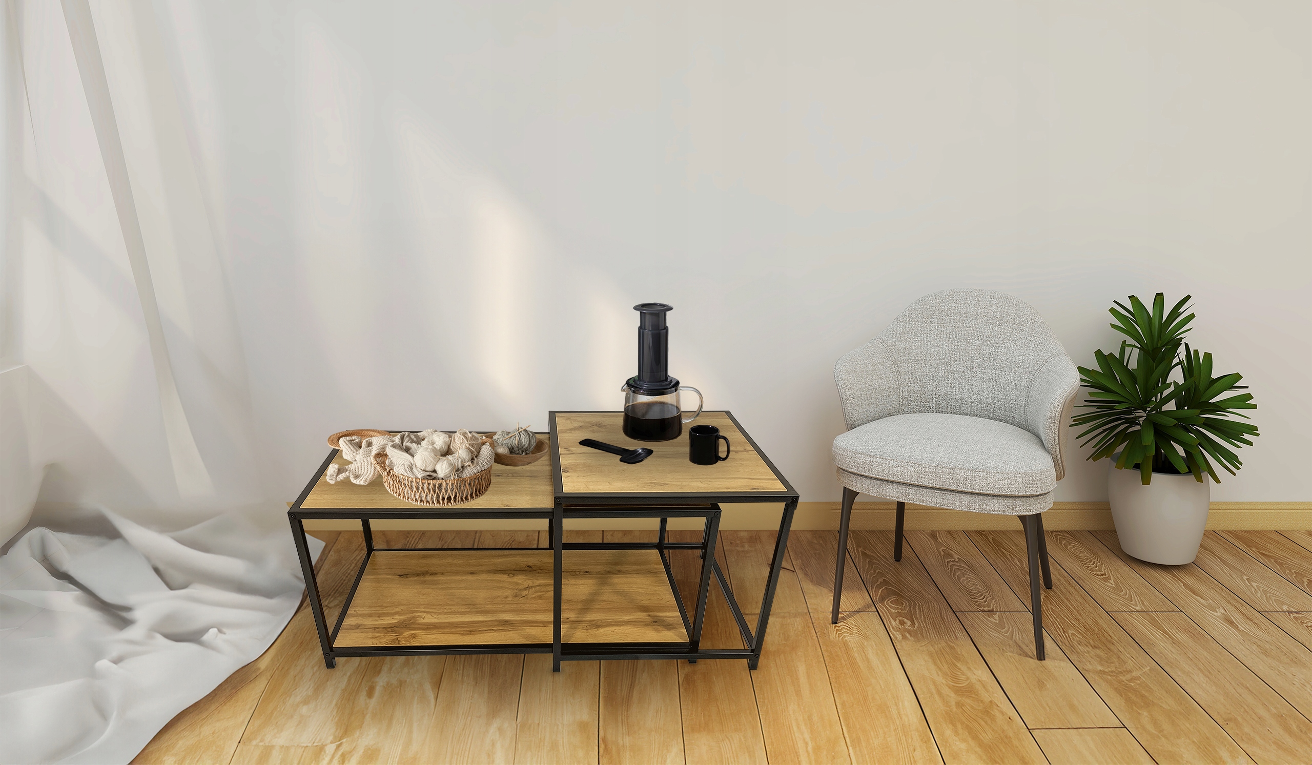 - Praktyczne 2 stoliki do salonu, pokoju czy sypialni.