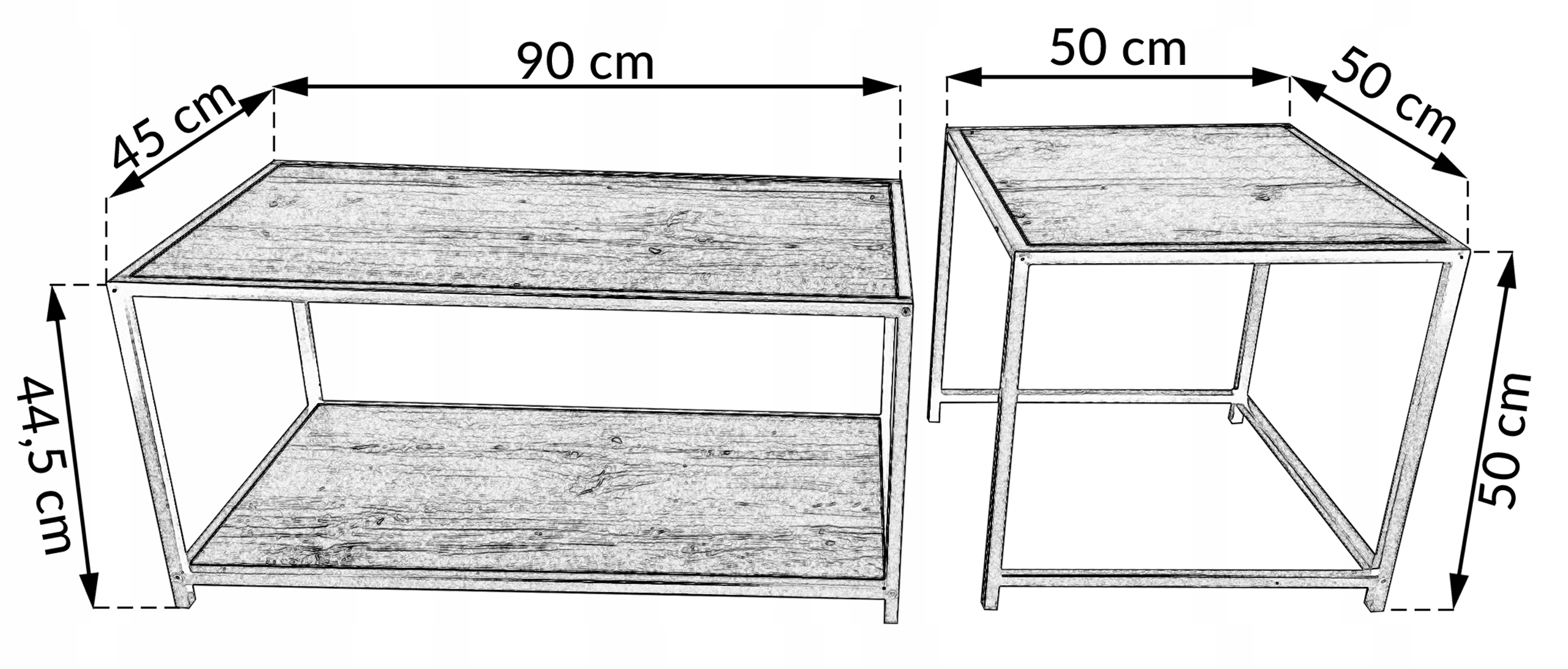 ✔️ Rozmiar większego stolika: 90x45x44,5cm