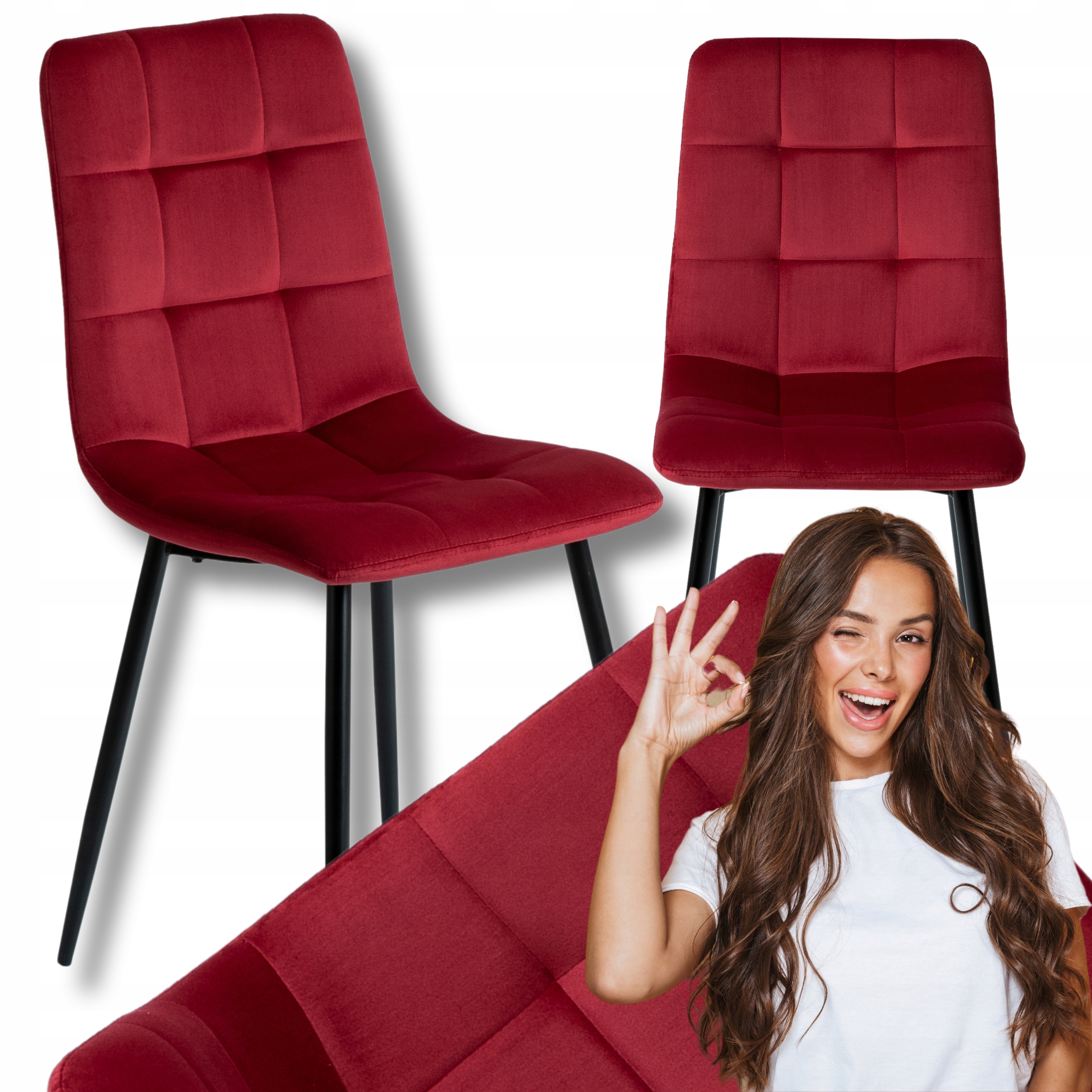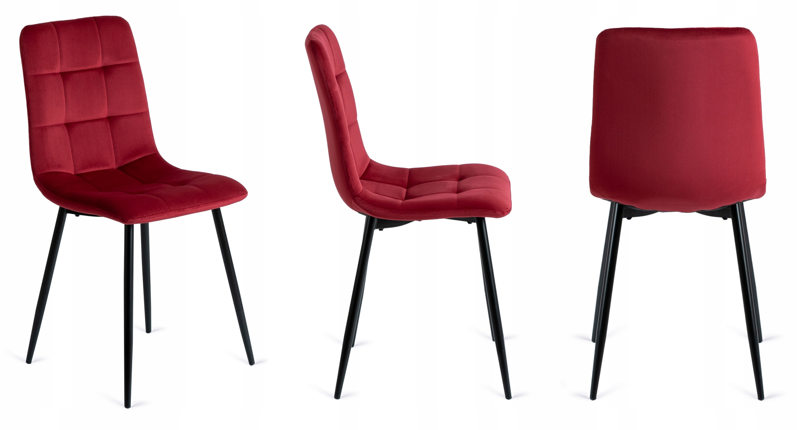 - 4 × krzesło welurowe PERU, kolor bordowy, nogi czarne