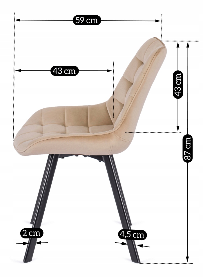 Skośne nogi wykonane zostały z metalu, malowanego na czarno metodą proszkową. Zapewniają znakomitą stabilność krzesła.