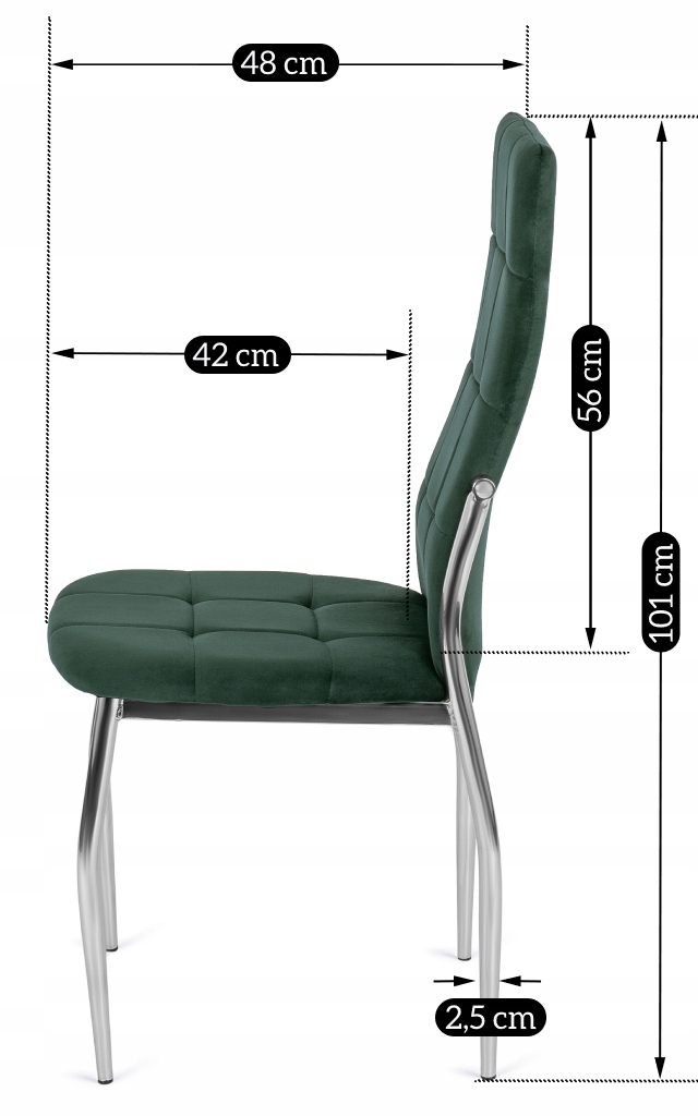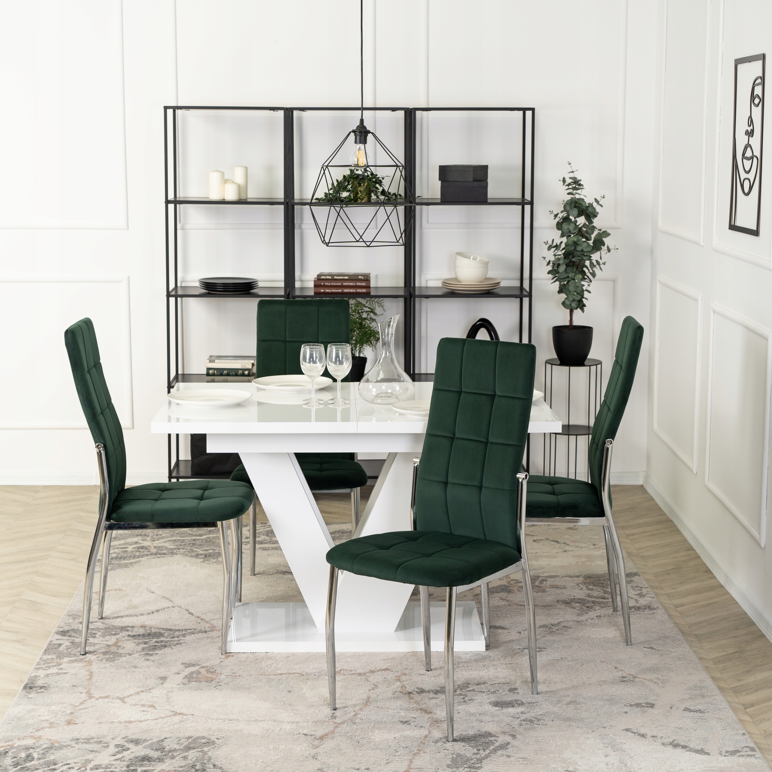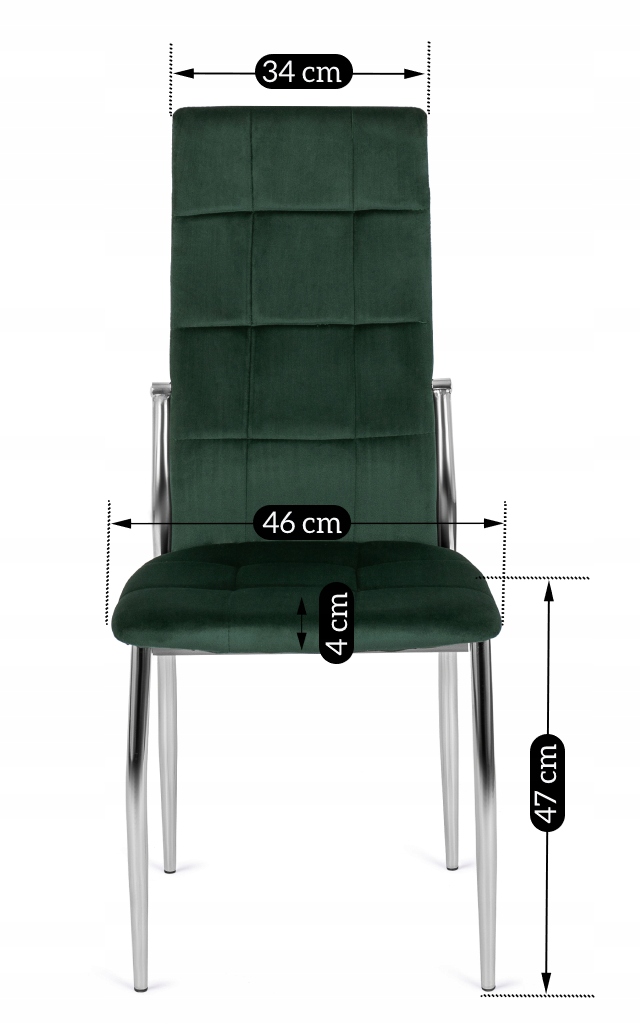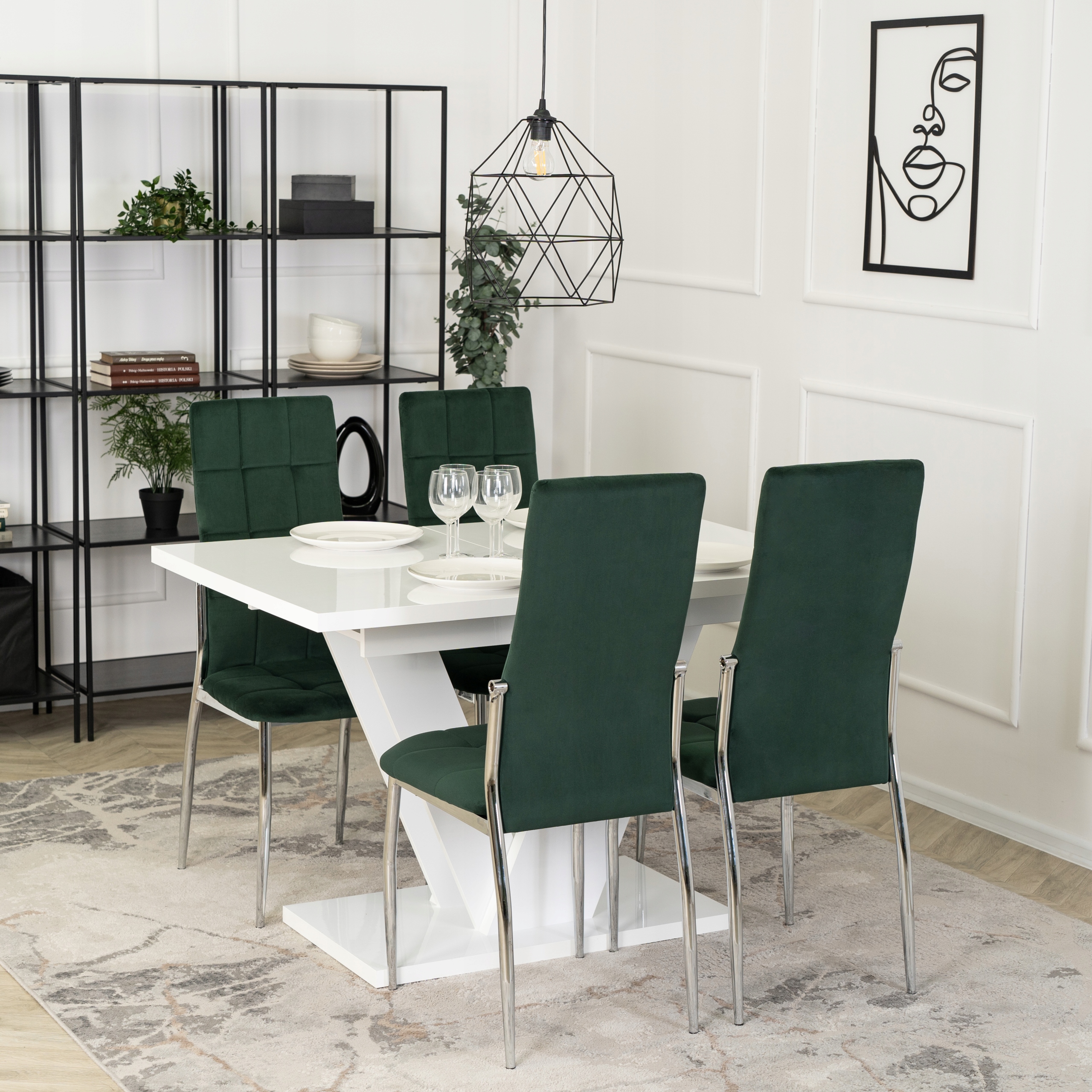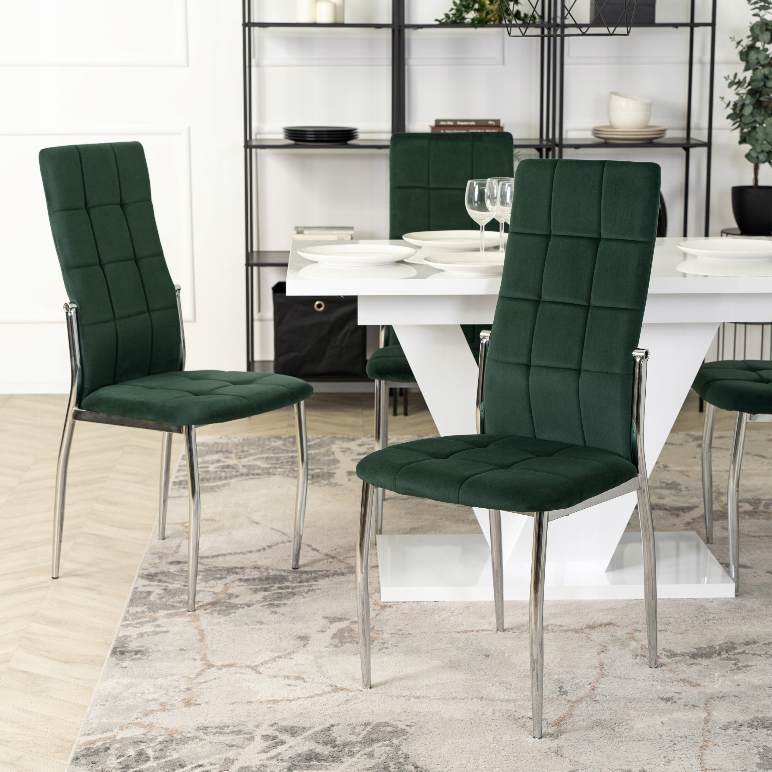 - Zestaw 4x Krzesło welurowe MOLLY w kolorze butelkowej zieleni ze chromowanymi nogami