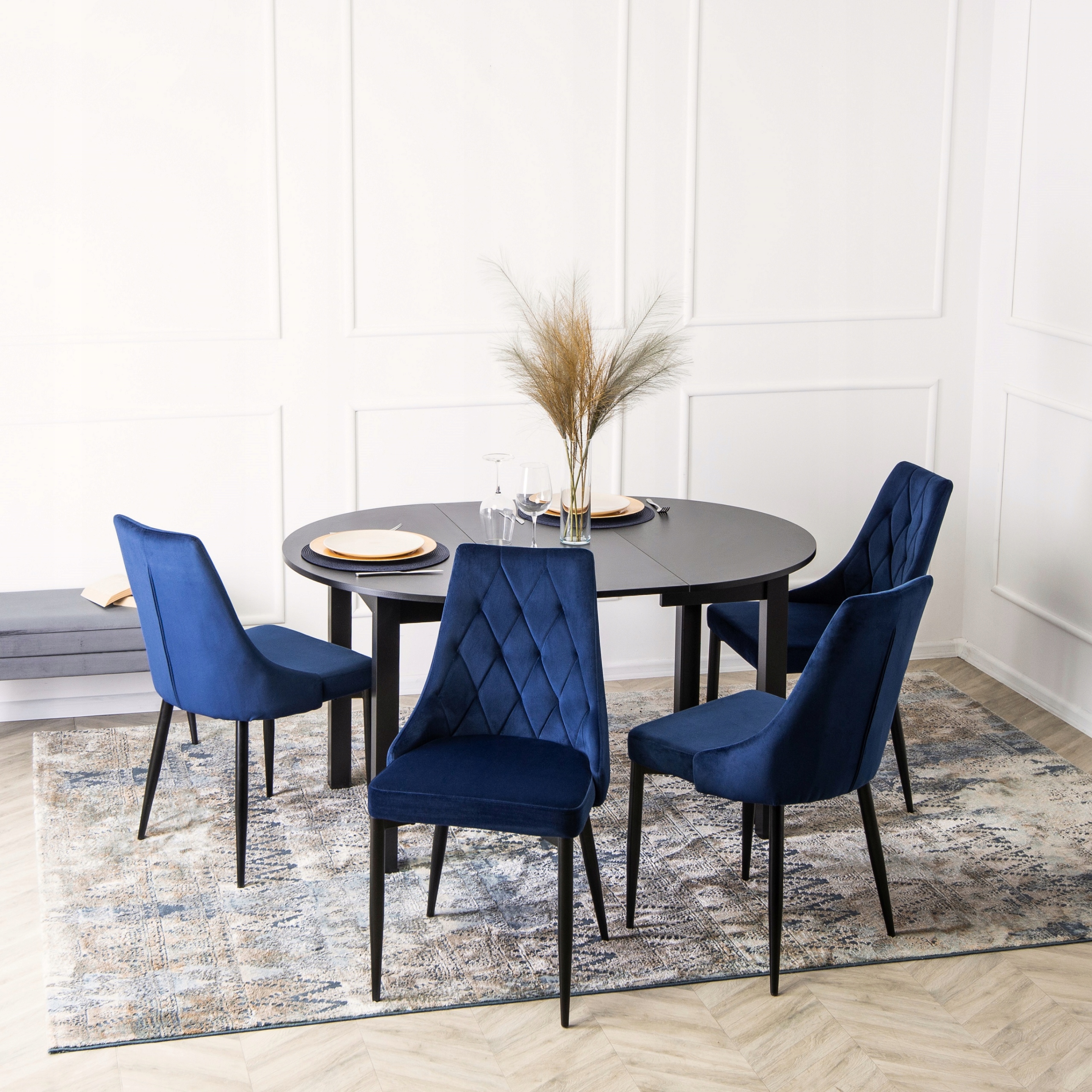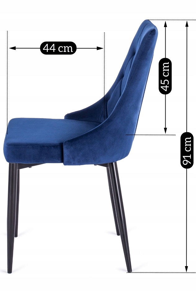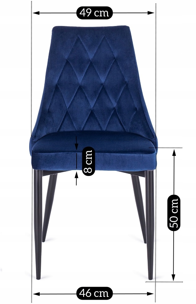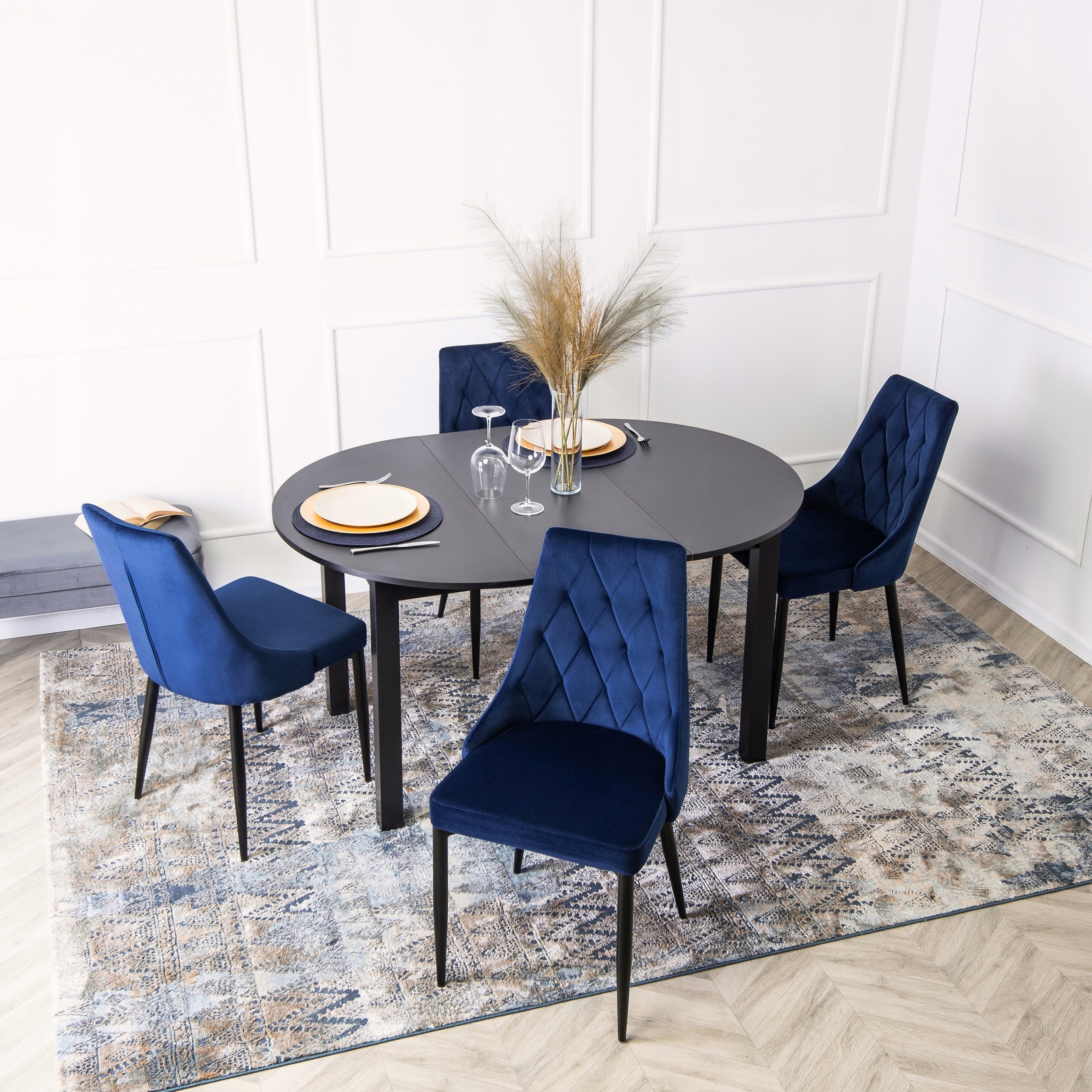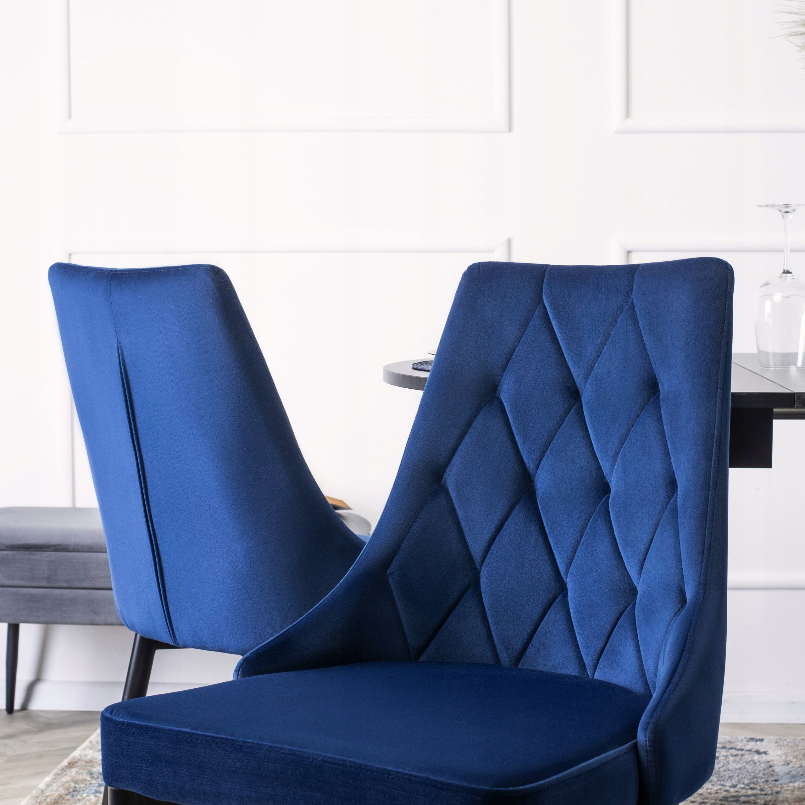 - Zestaw 4× krzesło welurowe CORK w kolorze granatowym z czarnymi nogami
