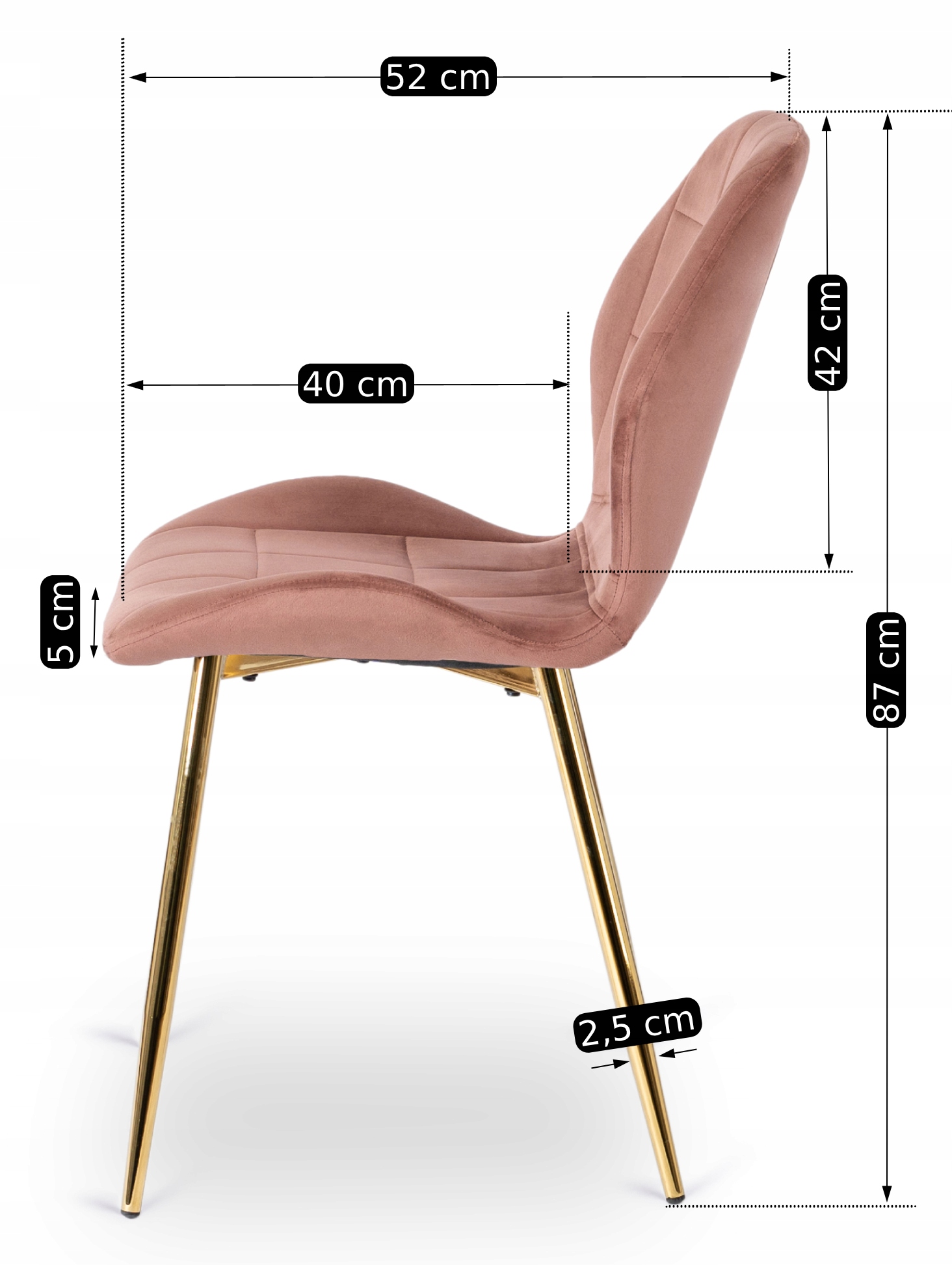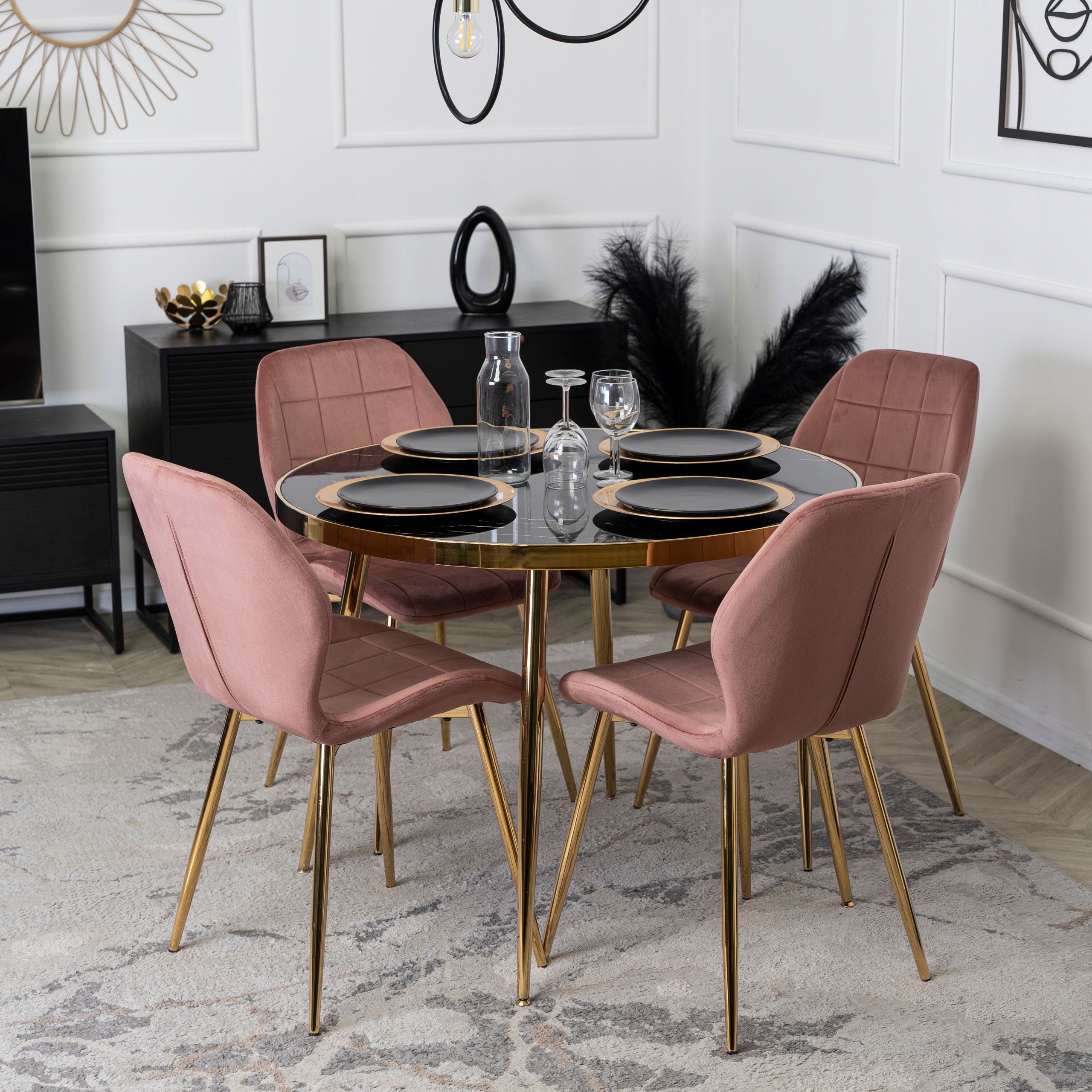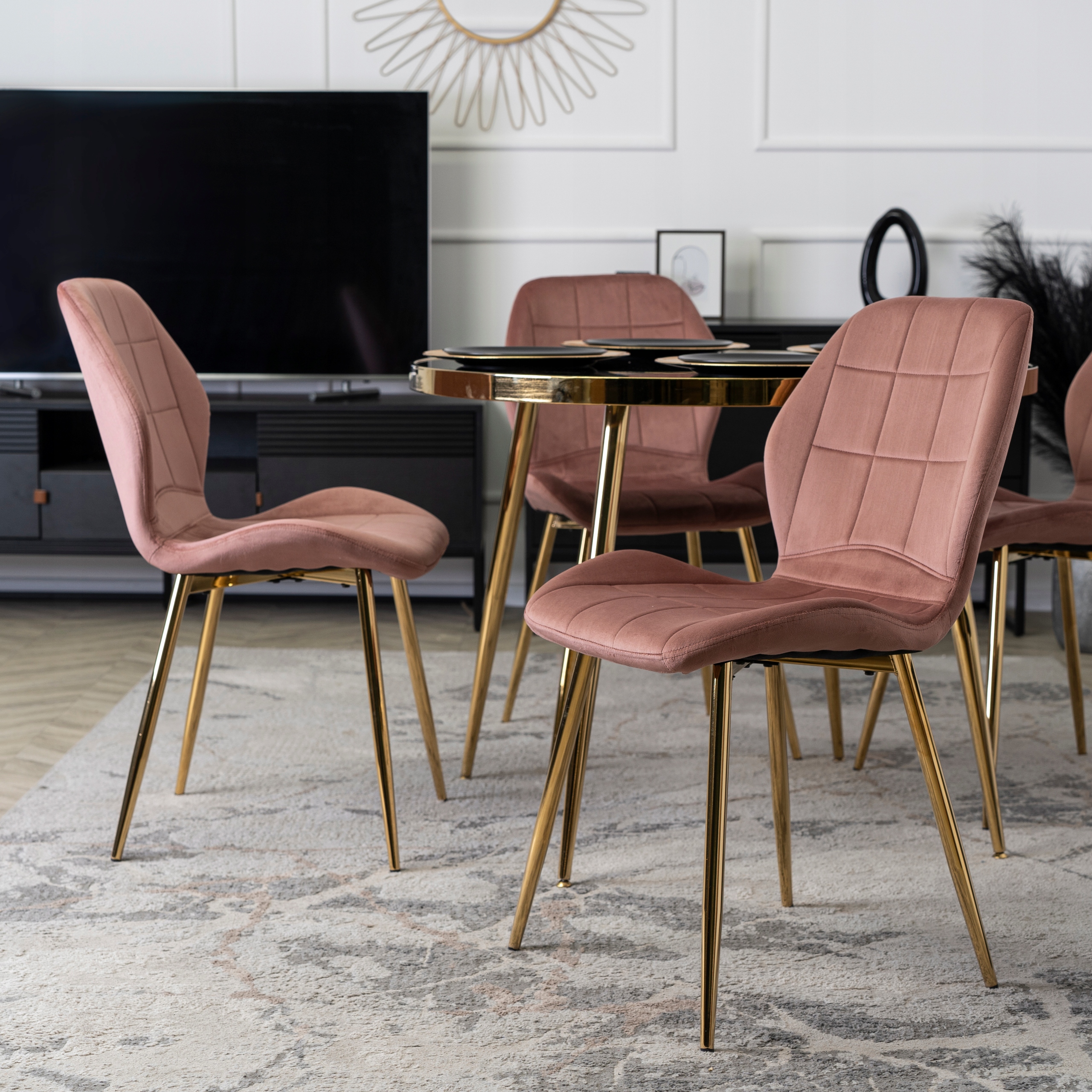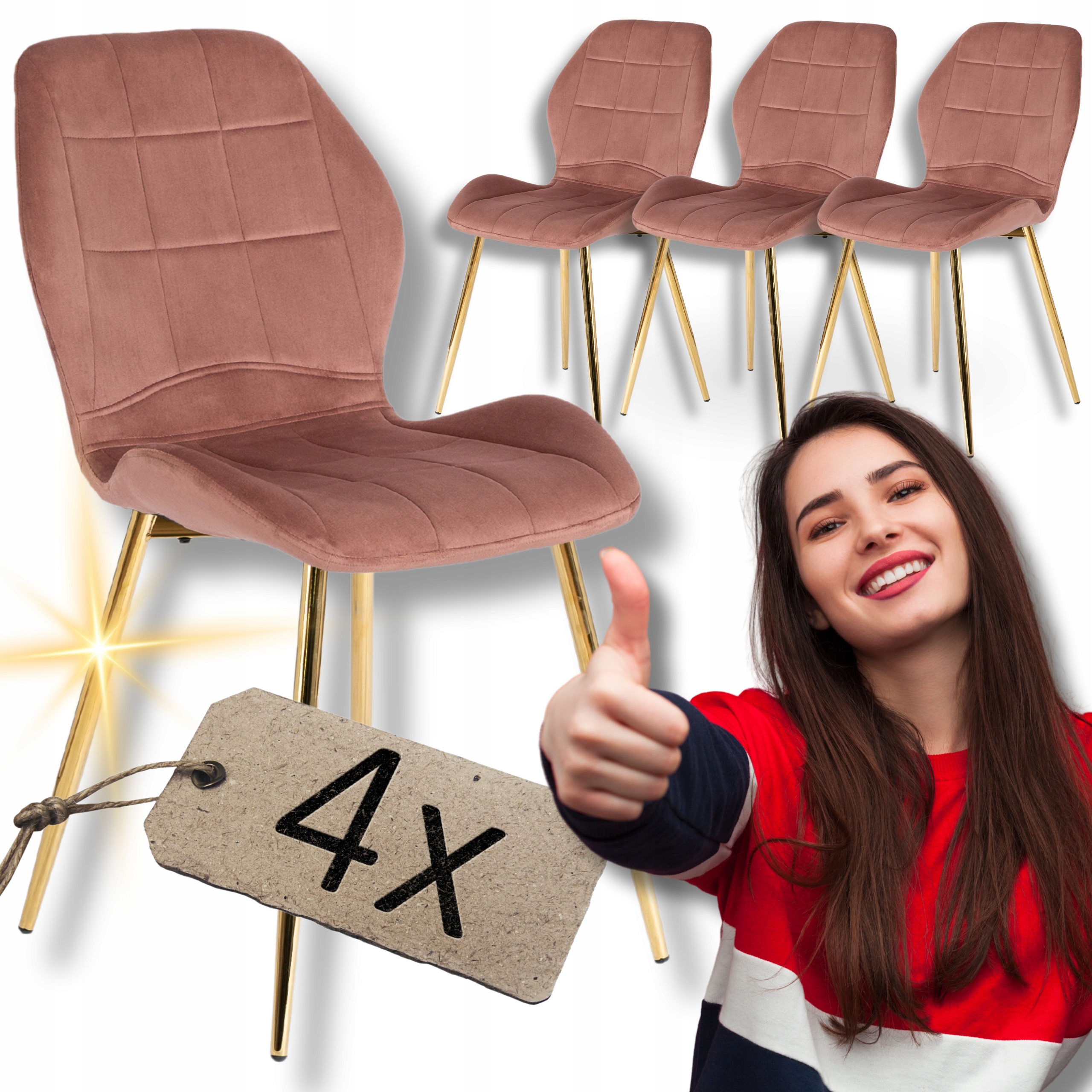 - Zestaw 4x krzesło tapicerowane IRYS kolor różowy - złoty