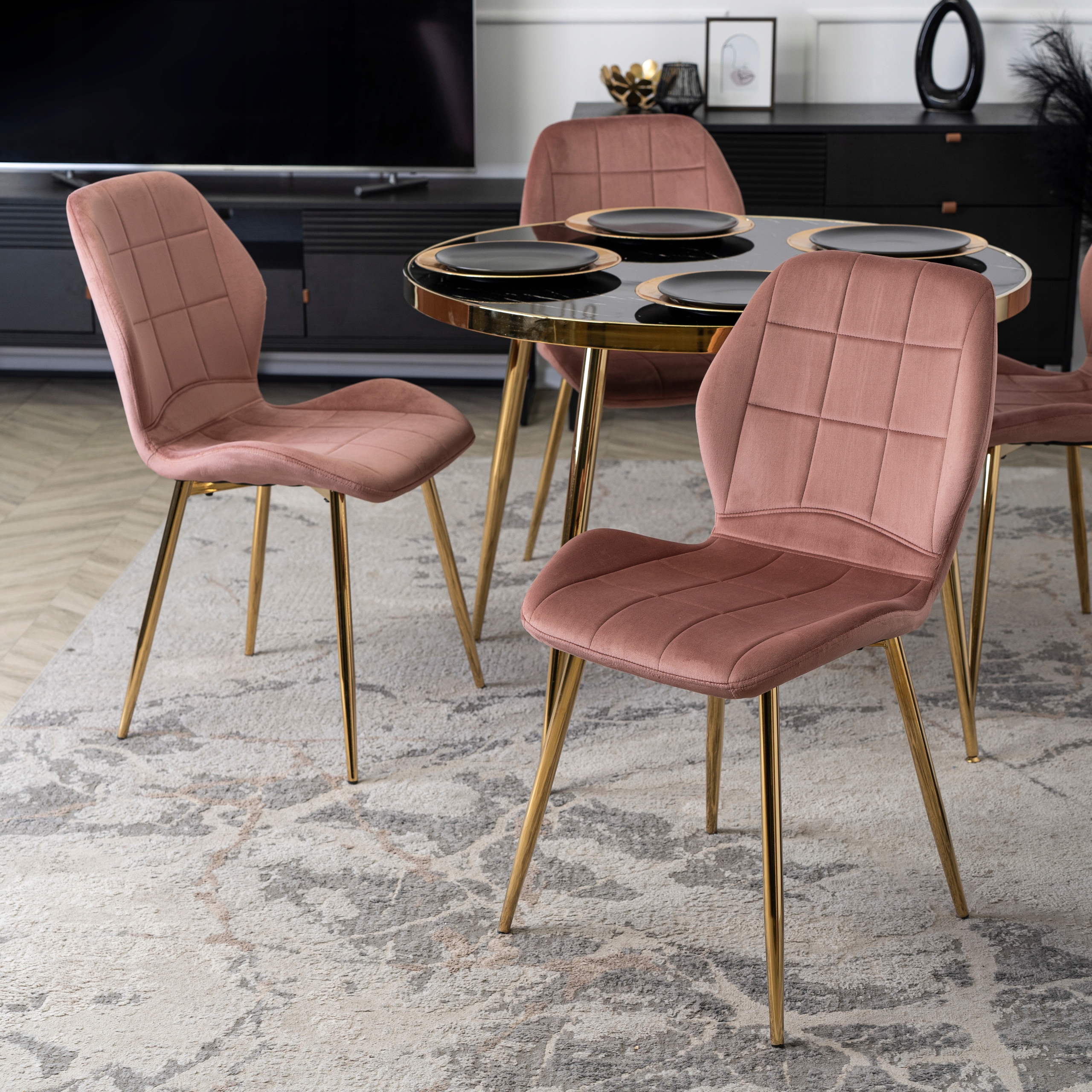 Zestaw 4 Krzeseł Glamour Tapicerowanych Welurowych Do Jadalni Różowe IRYS ⭐⭐⭐⭐⭐