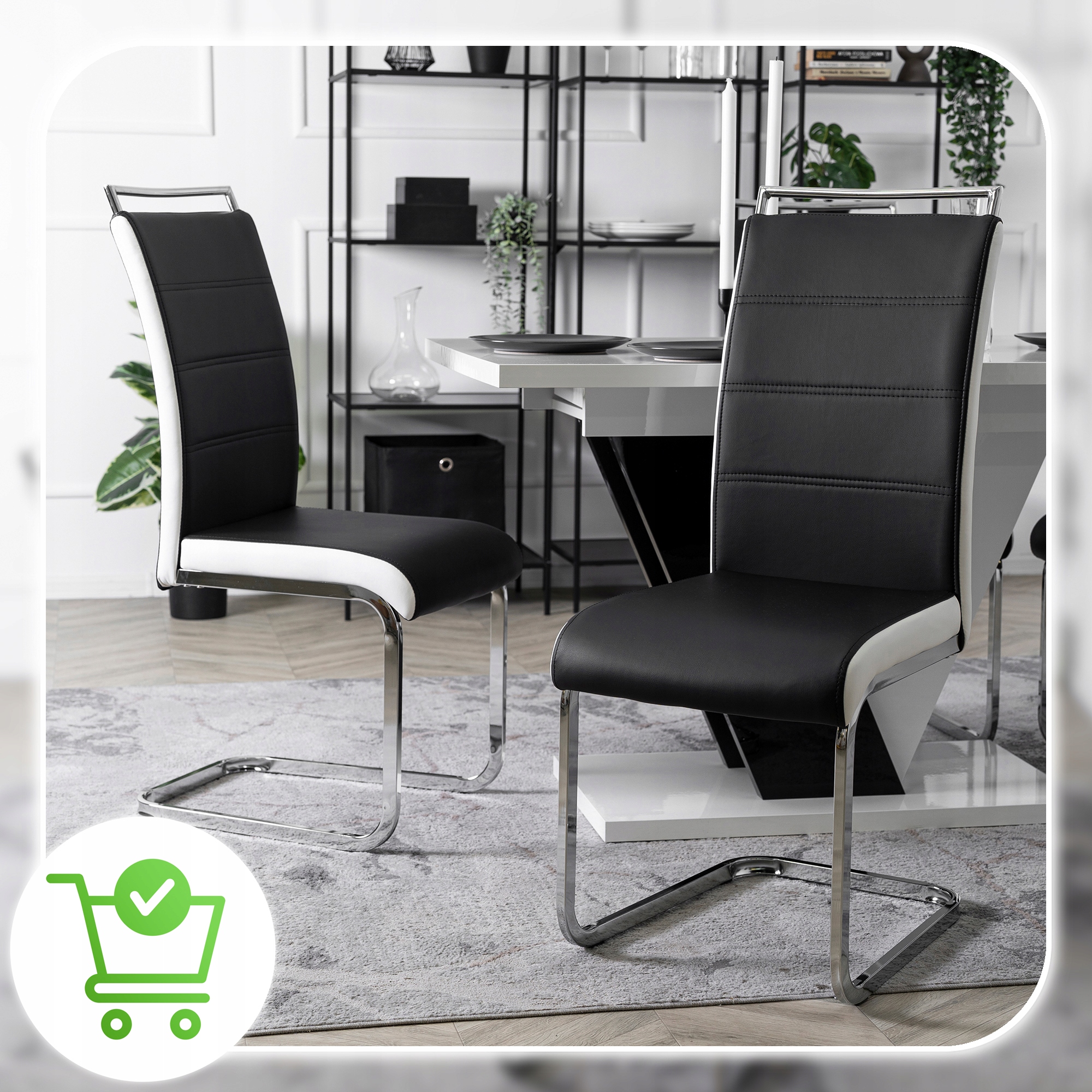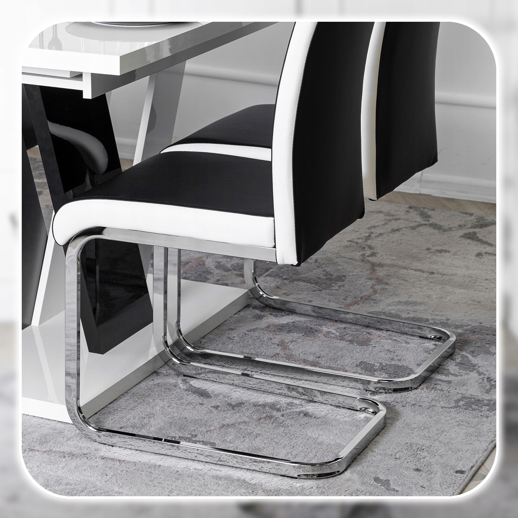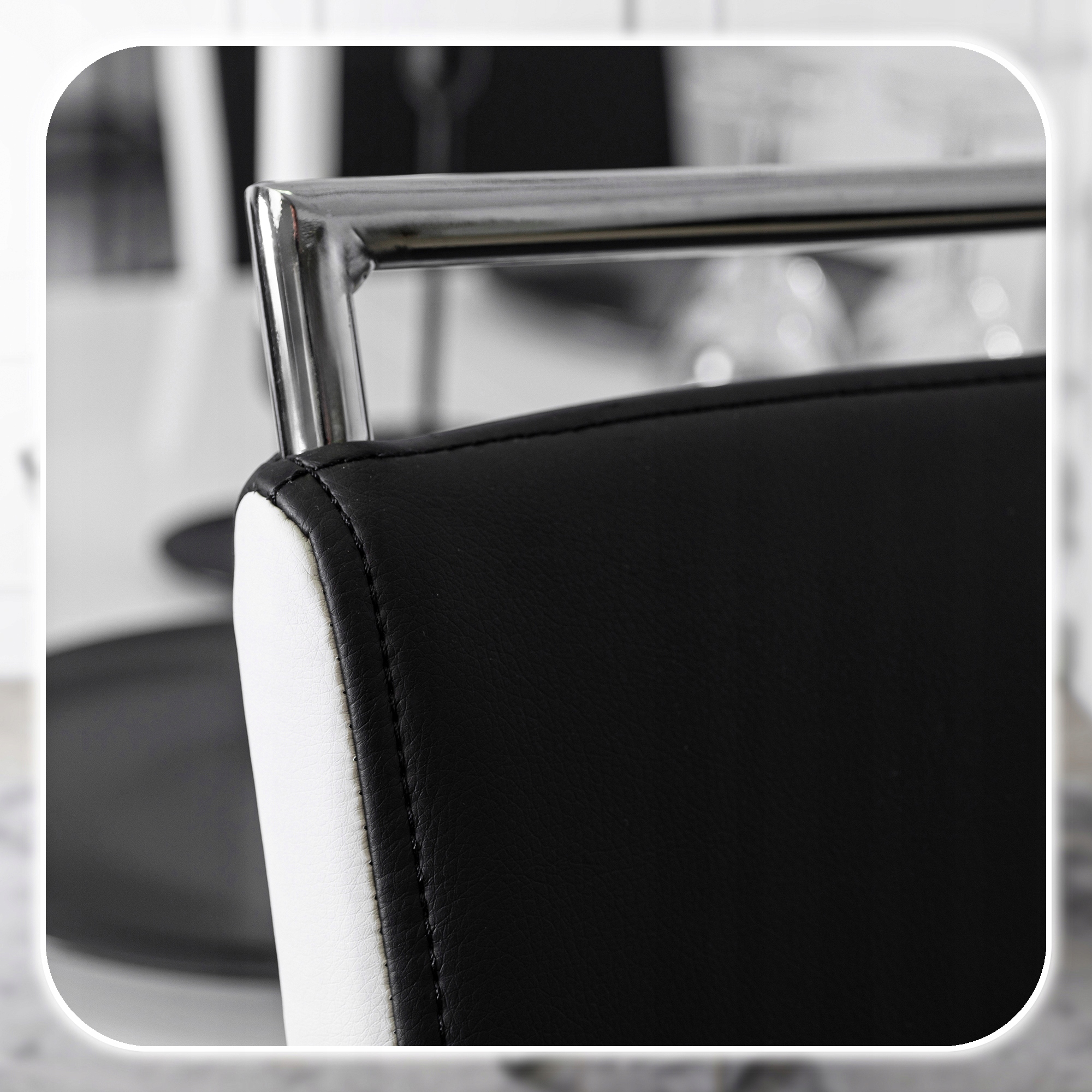 Stylowe płozy wykonane są z metalu w kolorze chromu. Mają lustrzany efekt. Zapewniają stabilność i wytrzymałość krzesła.