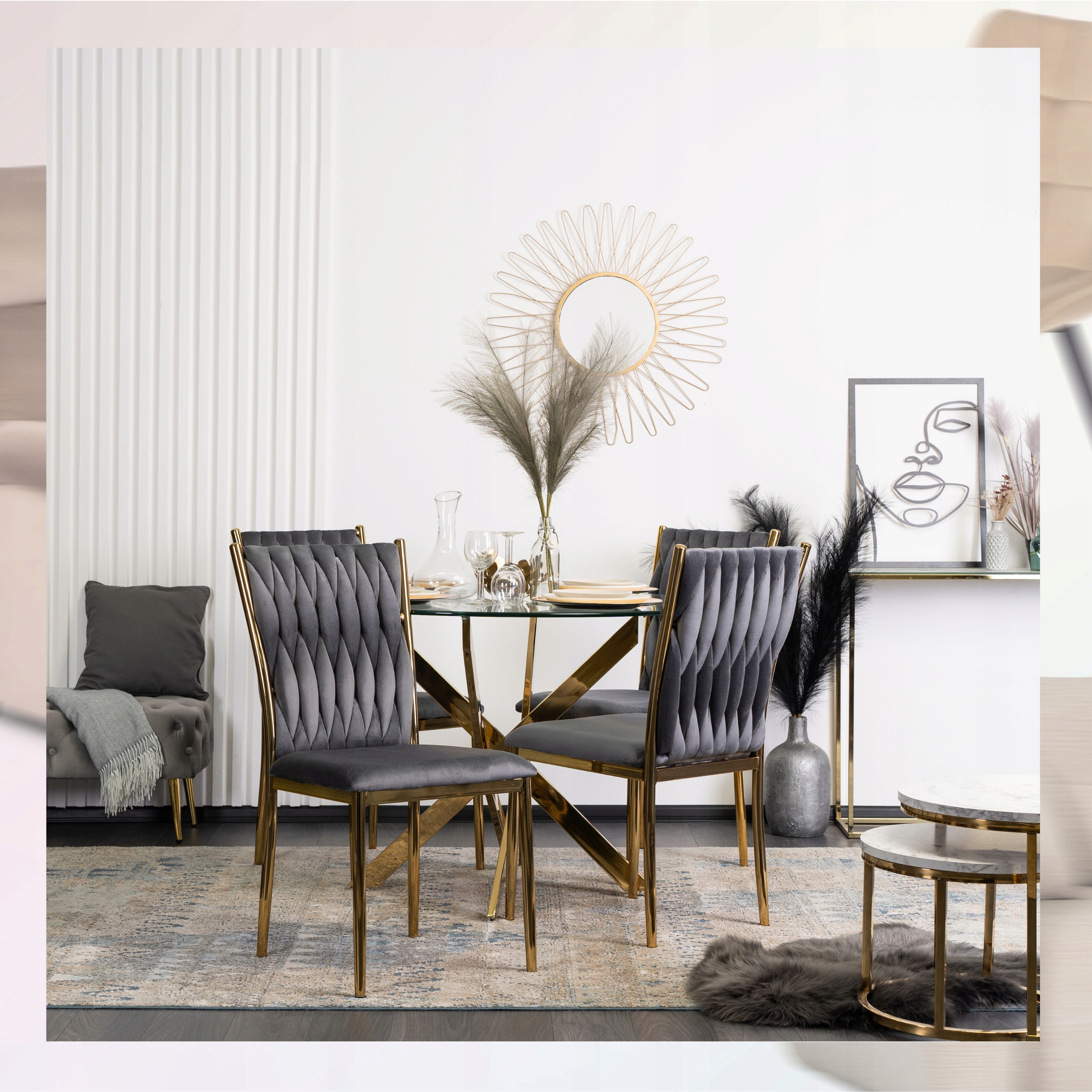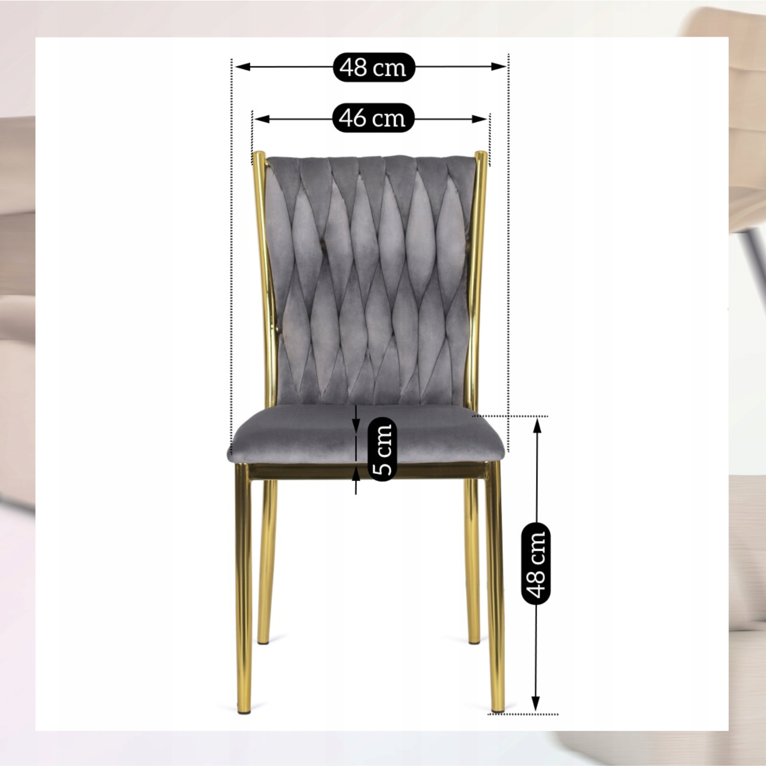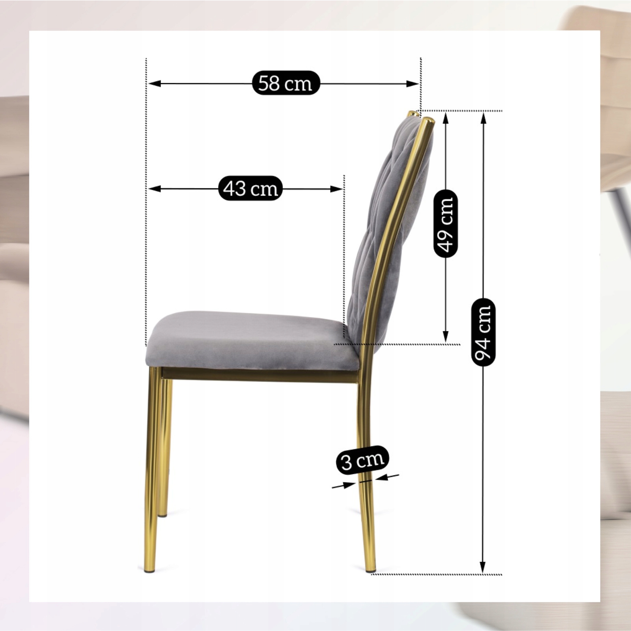⭐ Złoty kolor chromowanych nóg podkreśla szykowny wygląd krzesła.
