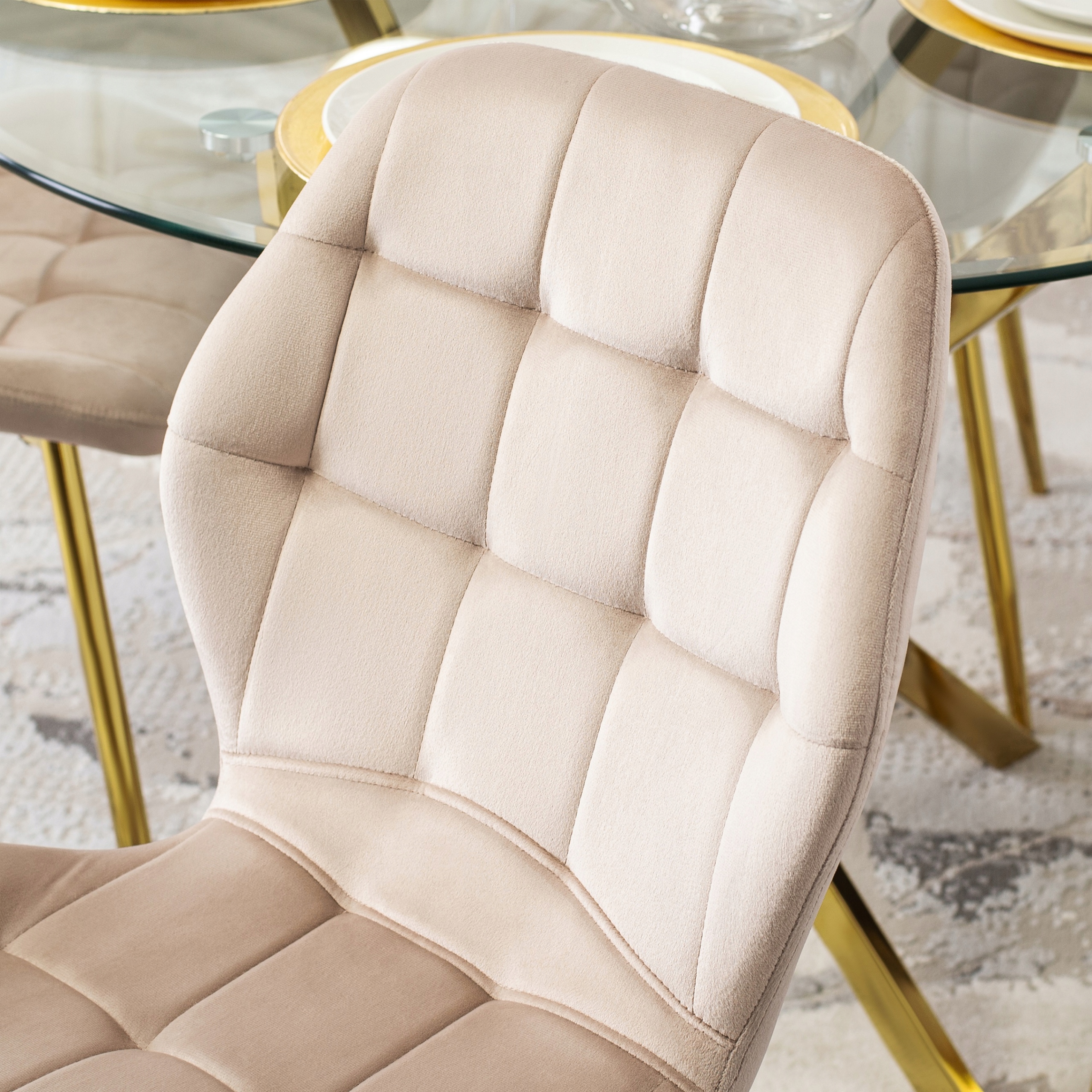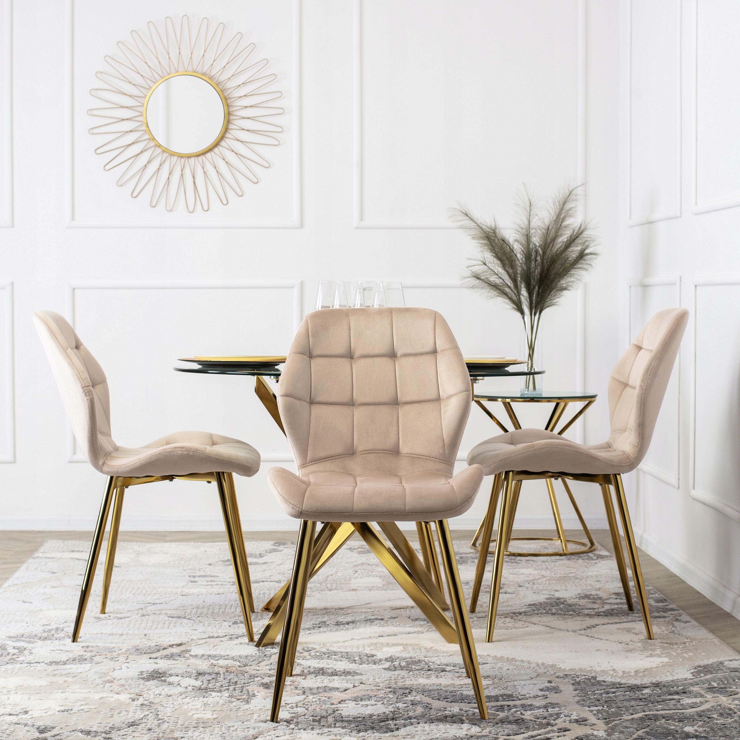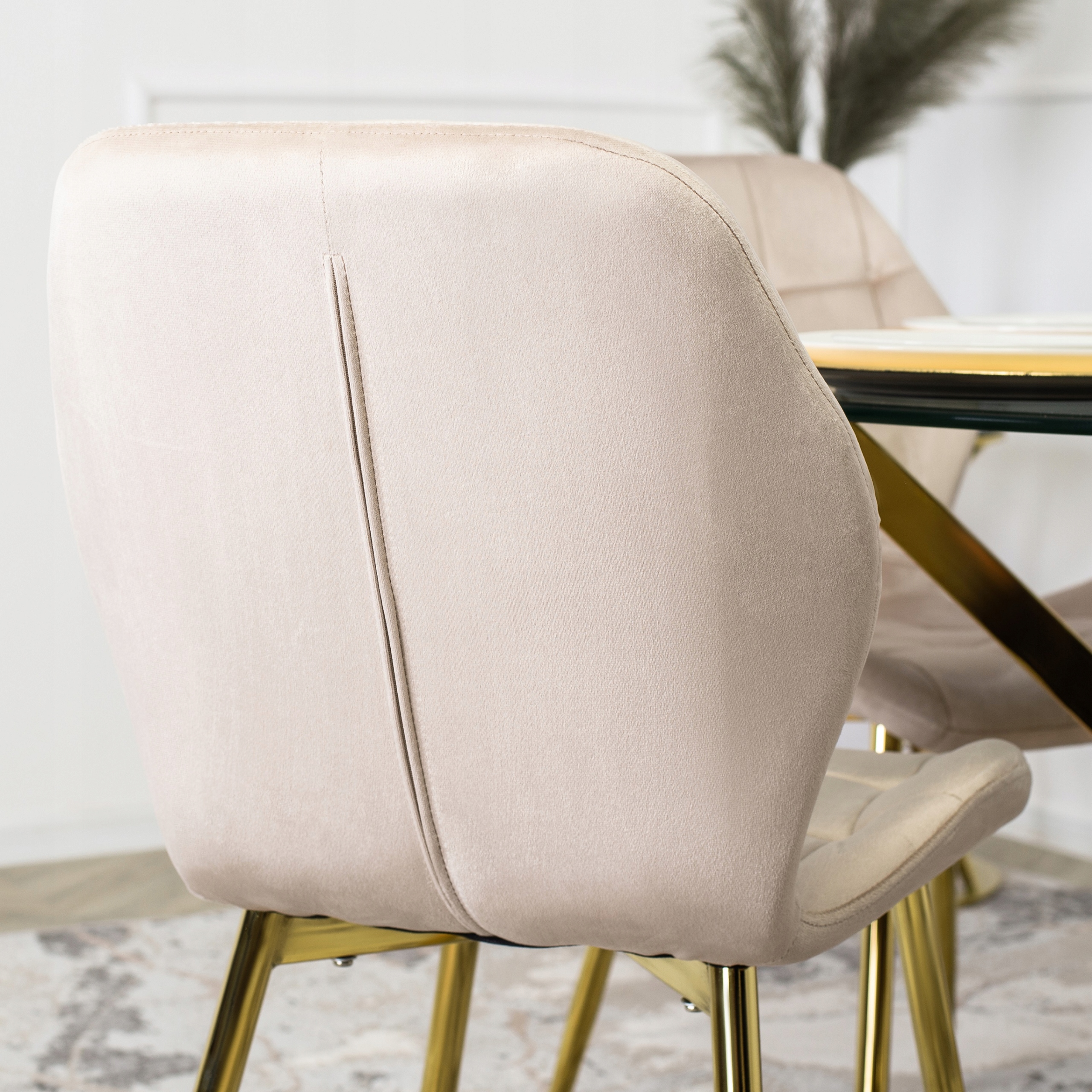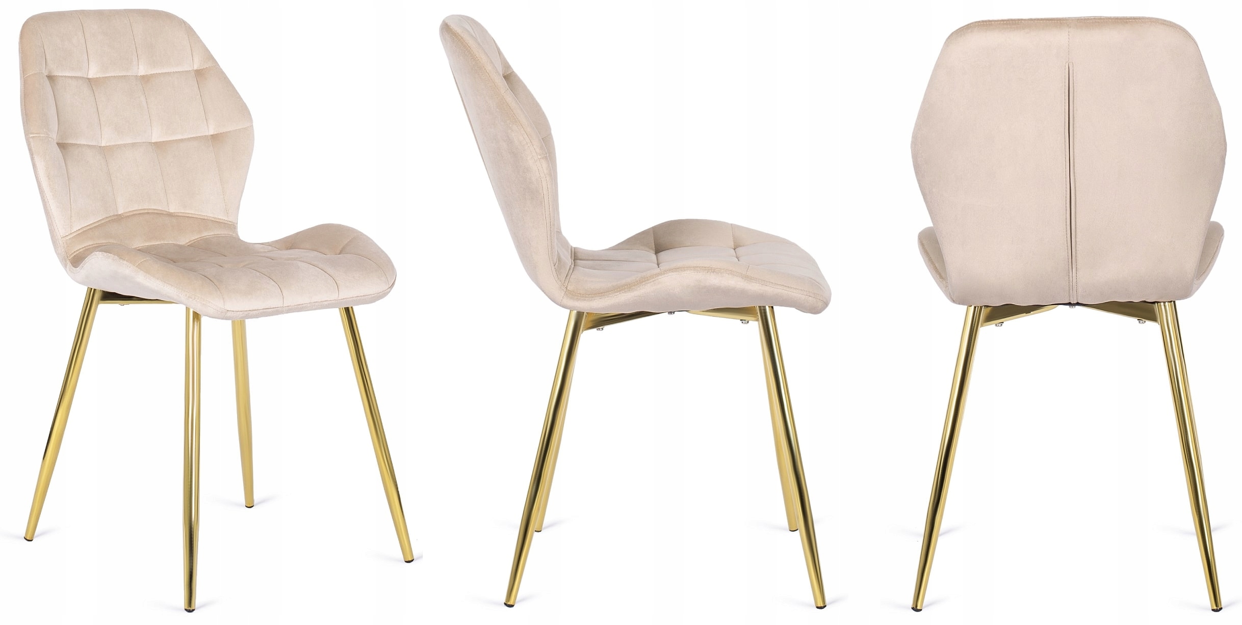 - Zestaw 6x Krzesło Velvetowe LUCKY w kolorze kremowym ze złotymi nogami