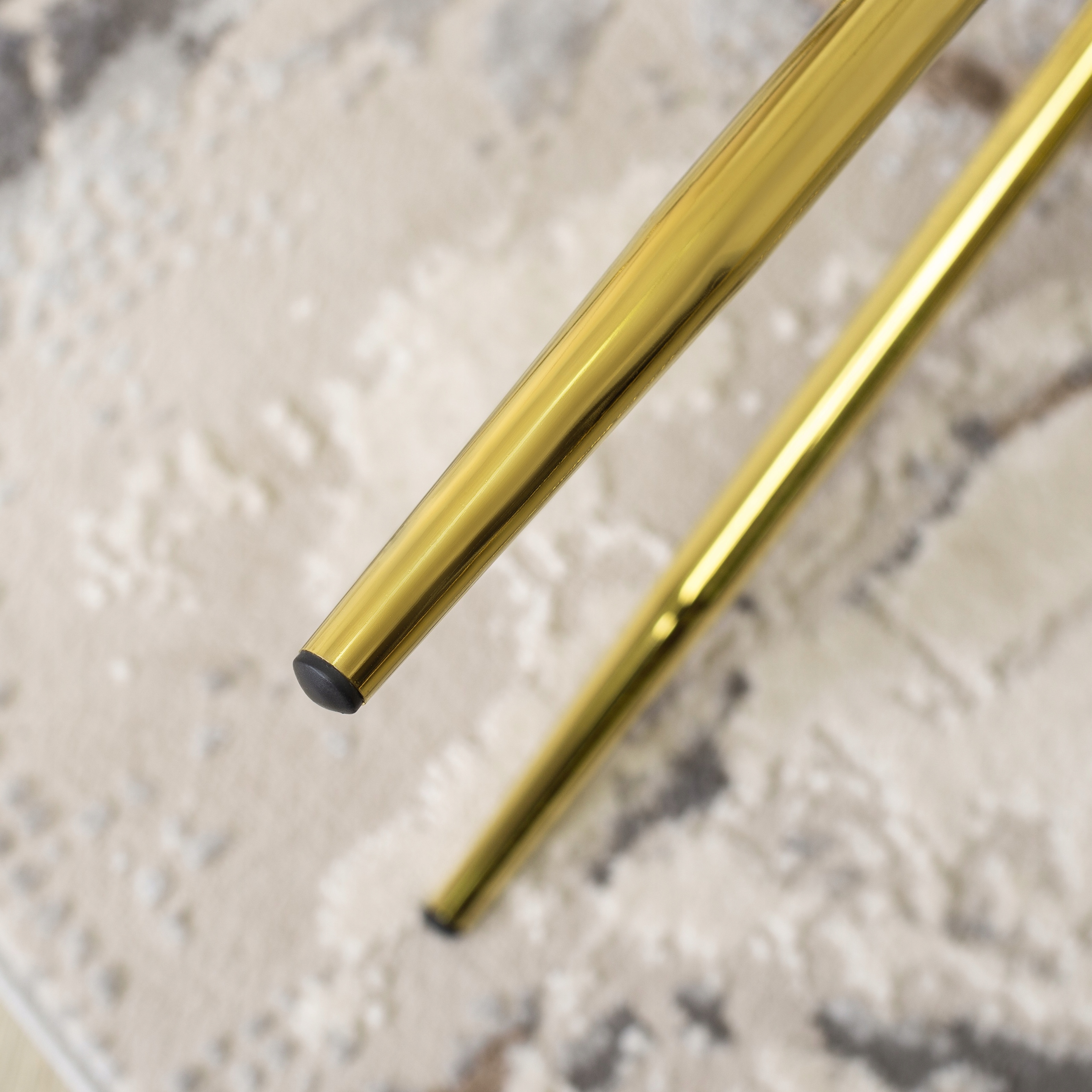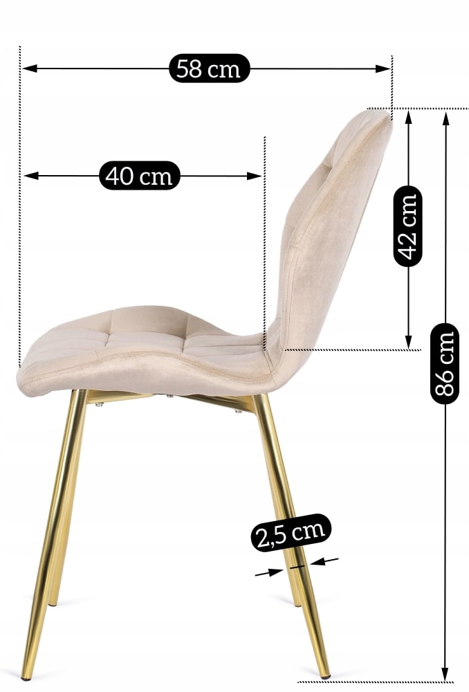 Piękne, stalowe nogi w kolorze złotego chromu zakończone są specjalnymi stopkami z tworzywa sztucznego, których celem jest uchronienie podłogi przed zarysowaniami.