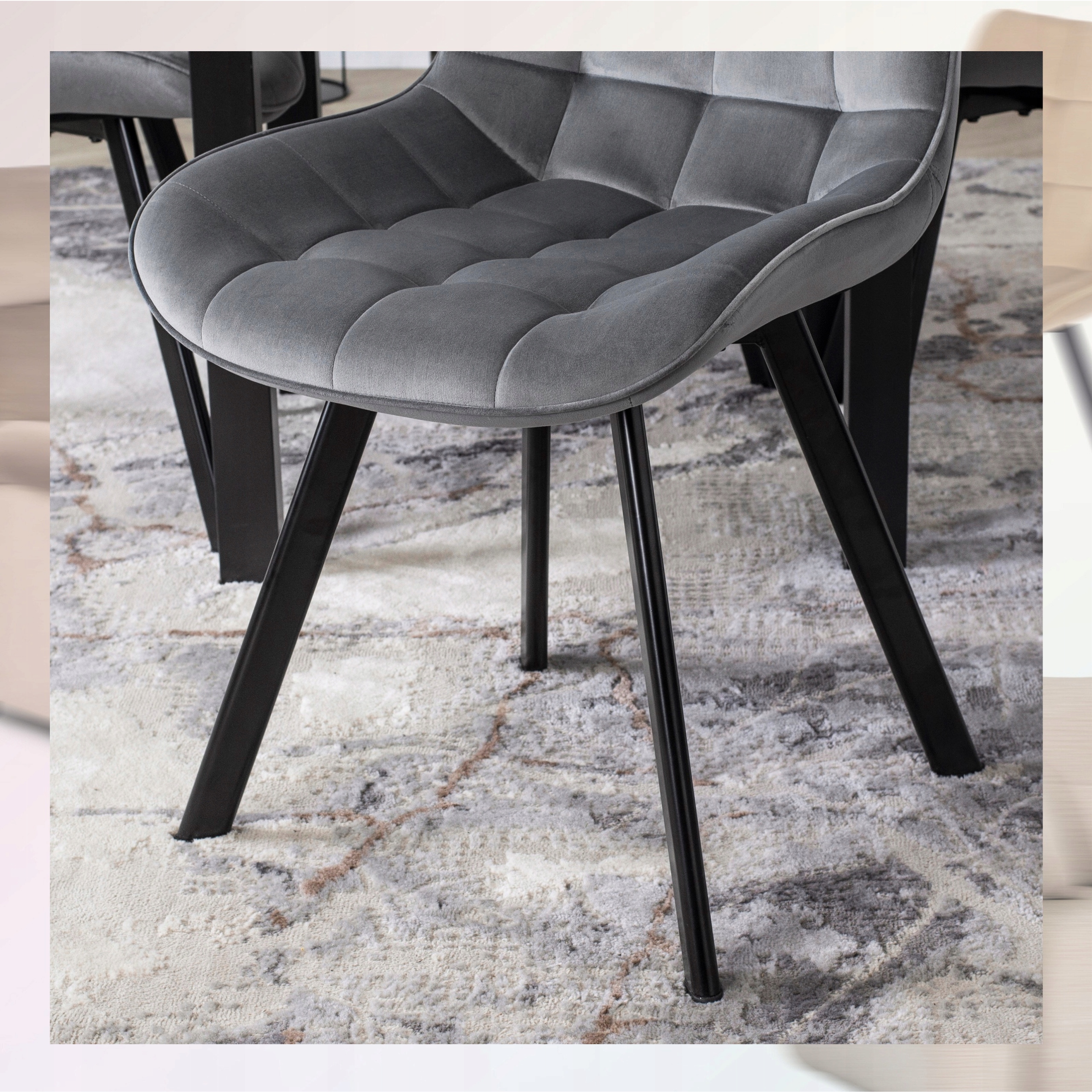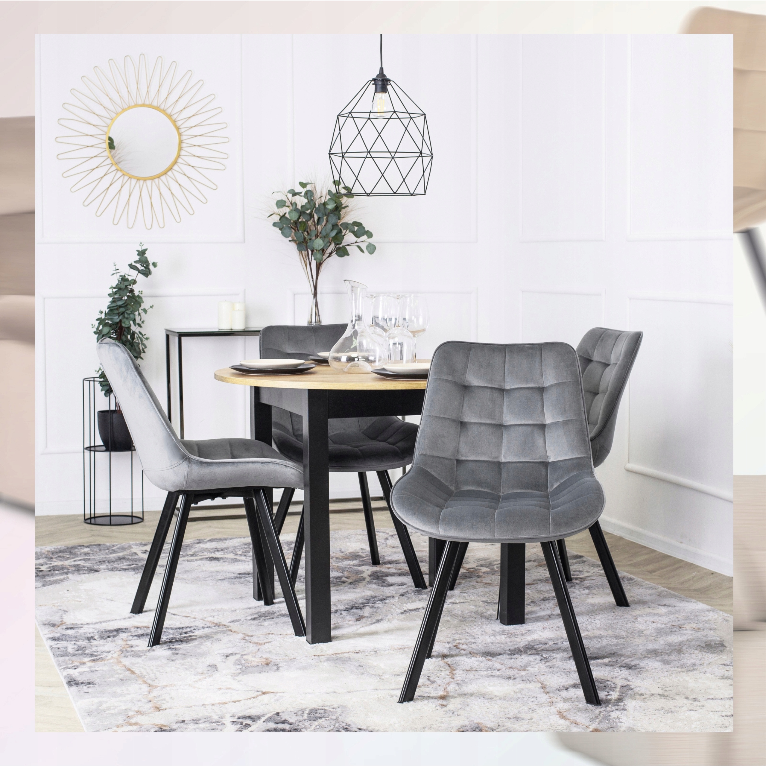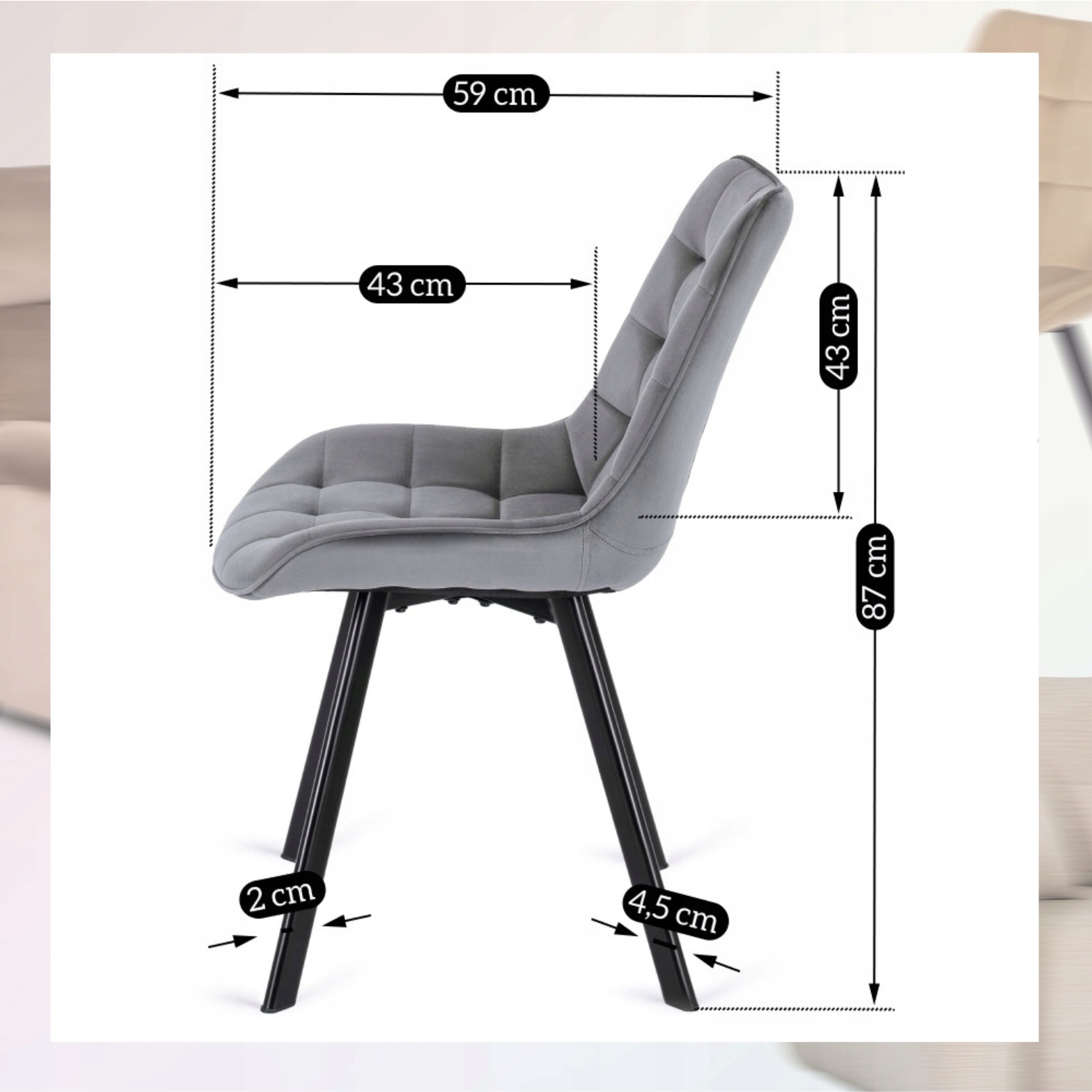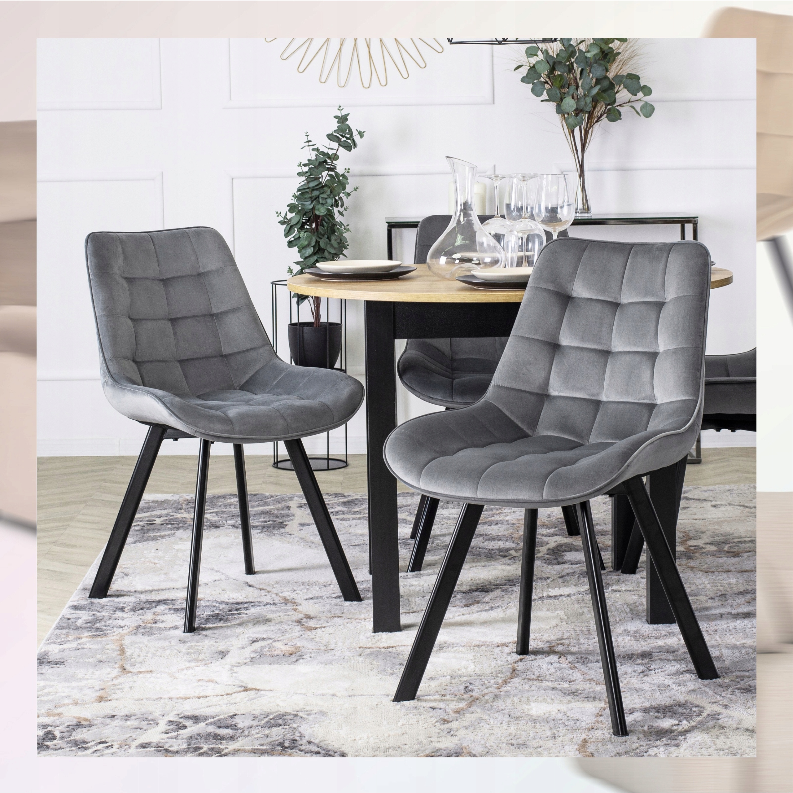 Zestaw Krzesło Tapicerowane Welurowe Kuchenne Szare Do Jadalni RICK 6x ⭐⭐⭐⭐⭐