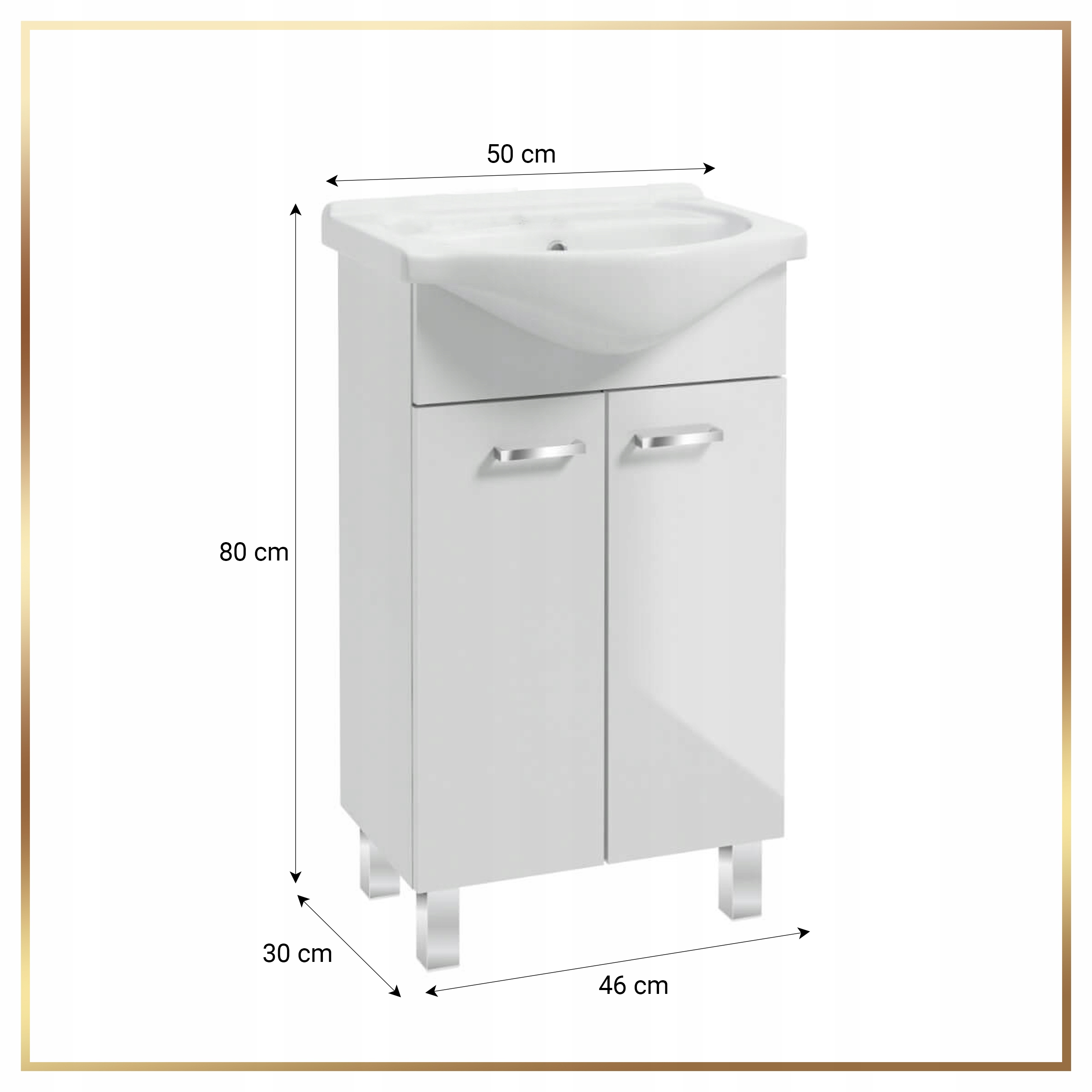 - Szafka oferuje styl i praktyczność z optymalnymi wymiarami, idealnie pasującymi do każdej przestrzeni łazienkowej.