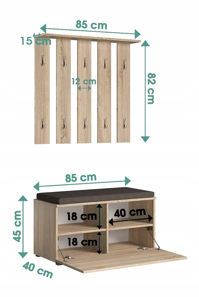 Szafka na buty – mieści od 8 do 10 par, wyposażona w 4 praktyczne półki.