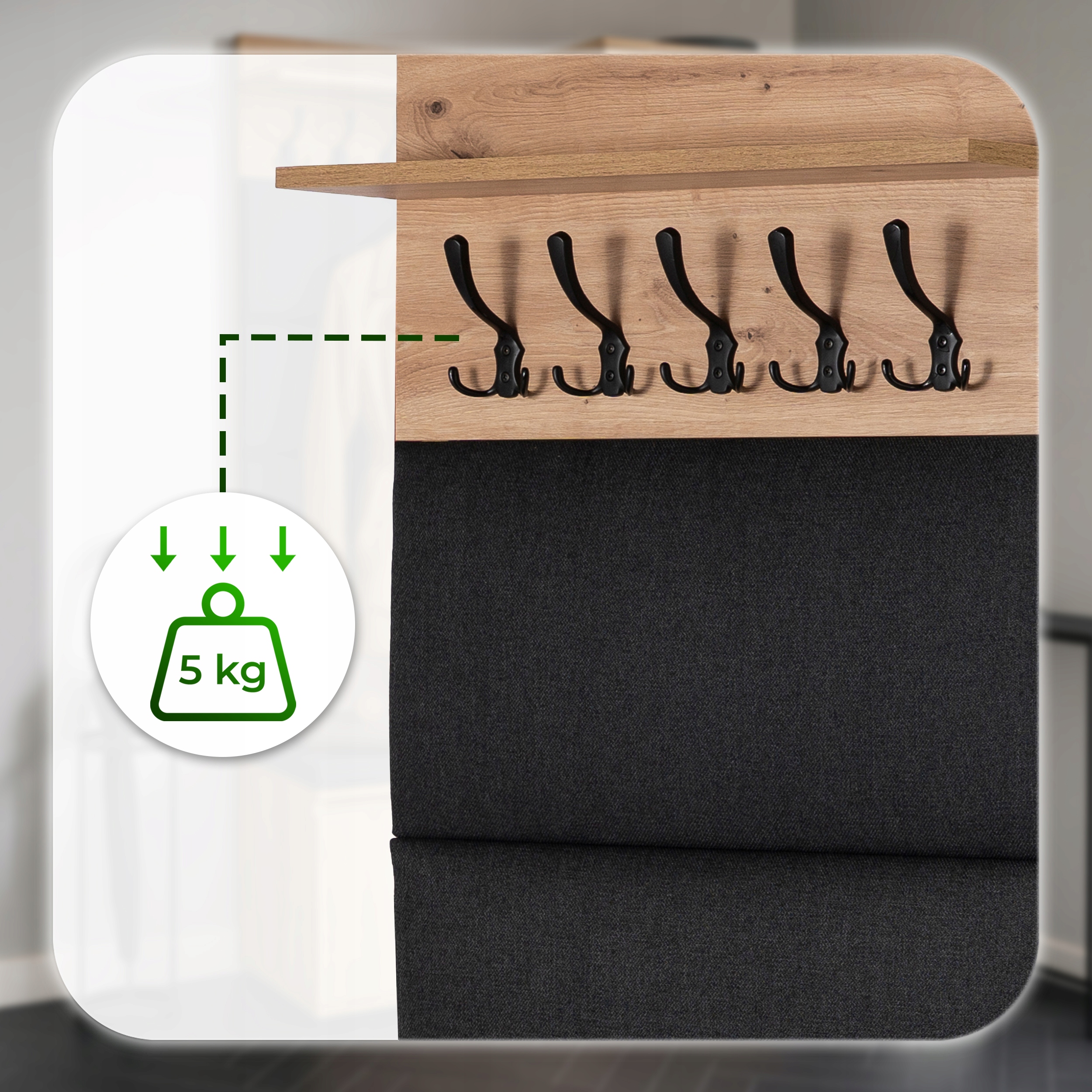 - Udźwig do 5 kg – pewne przechowywanie nawet cięższych plecaków czy torebek.